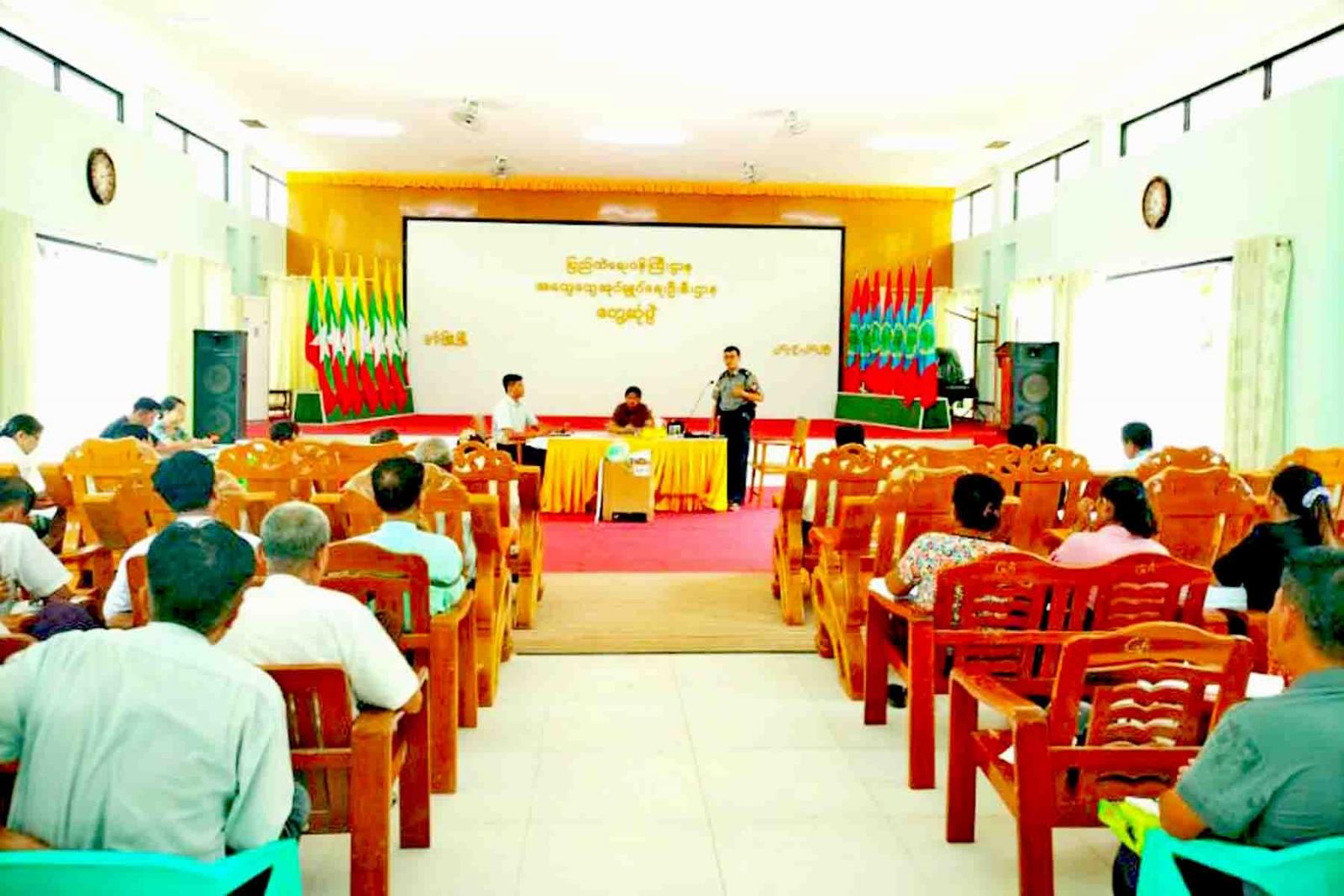 ဆက်လက်၍ မြို့နယ်ရွေးကောက်ပွဲကော်မရှင်အဖွဲ့ခွဲအတွင်းရေးမှူး ဒေါ်တဉ္ဇာစိုးတို့က ပါတီစုံဒီမိုကရေစီ အထွေထွေရွေးကောက်ပွဲ အောင်မြင်စွာ ကျင်းပနိုင်ရန်အတွက် မြို့နယ်အတွင်း ဒေသခံပြည်သူများ၏ မဲဆန္ဒရှင်စာရင်းများအား သက်ဆိုင်ရာနေရာများတွင် အသိပေးကပ်ထားကြေညာထားရှိမည့် အခြေအနေများနှင့် မြန်မာအီလက်ထရောနစ်မဲပေးစက် (MEVM) အသိပညာပေးလုပ်ငန်း ဆောင်ရွက်လျက်ရှိမှု အခြေအနေများကို ရှင်းလင်းဆွေးနွေး ပြောကြားသည်။