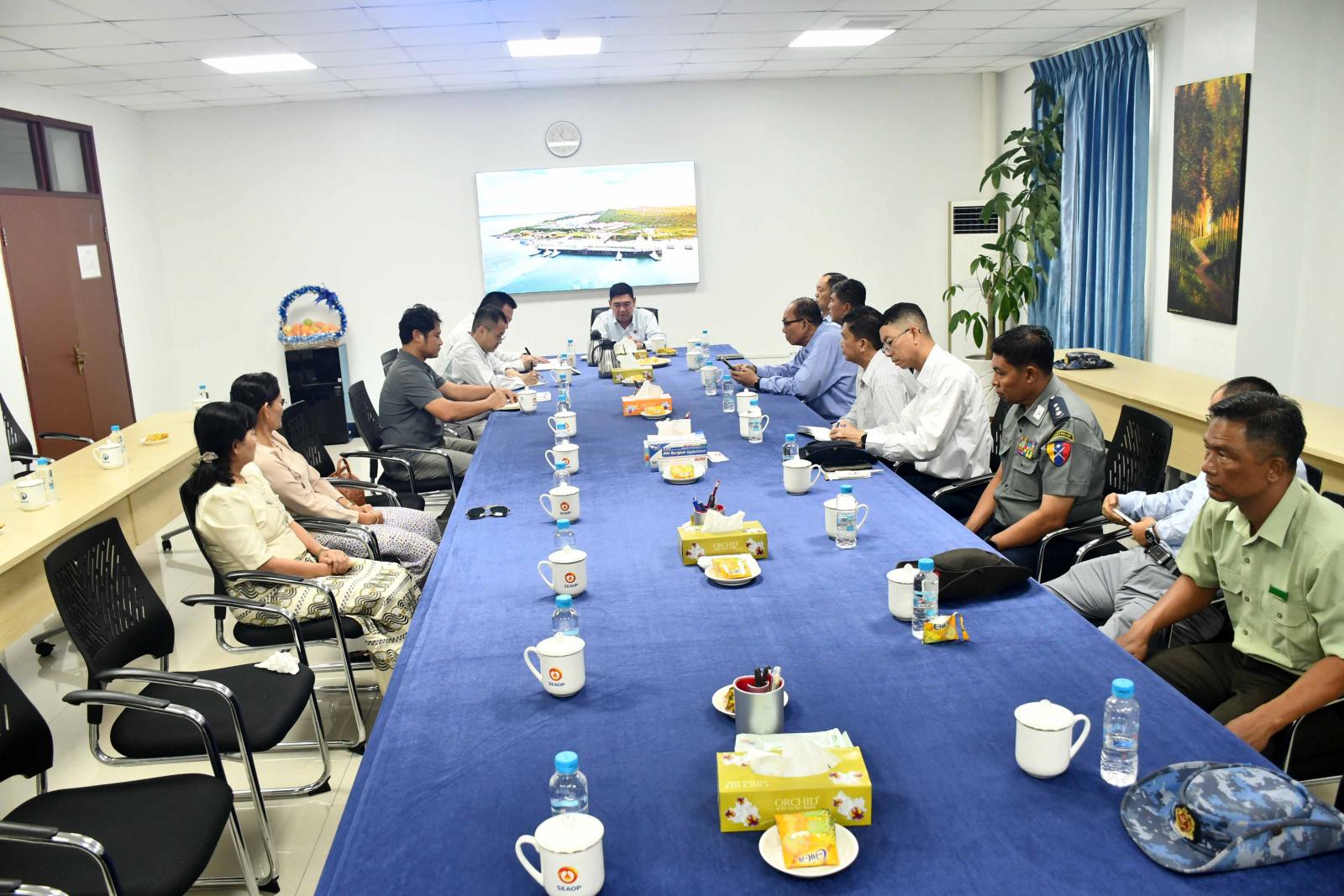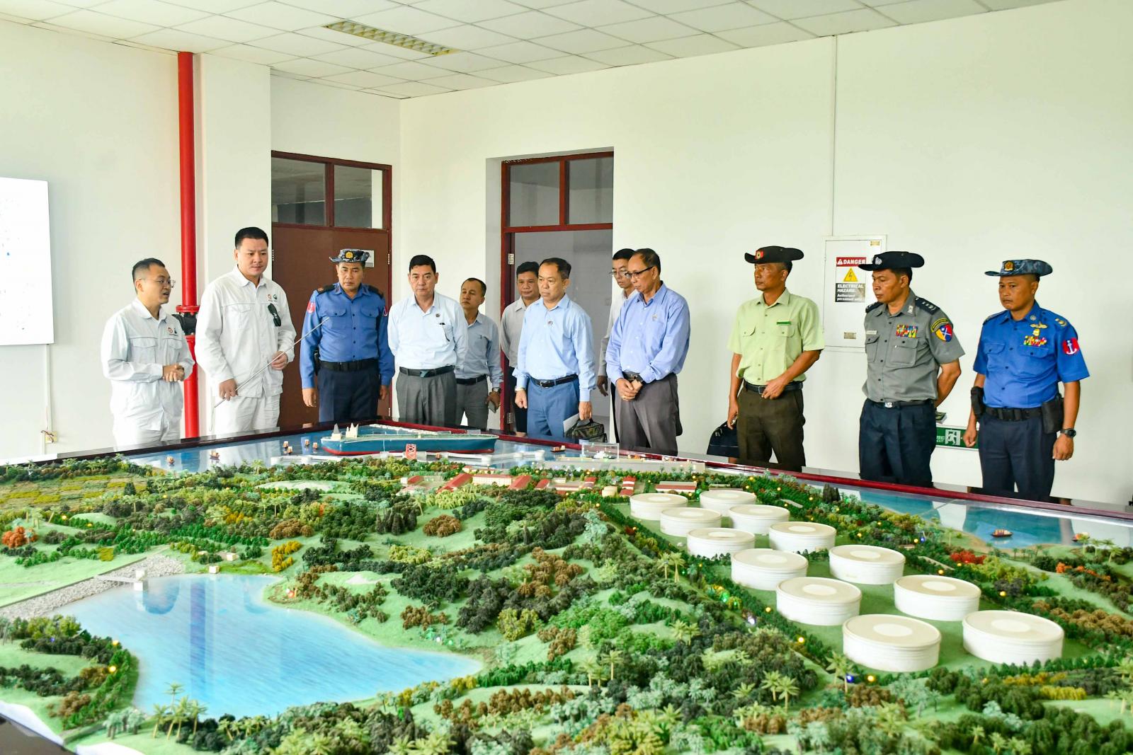 ဆက်လက်၍ ပြည်နယ်ဝန်ကြီးချုပ်နှင့်အဖွဲ့သည် ရေနံတင်သင်္ဘောများ ဆိပ်ကပ်သည့် ဆိပ်ခံတံတားတို့ကို သွားရောက်ကြည့်ရှု စစ်ဆေးကြပြီး စီမံကိန်းအတွင်း တာဝန်ထမ်းဆောင်နေကြသည့် မီးသတ်တပ်ဖွဲ့ဝင်များအား တွေ့ဆုံအားပေးစကား ပြောကြားကာ ချီးမြှင့်ငွေများ ပေးအပ်ချီးမြှင့်ကြသည်။ ဆက်လက်၍ ရေနံနှင့်သဘာဝဓာတ်ငွေ့ပိုက်လိုင်းစီမံကိန်းရုံး အစည်းအဝေးခန်းမ၌ စီမံကိန်းမှ တာဝန်ရှိသူများနှင့်တွေ့ဆုံ၍ ရေနံနှင့်သဘာဝဓာတ်ငွေ့များ နှစ်စဉ်ပို့လွှတ်ပေးနေမှု၊ ရေနံတင်သင်္ဘောများ ရောက်ရှိမှုအခြေအနေများ၊ ဒေသခံပြည်သူများအလုပ်အကိုင် အခွင့်အလမ်းများရရှိနေမှုအခြေအနေများ၊ ဒေသတွင်းလူမှုစီးပွားအကျိုးပြုလုပ်ငန်းများ ဆောင်ရွက်ပေးနေမှုအခြေအနေများ၊ စီမံကိန်းဧရိယာအတွင်း လုံခြုံရေးအစီအမံများ ဆောင်ရွက်ထားရှိမှုများ စသည့်ကဏ္ဍများနှင့် ပတ်သက်၍ ဆွေးနွေးခဲ့ကြသည်။
