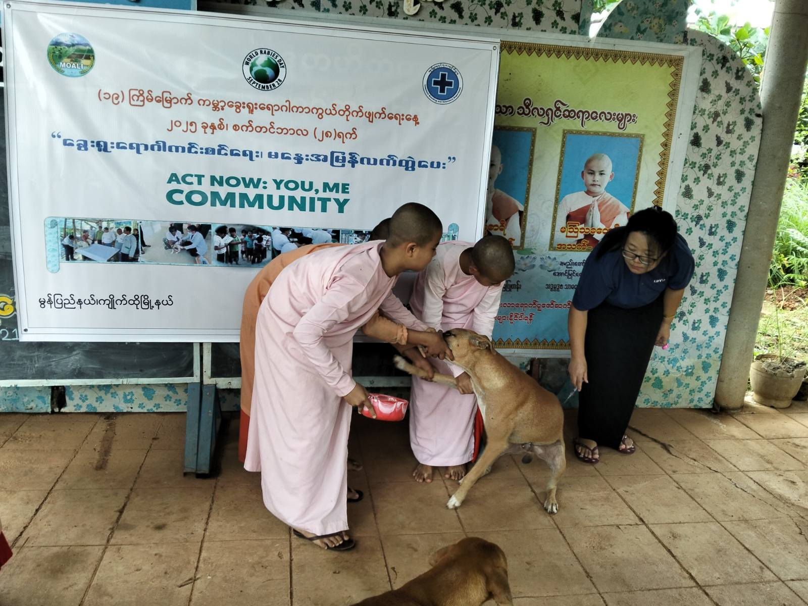 ရှေးဦးစွာ မွေးမြူရေးနှင့်ကုသရေးဦးစီးဌာန လက်ထောက်ညွှန်ကြားရေးမှူး ဒေါက်တာ ဖြိုးဝင့်ကိုက ခွေးရူးရောဂါကူးစက်ခံရနိုင်သည့် အကြောင်းရင်းများ၊ ခွေးရူးရောဂါကူးစက်ခံရမှုနှင့် အိမ်မွေးတိရိစ္ဆာန်များ၏ အန္တရာယ်၊ လူတွင်ဖြစ်ပေါ်နေသည့် ခွေးရူးပြန်လက္ခဏာများ အကြောင်းတို့ကို ရှင်းလင်းပြောကြားပြီး ကာကွယ်ဆေးများအား အခမဲ့ထိုးနှံပေးခဲ့သည်။