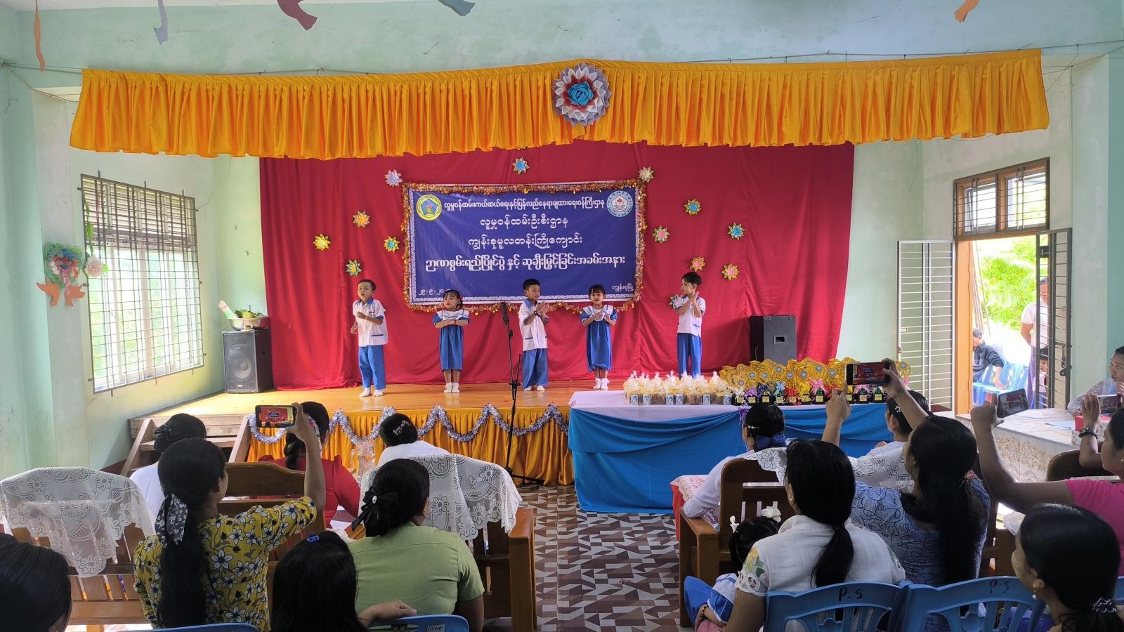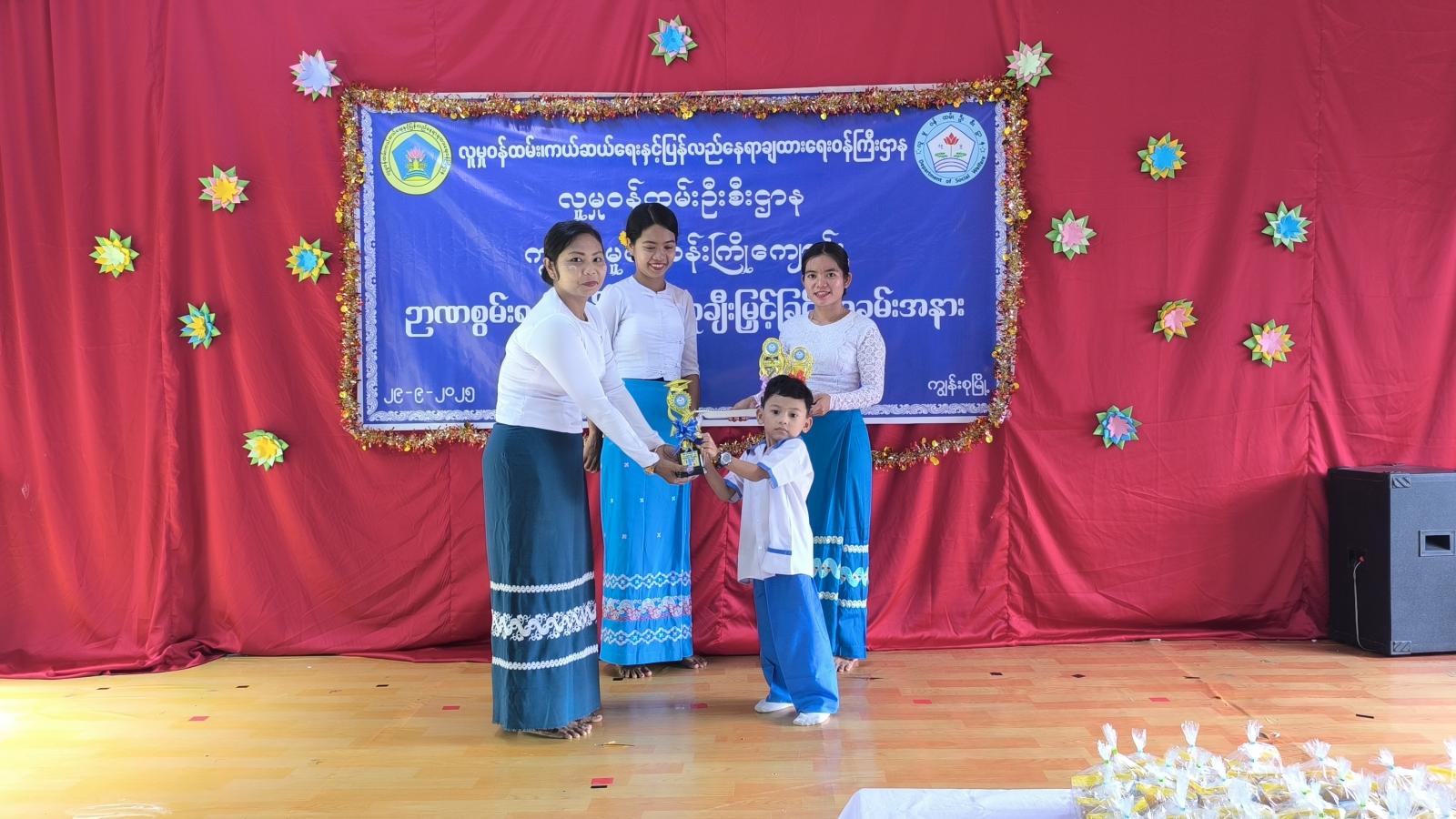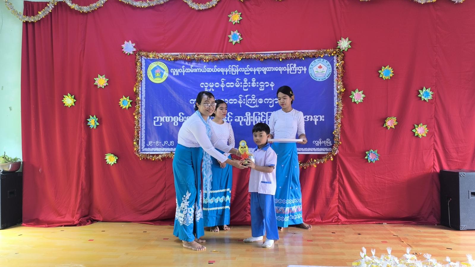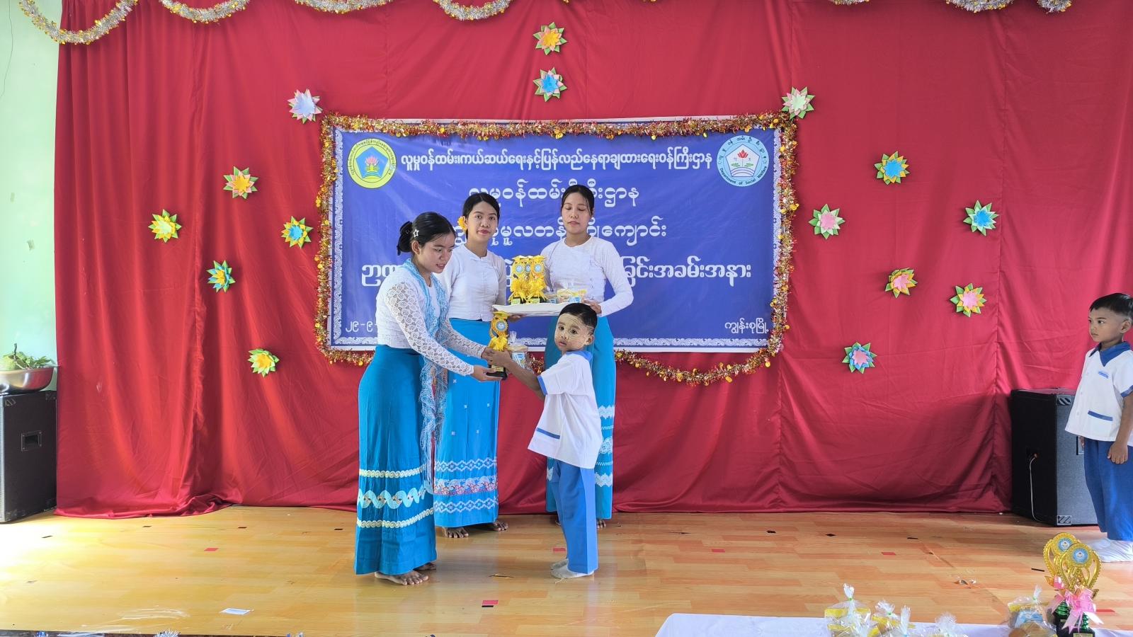 ဆက်လက်၍ ဆုပေးပွဲအခမ်းအနားအား ကျင်းပရာ ပြိုင်ပွဲဝင်သားငယ်လေးများနှင့် သမီးငယ်လေးများအား မြို့နယ်လူမှုဝန်ထမ်းရုံး၊ မြို့နယ်ဦးစီးမှူး ဒေါ်သီနွဲ့နှင့် တာဝန်ရှိသူများက ပထမဆု၊ ဒုတိယဆု၊ တတိယဆုနှင့်နှစ်သိမ့်ဆုများကို အသီးသီး ချီးမြှင့်ပေးအပ်ခဲ့ပြီး အမှတ်တရ မှတ်တမ်းဓာတ်ပုံများ ရိုက်ကူးခဲ့ကာ အခမ်းအနားကို ရုပ်သိမ်းခဲ့ကြောင်း သိရသည်။