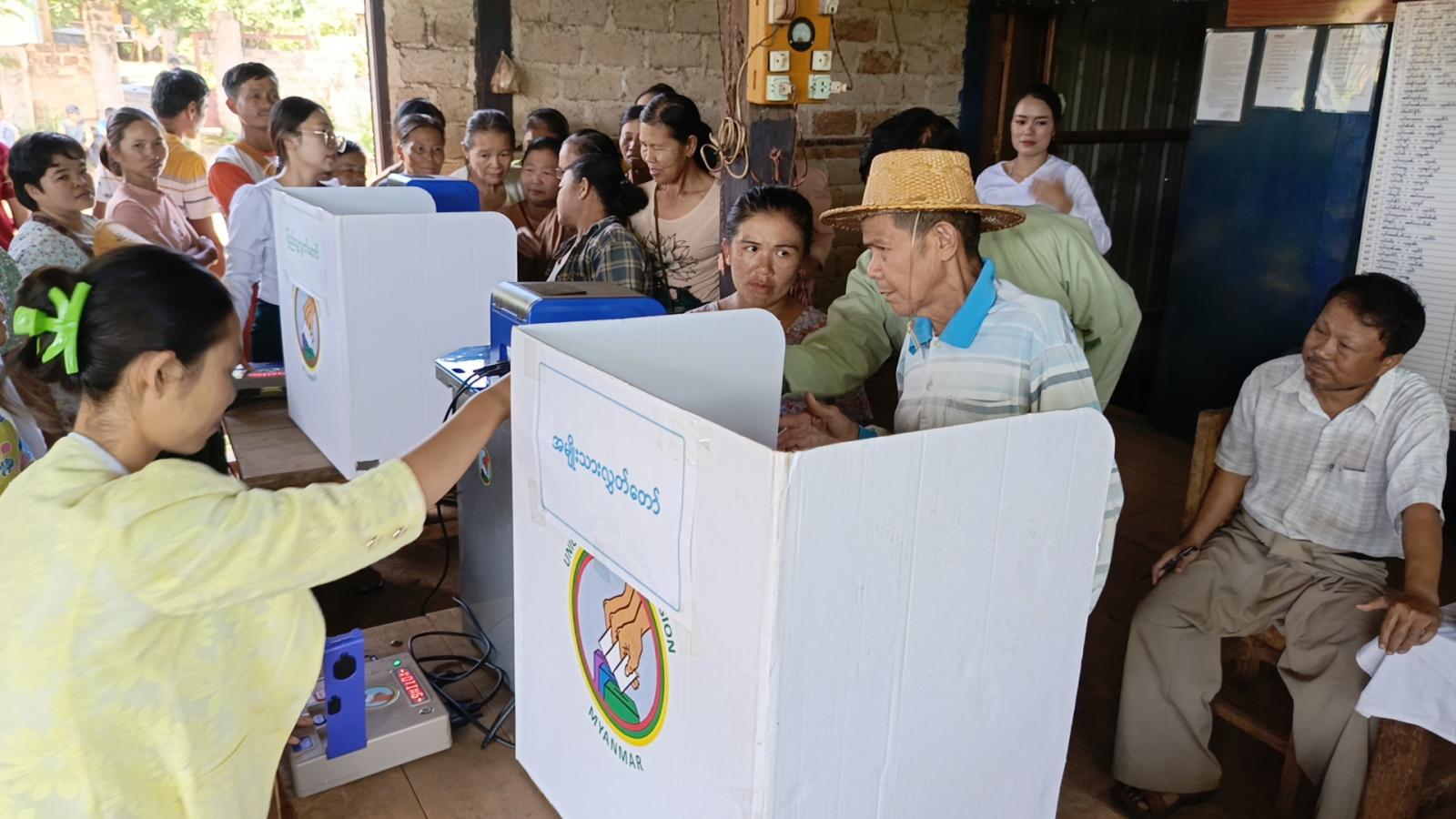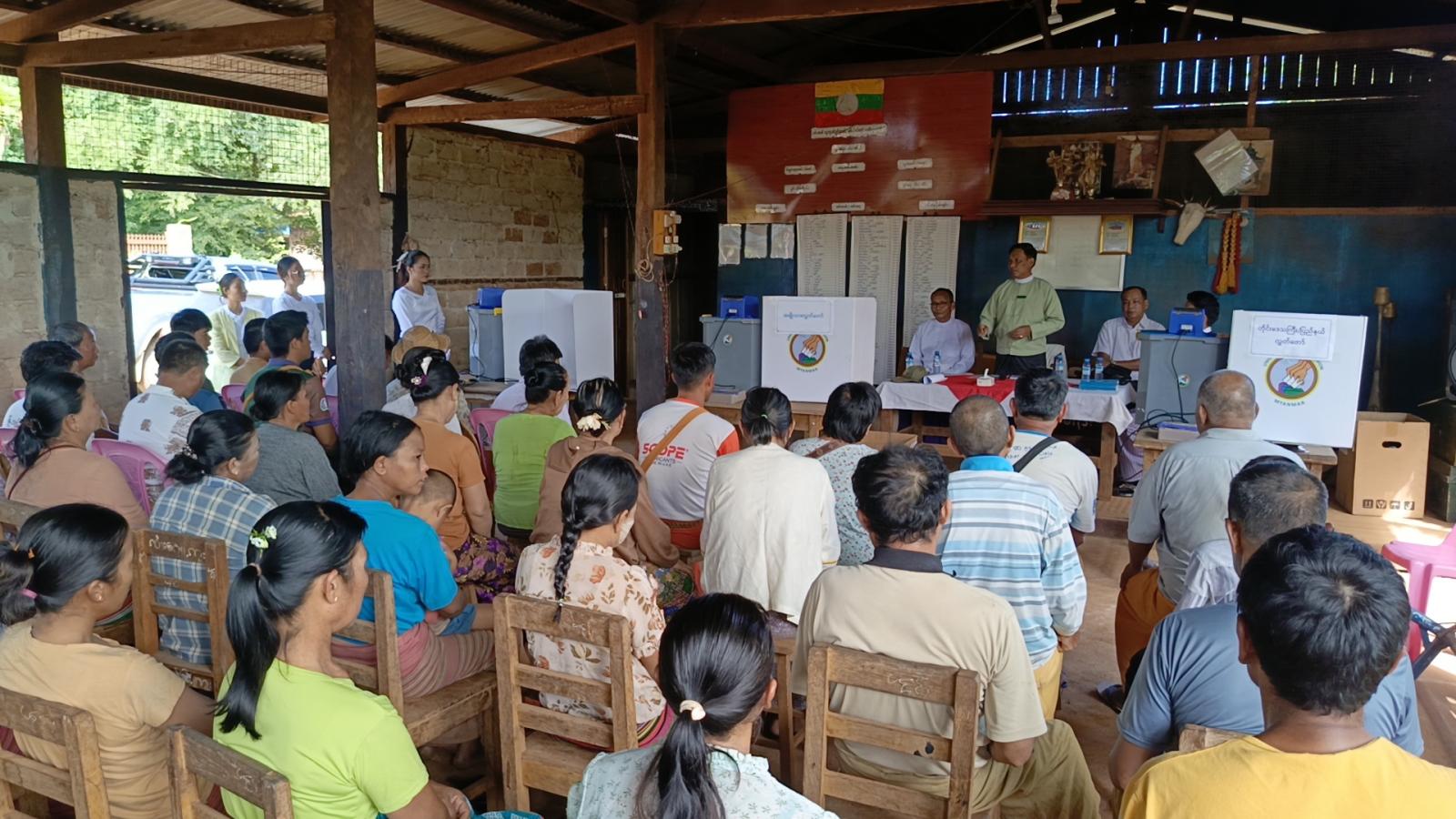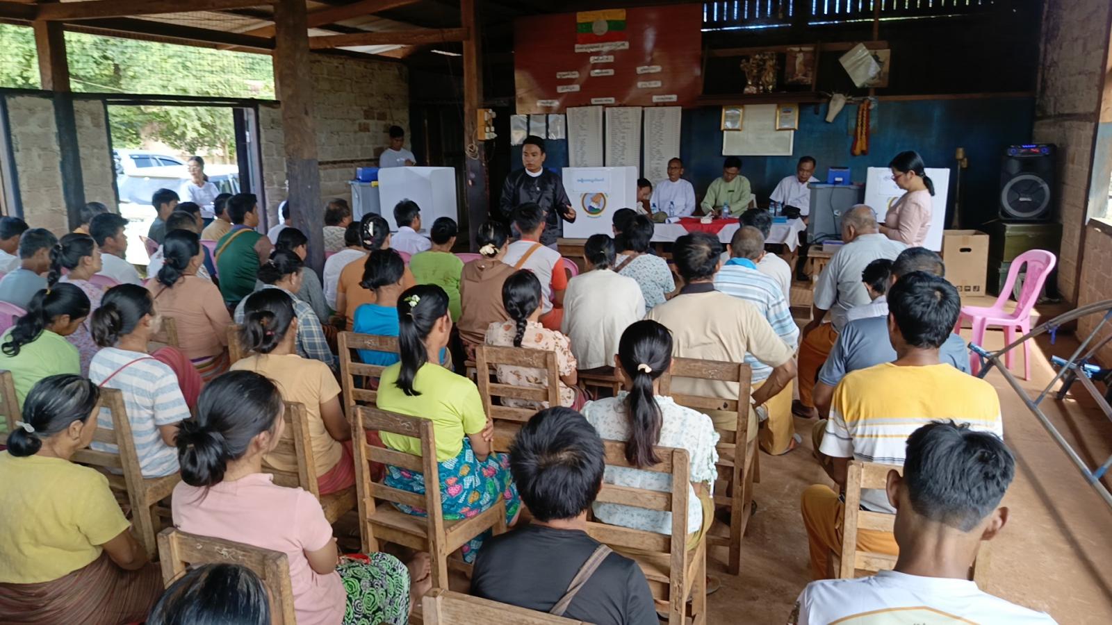 ရှမ်းပြည်နယ်တောင်ပိုင်း၊ လွိုင်လင်ခရိုင်၊ မိုင်းကိုင်မြို့နယ်၌ မြန်မာအီလက်ထရောနစ်မဲပေးစက်အသုံးပြု၍ လက်တွေ့စမ်းသပ်မဲပေးခြင်းနှင့် အသိပညာပေးဟောပြောခြင်း လုပ်ငန်းများကို အရှိန်အဟုန်မြှင့်တင် ဆောင်ရွက်လျက်ရှိရာ ယမန်နေ့က တုံလောကျေးရွာအုပ်စု၊ တုံလောကျေးရွာ၊ ဓမ္မာရုံ၌ ကွင်းဆင်းဆောင်ရွက်ခဲ့သည်။