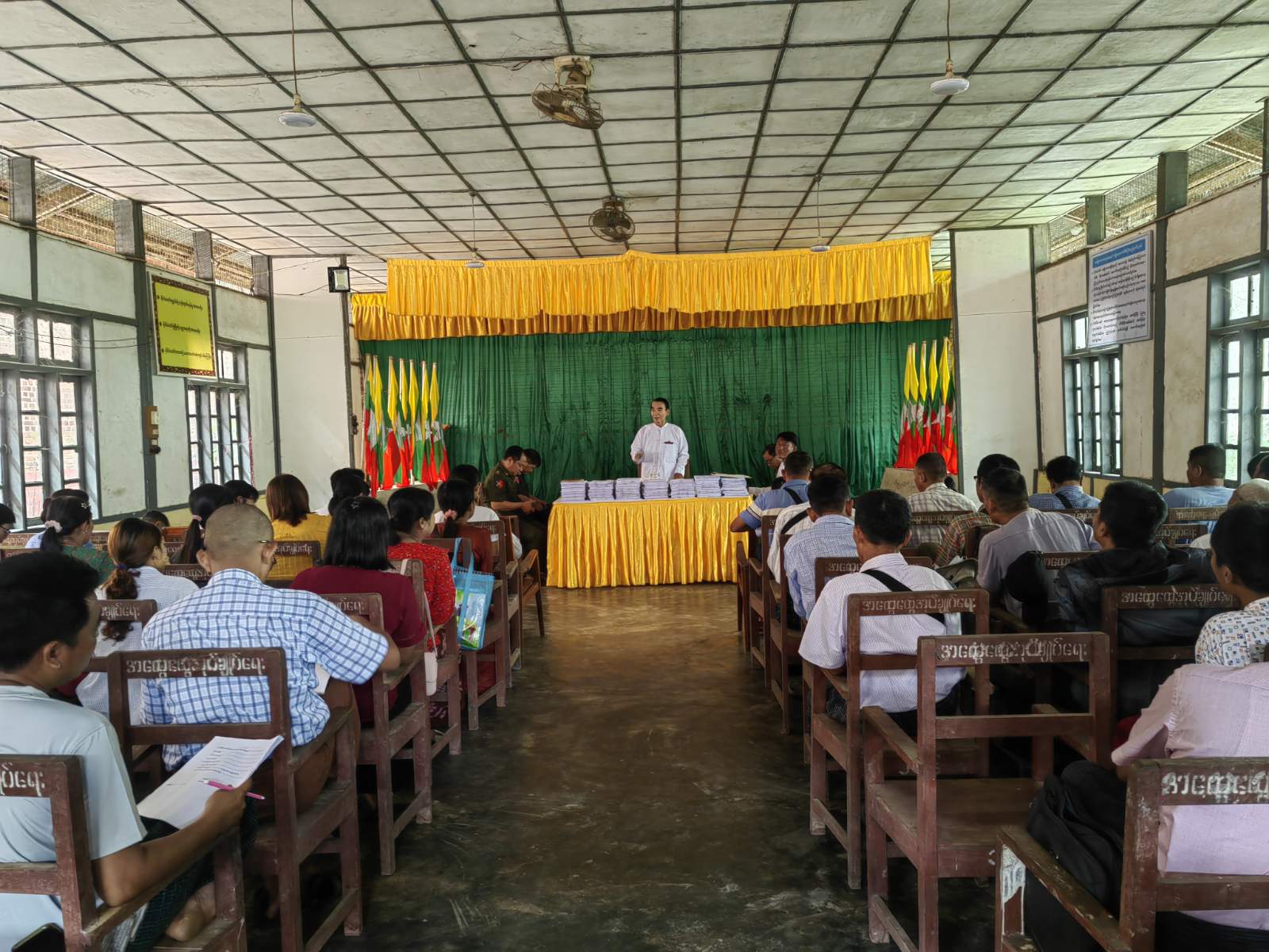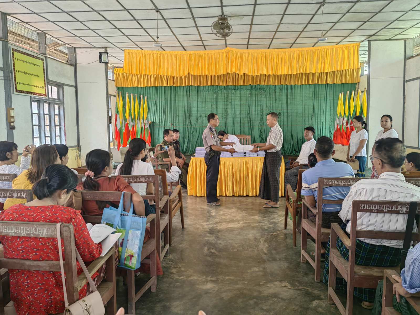 ပဲခူးတိုင်းဒေသကြီး၊ နတ်တလင်းခရိုင်၊ နတ်တလင်းမြို့နယ် ရွေးကောက်ပွဲကော်မရှင်အဖွဲ့ခွဲရုံးမှ မဲစာရင်းများ ကပ်ထားကြေညာနိုင်ရေး ပုံစံ - ၁ မဲစာရင်းများ ဖြန့်ဝေခြင်းကို ယမန်နေ့က မြို့နယ်အထွေထွေအုပ်ချုပ်ရေးဦးစီးဌာနအစည်းအဝေးခန်းမတွင် ကျင်ပပြုလုပ်ခဲ့သည်။