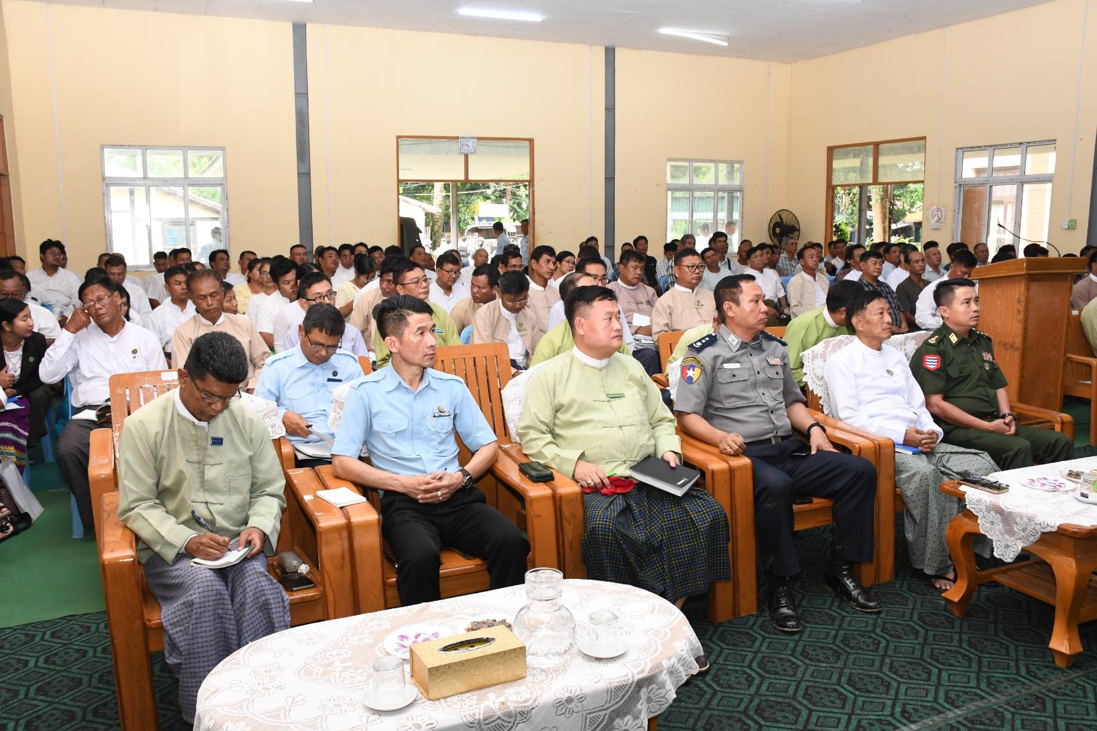 ထို့နောက် တိုင်းဒေသကြီးဝန်ကြီးချုပ်နှင့်အဖွဲ့သည် ဟင်္သာတမြို့နယ်အထွေထွေအုပ်ချုပ်ရေးဦးစီးဌာန၊ အစည်းအဝေးခန်းမတွင်ပြုလုပ်သည့် မြန်အောင်ခရိုင်နှင့် ဟင်္သာတခရိုင် စိုက်ပျိုးထုတ်လုပ်မှုတိုးတက်မြင့်မားရေး လုပ်ငန်းကြီးကြပ်မှုကော်မတီများ၊ မြို့နယ်စိုက်ပျိုးထုတ်လုပ်မှုတိုးတက်မြင့်မားရေး လုပ်ငန်းကြီးကြပ်မှုကော်မတီများ၊ ဌာနဆိုင်ရာများ၊ လုပ်ငန်းရှင်များနှင့် တွေ့ဆုံပွဲအခမ်းအနားသို့တက်ရောက်၍ တိုင်းဒေသကြီးဝန်ကြီးချုပ်က“ တိုင်းဒေသကြီးအတွင်းဆီဖူလုံရေးအတွက် ပဲပုပ်-ပဲကြီး ရောနှော ဧက(၁)သိန်းကိုစိုက်ပျိုးဆောင်ရွက်လျက်ရှိပါကြောင်း၊ ပဲပုပ်စိုက်ပျိုးခြင်းဖြင့် စရိတ်ကုန်ကျမှုသက်သာစေပြီး တောင်သူများအတွက်များစွာ အကျိုးရှိမည်ဖြစ်ပါကြောင်း၊ မြေပဲ၊ နှမ်း၊ နေကြာ စသည့် ဆီထွက်သီးနှံများကိုလည်း စိုက်ပျိုးလျက်ရှိပြီး ပန်းတိုင်အထွက်နှုန်းရောက်ရှိရေးအတွက် တွန်းအားပေးကြပ်မတ်ဆောင်ရွက်လျက်ရှိပါကြောင်း၊ ဖွဲနုဆီထုတ်လုပ်နိုင်ရေးအတွက်လည်း ဖွဲနုဆီကြမ်းစက်ရုံများ တည်ဆောက်ထုတ်လုပ်နိုင်ရေး ဆောင်ရွက်လျက်ရှိပါကြောင်း၊ တောင်သူများထံမှစိုက်ပျိုးထွက်ရှိသော ပဲပုပ်များကိုဝယ်ယူရန်အတွက် ပဲပုပ်ဈေးကွက်ရှိပြီးဖြစ်ပါကြောင်းနှင့် ဆီကြိတ်ခွဲထုတ်လုပ်နိုင်ရေးအတွက်လည်း ဆောင်ရွက်လျက်ရှိပါကြောင်း၊ တောင်သူများအတွက် စိုက်ပျိုးစရိတ်ကာမိပြီး အကျိုးအမြတ်ရှိရန် စီမံဆောင်ရွက်ပေးနိုင်ရေးနှင့် စပါးဈေးနှုန်းသင့်တင့်မျှတစေရန် ဆောင်ရွက်လျက်ရှိပါကြောင်း၊ ပဲပုပ်စိုက်ဧကများ သတ်မှတ်ကာလအတွင်း စိုက်ဧကပြည့်မီရေးအတွက်လည်း ကြိုးပမ်းသွားကြစေလိုကြောင်း” အမှာစကားပြောကြားသည်။