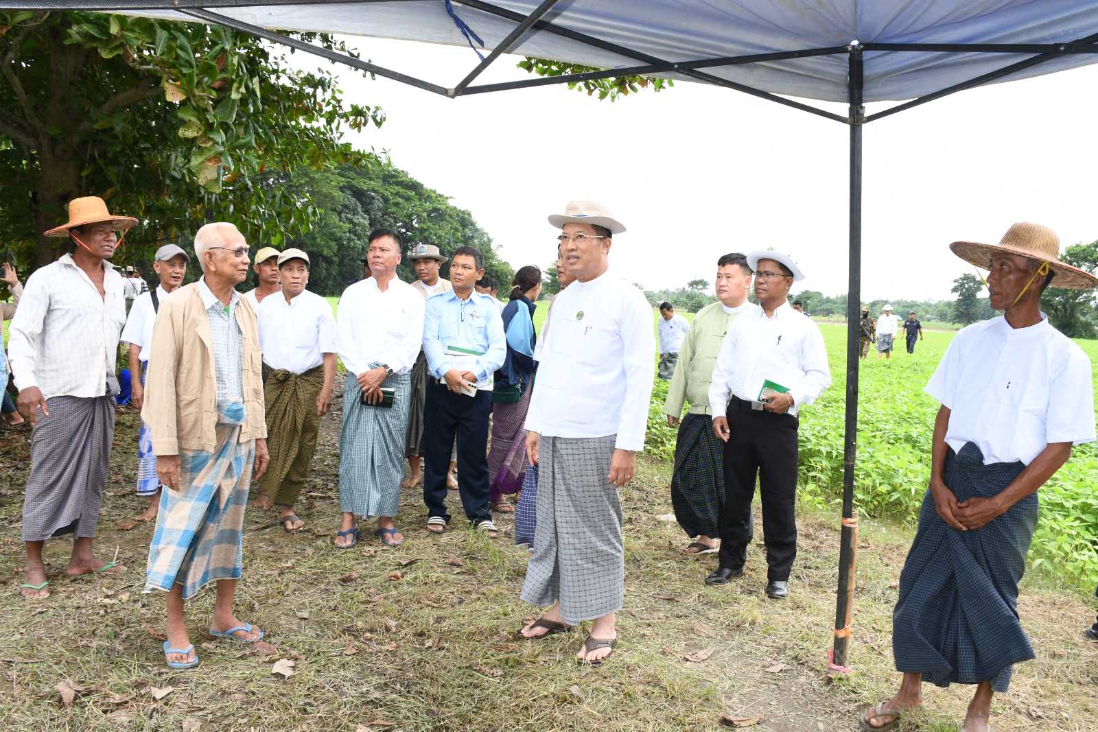 ဦးစွာ တိုင်းဒေသကြီးဝန်ကြီးချုပ်နှင့်အဖွဲ့သည် ဟင်္သာတမြို့နယ်၊ ခေါင်းဆေးကျွန်းကျေးရွာရှိ တောင်သူဦးမျိုးလွင်ဦး၏ စိုက်ဧက (၃) ဧကတွင် စိုက်ပျိုးထားသည့် ပဲပုပ်(ဆီတိုးရွက်ချွန်း)မျိုးစိုက်ပျိုးထားရှိမှုများနှင့် အောင်မြင်ဖြစ်ထွန်းနေမှုများကို ကြည့်ရှုအားပေးပြီး ပဲပုပ်စိုက်ပျိုးထုတ်လုပ်မှု၊ တစ်ဧကအထွက်နှုန်းနှင့် အောင်မြင်ဖြစ်ထွန်းမှုအ ခြေအနေများမေးမြန်းခဲ့ပြီး တောင်သူများနှင့်တွေ့ဆုံ၍ စားသုံးဆီဖူလုံရေးအတွက် ဆီထွက်သီးနှံများပိုမိုတိုးတက်စိုက်ပျိုးစေရေး၊ ဆီထွက်နှုန်းကောင်းမွန်သည့် မျိုးများအသုံးပြုစိုက်ပျိုးစေရေးနှင့် ဆီကြိတ်ခွဲထုတ်လုပ်နိုင်ရေးတို့ကို ဆွေးနွေးမှာကြားခဲ့သည်။