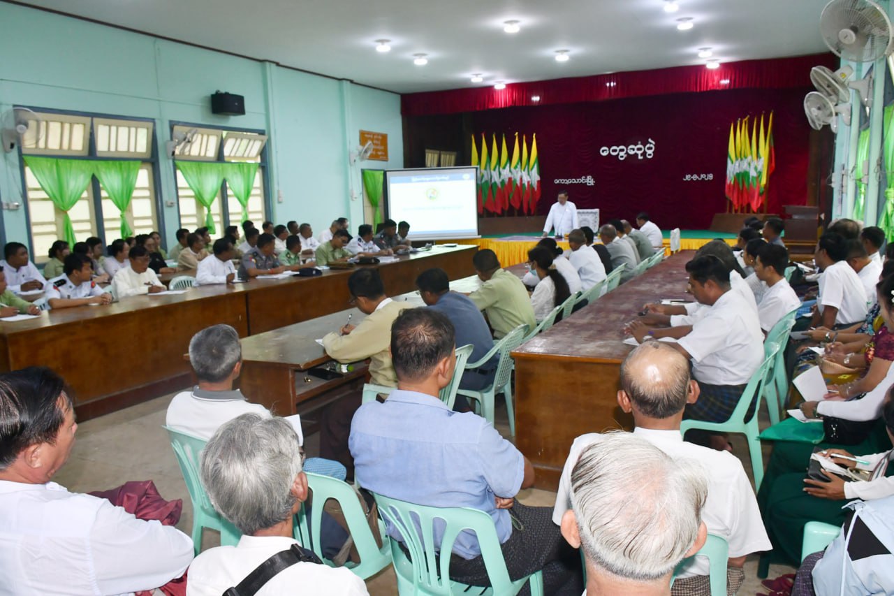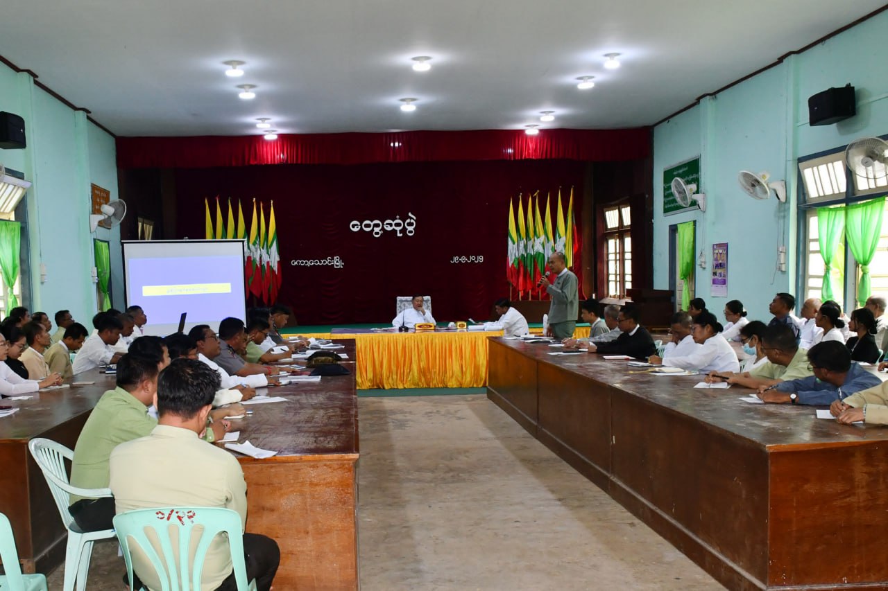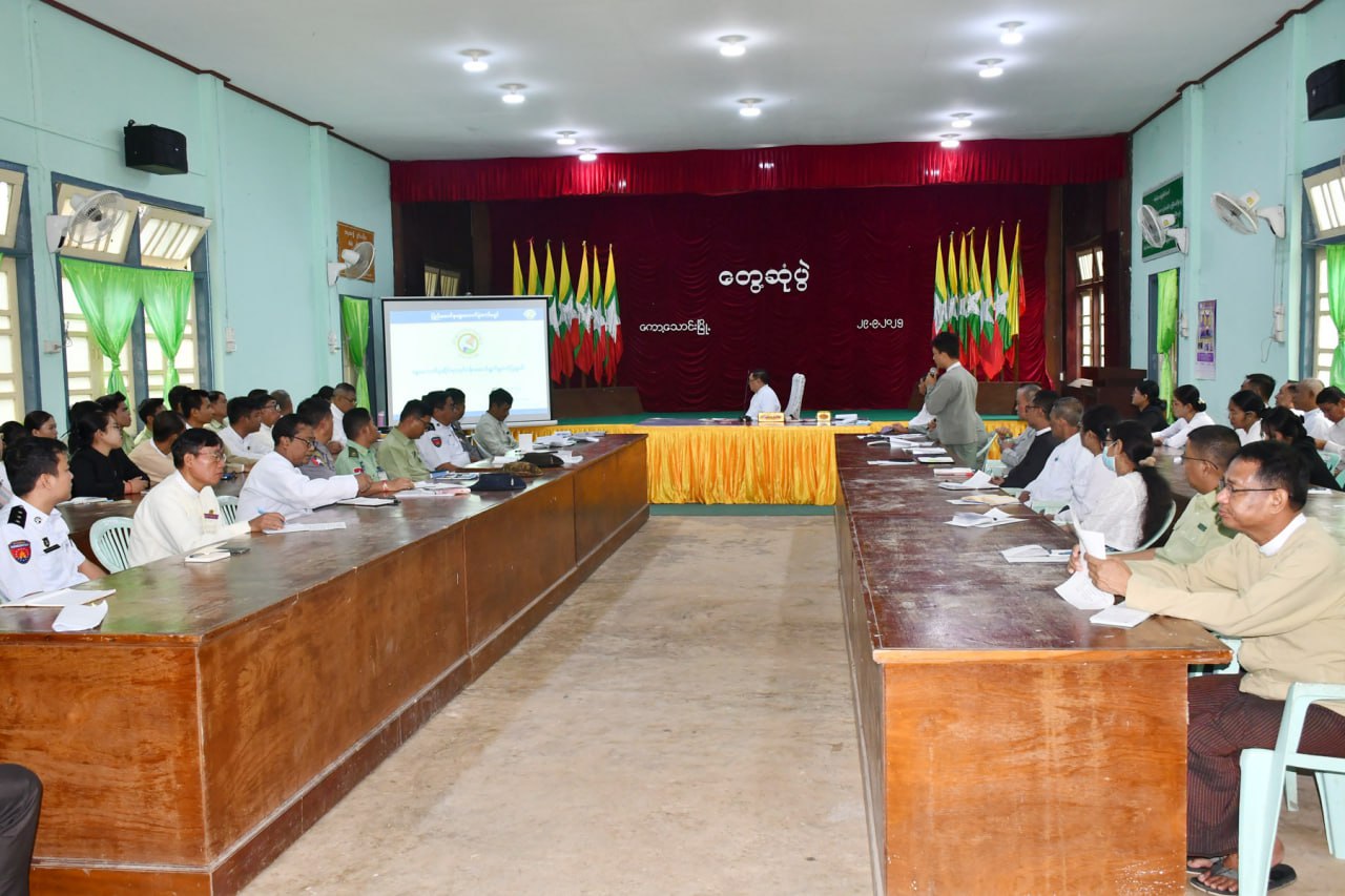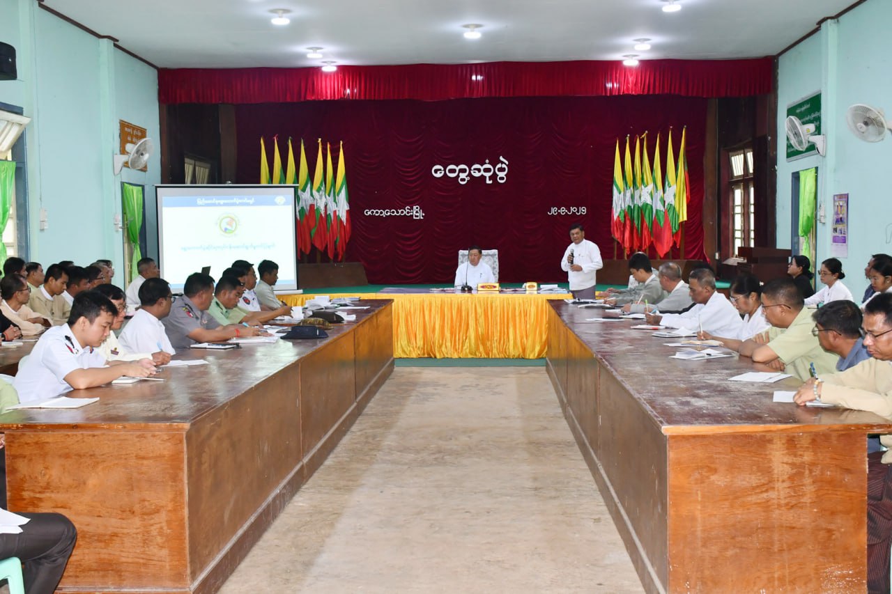 ရှေးဦးစွာ ပြည်ထောင်စုရွေးကောက်ပွဲကော်မရှင်အဖွဲ့ဝင် ဦးသန်းထွတ်သိန်းက “နိုင်ငံတော်အတွက် အရေးကြီးသော ရွေးကောက်ပွဲအောင်မြင်စွာကျင်းပ ဆောင်ရွက်နိုင်ရေးအတွက် ယခုကဲ့သို့လုပ်ငန်းညှိနှိုင်းအစည်းအဝေး ဆောင်ရွက်ရခြင်းဖြစ်ပါကြောင်း၊ ရွေးကောက်ပွဲ အောင်မြင်အောင် ဆောင်ရွက်နိုင်ရေးအတွက် မိမိအပါအဝင် တက်ရောက်လာကြသူများ အားလုံး တွင်တာဝန်ရှိပါကြောင်း၊ ရပ်ကွက်၊ ကျေးရွာ၊မြို့နယ်များမှ ရွေးကောက်ပွဲအဖွဲ့ခွဲများနှင့် အဖွဲ့အစည်းအသီးသီးမှ တာဝန်ရှိသူများက ရွေးကောက်ပွဲဆိုင်ရာသိသင့်သိထိုက်သည်များကို သိရှိထားရန်လိုအပ်ပြီး မဲဆန္ဒရှင်ပြည်သူများအား အသိပညာပေးခြင်း၊ တိုက်တွန်းနှိုးဆော်ခြင်းများဆောင်ရွက်ကြရမည်ဖြစ်ပါကြောင်း၊ ထို့ကြောင့် မြို့နယ်၊ ရပ်ကွက်/ကျေးရွာများမှ တာဝန်ရှိသူများက ရွေးကောက်ပွဲဆိုင်ရာလုပ်ငန်းများကို အမှန်တကယ်သိရှိနားလည်ပြီး ထဲထဲဝင်ဝင်ဆောင်ရွက်ရန်နှင့် ခရိုင်နှင့် တိုင်းဒေသကြီး ကော်မရှင်အဖွဲ့ခွဲမှလည်း စနစ်တကျကြီးကြပ်ရန်လိုအပ်ကြောင်း၊ ရွေးကောက်ပွဲကို အောင်မြင်အောင် ဆောင်ရွက်နိုင်ရေးအတွက် လုပ်ငန်းများကို စနစ်တကျအကောင် အထည်ဖော် ပူးပေါင်းဆောင်ရွက်ကြရန်” ပြောကြားသည်။