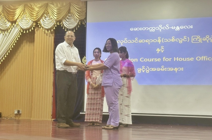ထို့နောက် နောက်ဆုံးနှစ်အမ်ဘီဘီအက်စ်အပိုင်း(ခ) (၅/၂၀၂၄) သင်တန်းတွင်ဂုဏ်ထူးရရှိကြသည့် ကျောင်းသား၊ ကျောင်းသူများအား ဆုများချီးမြှင့် ပေးအပ်ကြပြီး စုပေါင်းမှတ်တမ်းတင် ဓာတ်ပုံရိုက်ကူးခဲ့ကြကြောင်း သိရသည်။
