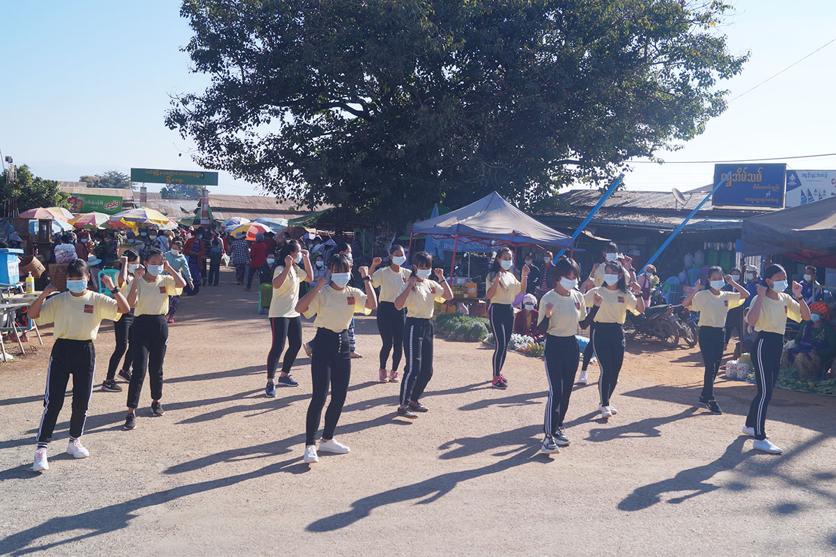 Mask Campaign ဆောင်ရွက်ရာတွင် Go Away Corona သီချင်းဖြင့် Pekon Fitness Dance အဖွဲ့မှ သရုပ်ဖော်ကပြခြင်း၊ ရောဂါဖြစ်ပွားမှု ကာကွယ်ရန်နည်းလမ်းများကို လက်ကိုင်အသံချဲ့စက် များ ဖြင့် အသိပညာပေးခြင်းနှင့် မြို့မဈေးတွင် ပါးစပ်နှင့် နှာခေါင်းစည်းများ အခမဲ့ဝေငှခြင်းတို့ကို ဆောင်ရွက်ခဲ့သည်။