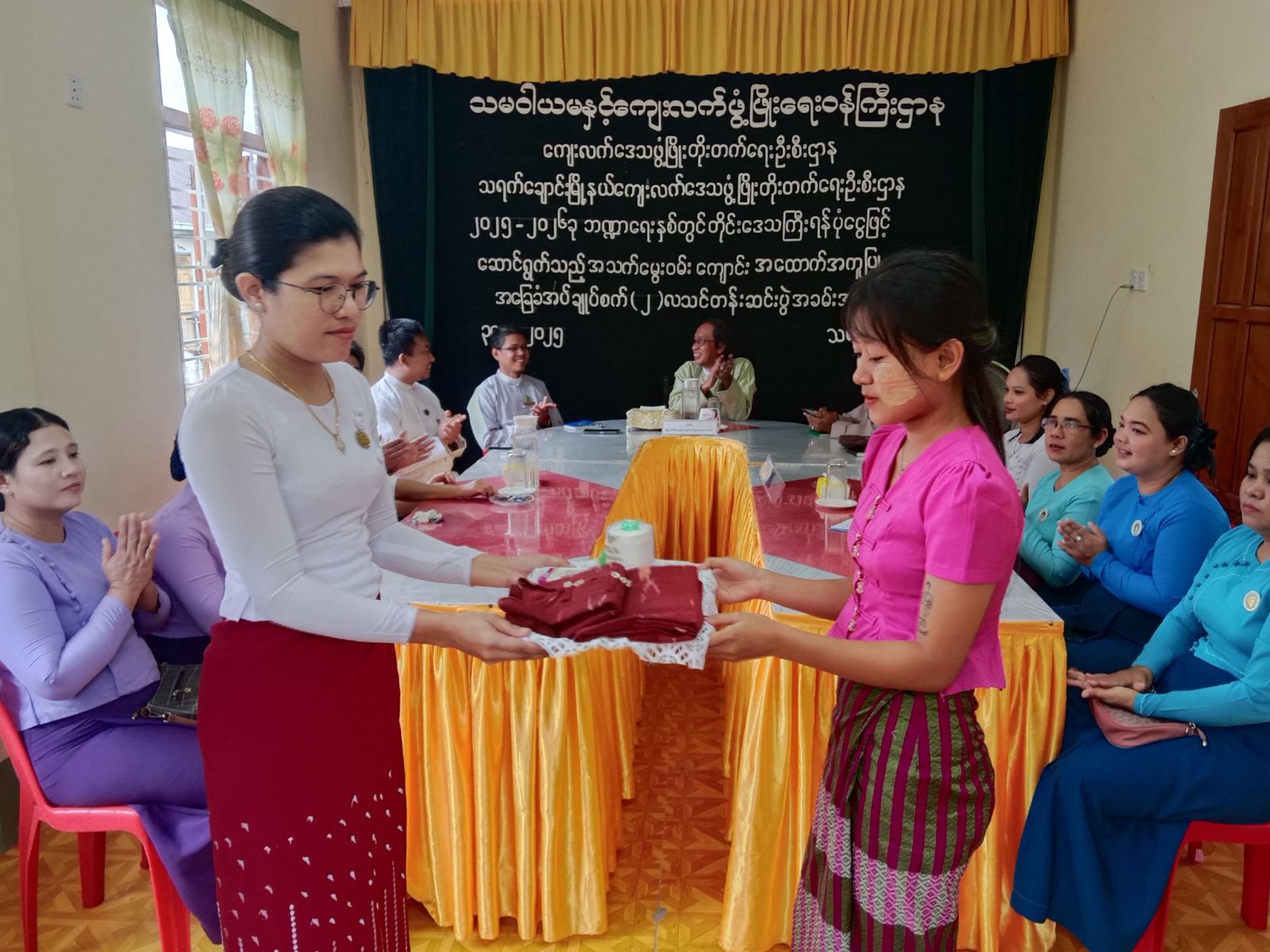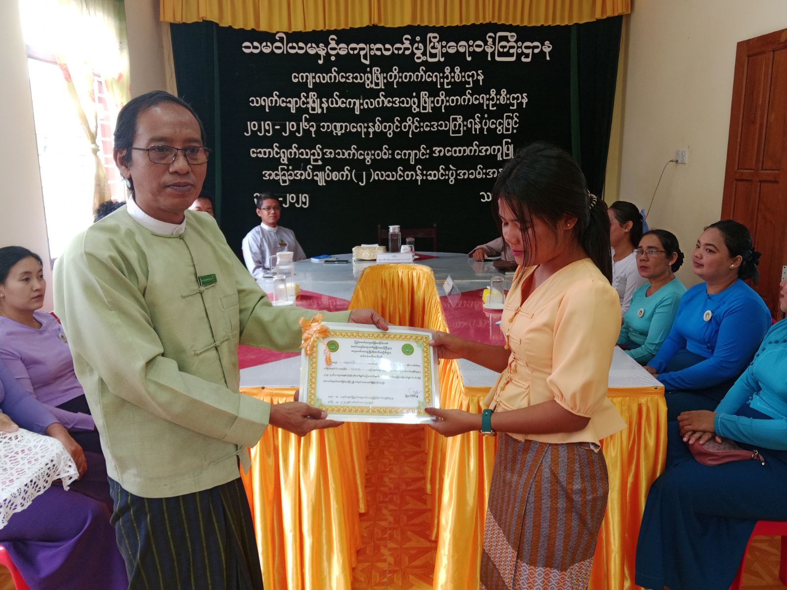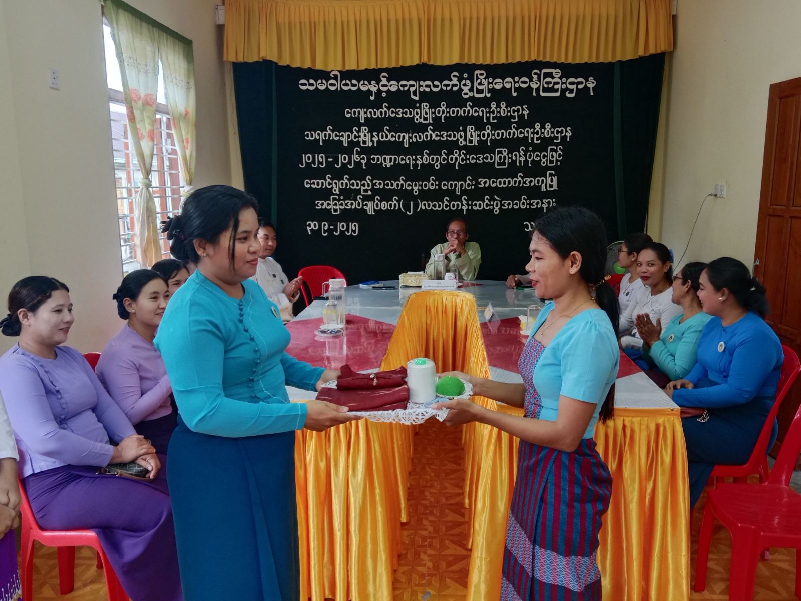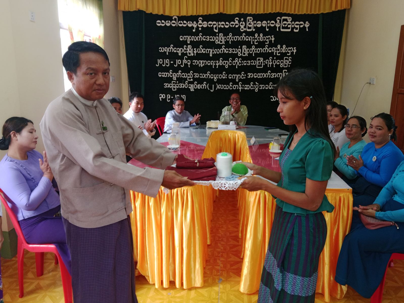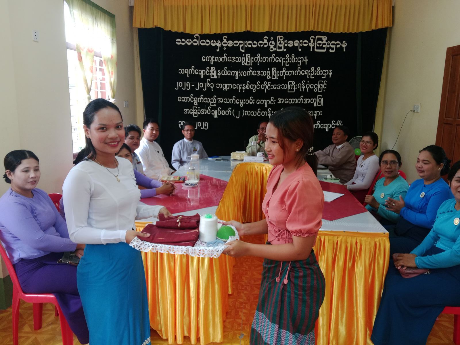 ထို့နောက် သရက်ချောင်းမြို့နယ်၊ စီမံခန့်ခွဲရေးနှင့်အုပ်ချုပ်ရေးကော်မတီဥက္ကဋ္ဌ ဦးအောင်မြင့်သိန်းနှင့် တာဝန်ရှိသူများက သင်တန်းဆင်းလက်မှတ်များနှင့် သင်တန်းသူများချုပ်လုပ်ထားသော အဝတ်အထည်များကို သင်တန်းသူများအား ပေးအပ်ပြီးသင်တန်းသူများအားလုံး ကိုယ်စား သင်တန်းသူတစ်ဦးမှ အဆိုပါသင်တန်းကိုဖွင့်လှစ်ပေးသော ကျေးလက်ဒေသဖွံ့ဖြိုးတိုးတက်ရေးဦးစီးဌာနမှ တာဝန်ရှိသူများနှင့် သင်တန်းနည်းပြဆရာမအား ကျေးဇူးတင်စကားပြောကြားခဲ့သည်။