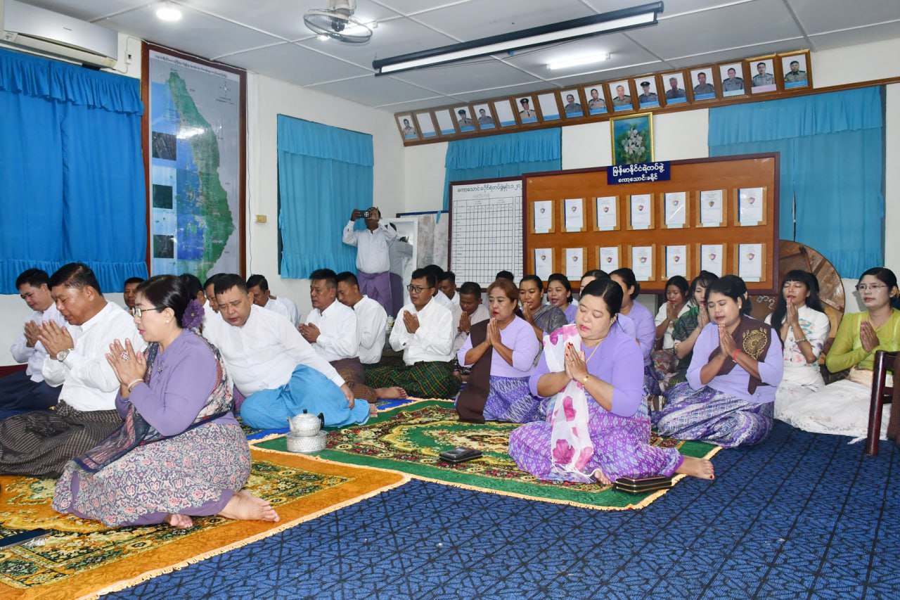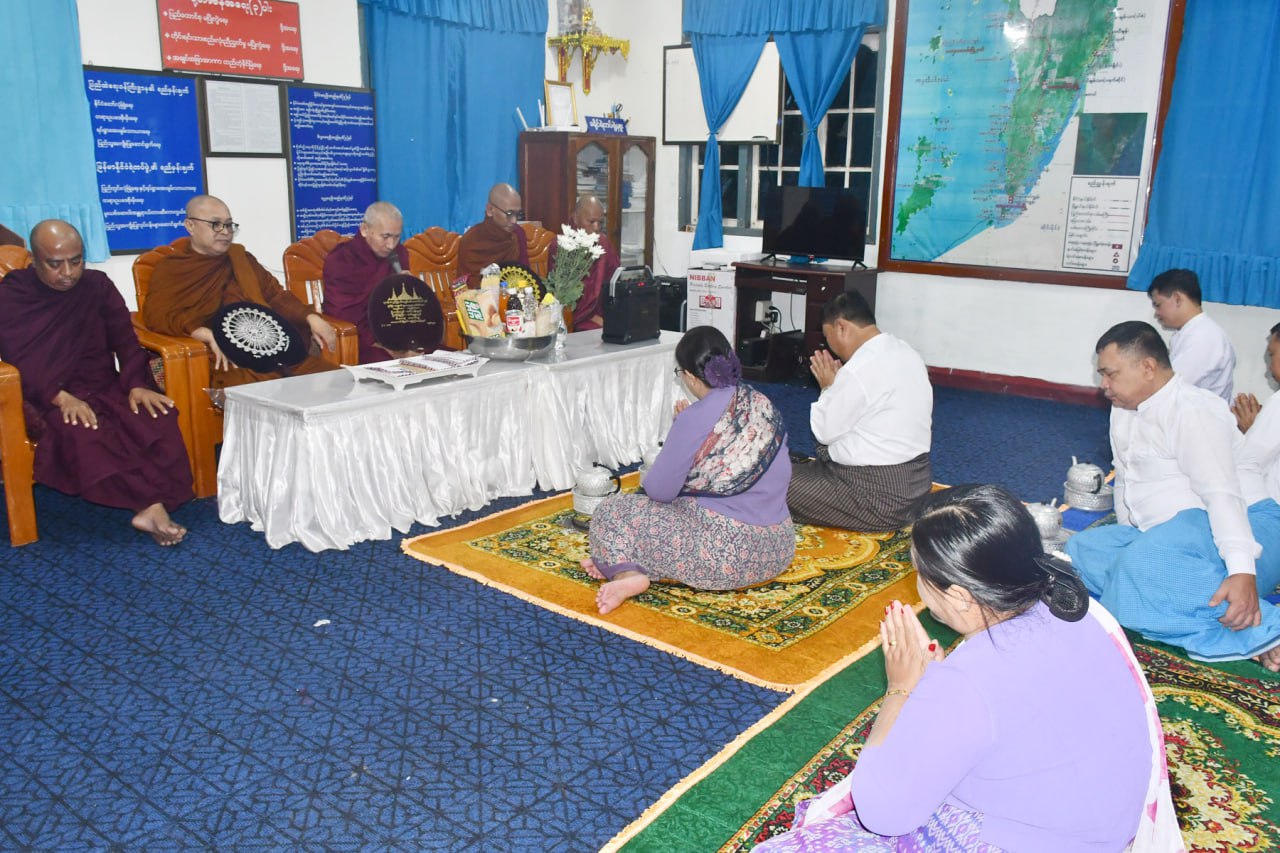 သရဏဂုံနှင့်ငါးပါးသီလ ခံယူစောင့်တည်ခဲ့ကြသည်။ ယင်းနောက်ဆရာတော်သံဃာတော် အရှင်သူမြတ်များက အန္တရာယ်ကင်းပရိတ်တရားတော် ရွတ်ဖတ်ပူဇော်၍ကော့သောင်းခရိုင် ရဲတပ်ဖွဲ့မှူးနှင့်တပ်ဖွဲ့ဝင်များက ဆရာတော်သံဃာတော်များအား လှူဖွယ်ဝတ္ထု၊ ပစ္စည်းများ ဆက်ကပ်ခဲ့ကြသည်။ ယင်းနောက် ရွှေပြည်သာကျောင်းတိုက်ဆရာတော်မှ အနုမောဒနာတရားချီးမြှင့်၍ လှူဒါန်းမှုအစုစုအတွက် ရေစက် သွန်းချ အမျှပေးဝေခဲ့ကြသည်။ ထို့နောက် ဆရာတော်သံဃာတော်အရှင်သူမြတ်များအား အရုဏ်ဆွမ်းဆက်ကပ်လှူဒါန်းခဲ့ကြကြောင်း သိရသည်။