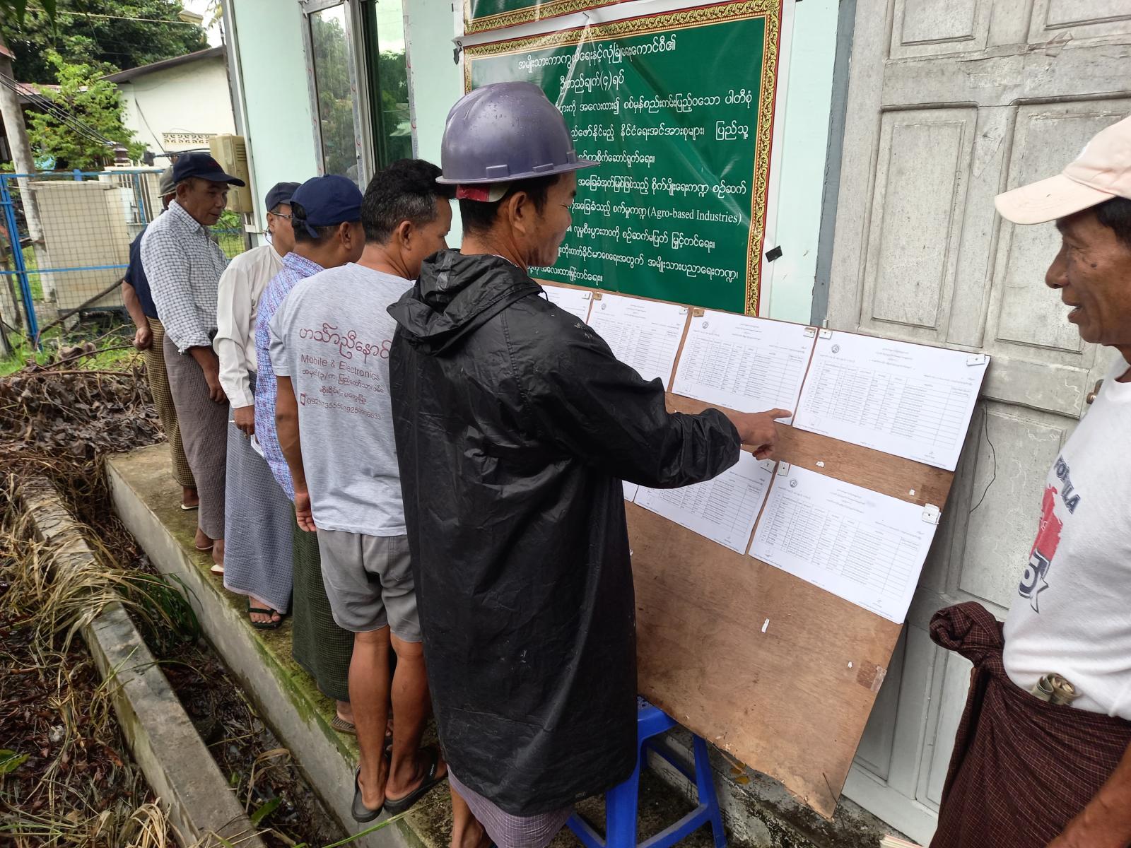 အဆိုပါမဲစာရင်းများကို မြို့နယ်အတွင်းရှိရပ်/ ကျေးကော်မရှင်အဖွဲ့ခွဲရုံးများတွင် စက်တင်ဘာ ၃၀ ရက်မှ အောက်တိုဘာ ၁၃ ရက်အထိ၁၄ ရက်ကြာပထမအကြိမ်အဖြစ် ကပ်ထားကြေညာမည်ဖြစ်ပြီး မဲဆန္ဒရှင်စာရင်းများ ကပ်ထားကြေညာစဥ် မဲဆန္ဒရှင်များက မိမိအမည်ပါ၊ မပါ လာရောက်ကြည့်ရှုရမည်ဖြစ်ကြောင်း၊ မိမိအမည်မဲစာရင်းတွင် မပါဝင်ပါက ပုံစံ(၃) ဖြင့် မဲစာရင်းတွင် အမည်ထည့်သွင်းပေးရန်တောင်းဆိုခြင်း၊ မပါဝင်သင့်သူများ ပါဝင်နေပါက ပုံစံ(၄)ဖြင့် ကန့်ကွက်ခြင်း၊ မဲစာရင်းပါ အချက်အလက်များမှားယွင်းနေပါက ပုံစံ (၄-ဂ)ဖြင့် ပြင်ဆင်လွှာတင်သွင်းခြင်းတို့ကို ဆောင်ရွက်ရမည်ဖြစ်ကြောင်းနှင့် အဆင့်ဆင့်ဆောင်ရွက်ပြီးပါက မဲဆန္ဒရှင်စာရင်းကို ထပ်မံ၍ကပ်ထားကြေညာမည်ဖြစ်သည်။