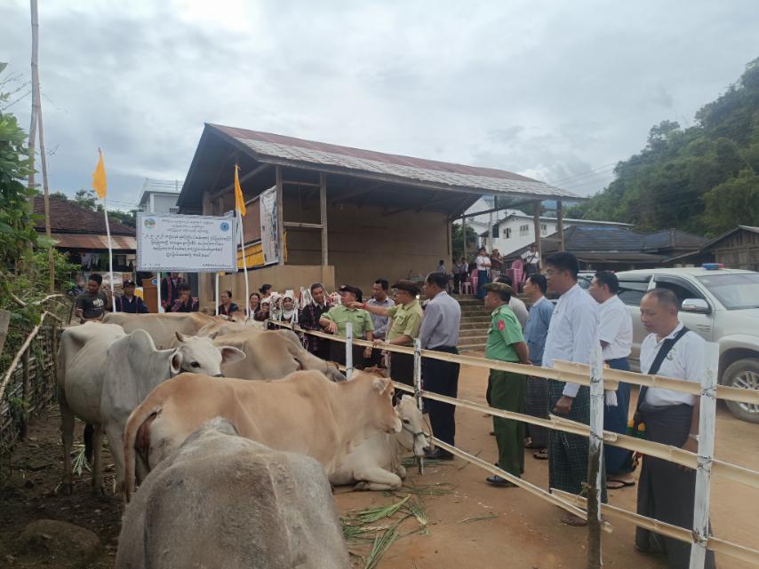 ထို့နောက် တာဝန်ရှိသူများက ကျေးရွာကော်မတီထံ ဒေသနွား၊ နွားပြာစိမ်းအမ(၁၀)ကောင်နှင့် စာချုပ်များ လွှဲပြောင်းပေးအပ်ခဲ့ကြောင်း သိရသည်။