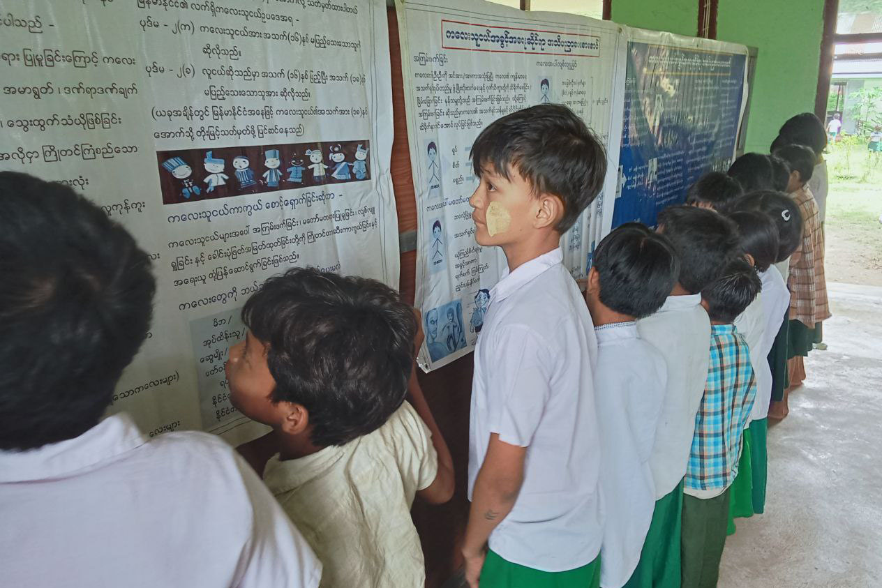 ထိုသို့ ကွင်းဆင်းဆောင်ရွက်ရာတွင် မြို့နယ်ပြန်ကြားရေးနှင့်ပြည်သူ့ဆက်ဆံရေးဦးစီးဌာန၊ မြို့နယ်ဦးစီးအရာရှိ ဒေါ်ဝင်းအိဇွန်က ကျောင်းသား ကျောင်းသူများအား စာအုပ် စာစောင်များလာရောက် ငှားရမ်းဖတ်ရှုကြရန်အတွက် အသိပညာပေးဟောပြောပြီး စာအုပ် စာစောင်များနှင့် ကလေးသူငယ် အခွင့်အရေးဆိုင်ရာ နံရံကပ်စာစောင်များပြသရာ ကျောင်းသား ကျောင်းသူများက စိတ်ပါဝင်စားစွာ လေ့လာဖတ်ရှုခဲ့ကြောင်း သိရသည်။