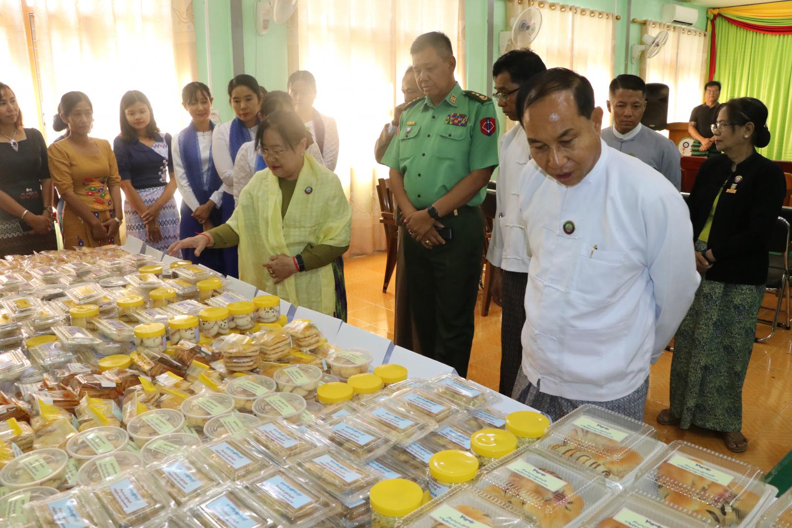 ထို့နောက် တိုင်းဒေသကြီးဝန်ကြီးချုပ်နှင့် တာဝန်ရှိသူများက သင်တန်းသား/ သင်တန်းသူများကိုယ်တိုင် ပြုလုပ်ထားသည့် တန်ဖိုးမြှင့်စားသောက်ကုန်(Bakery) အမျိုးမျိုးတို့အား ကြည့်ရှုခဲ့ကြသည်။