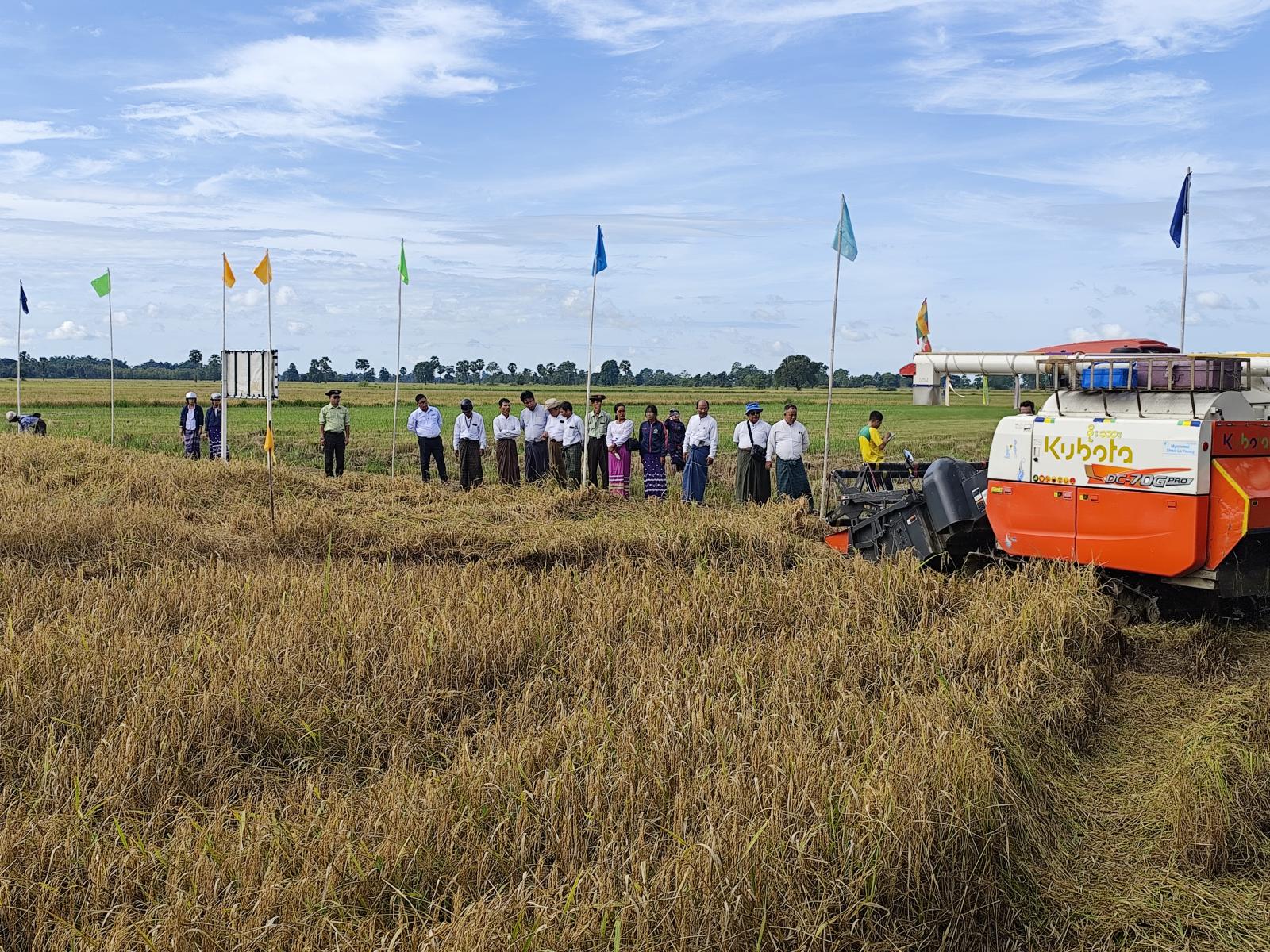 ဧရာဝတီတိုင်းဒေသကြီး၊ ဟင်္သာတခရိုင်၊ လေးမျက်နှာမြို့နယ် စာရေးကွင်းကျေးရွာအုပ်စု စာရေးကွင်းကျေးရွာ ကွင်းအမှတ် ၁၂၂၃၊ ဦးပိုင်အမှတ် ၉၆၊ တောင်သူ ဦးတင်မျိုးထွေး၏ လယ်မြေတွင် ၂၀၂၅-၂၀၂၆ ခုနှစ် မိုးစပါးစံပြကွက် ရိတ်သိမ်းပွဲကျင်းပခဲ့သည်။