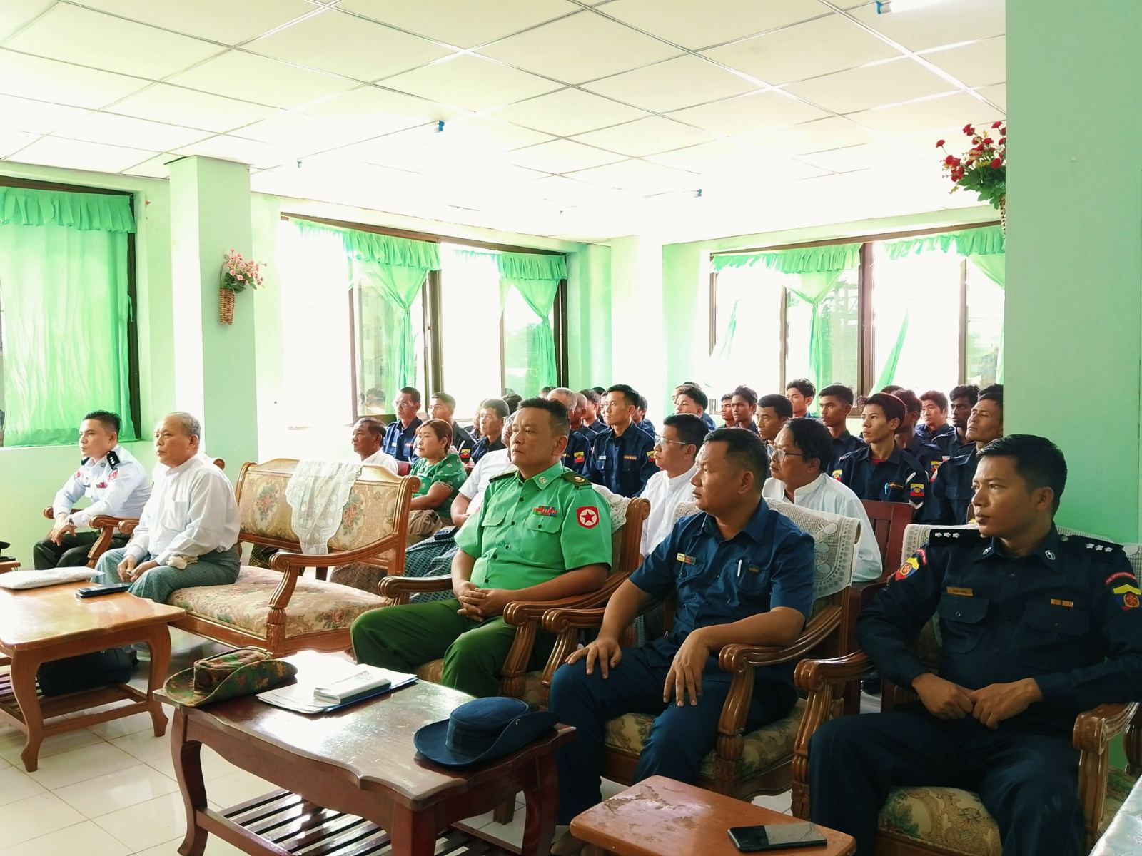 ဆက်လက်၍ မြို့နယ်စီမံခန့်ခွဲရေးနှင့် အုပ်ချုပ်ရေးကော်မတီအဖွဲ့ဝင် ရဲမှူးဇော်မျိုးထွန်းက ယခုသင်တန်းမှပို့ချသည့် မီးဘေးအန္တရာယ်နှင့် သဘာဝဘေးအန္တရာယ်များ ကြိုတင်ကာကွယ်ရေးအတွက် စာတွေ့၊ လက်တွေ့သင်တန်းများကို စနစ်တကျသင်ကြားပြီး မီးလောင်မှုများ၊ သဘာဝဘေးအန္တရာယ်များ ကြုံတွေ့လာပါက ပူးပေါင်းပါဝင်ဆောင်ရွက်ကြစေလိုကြောင်းပြောကြားခဲ့ပြီး မြို့နယ်စီမံခန့်ခွဲရေးနှင့် အုပ်ချုပ်ရေးကော်မတီအဖွဲ့ဝင် ဦးရွှေလှိုင်က သင်တန်းနှင့်ပတ်သက်သော လိုအပ်သည်များကို ပြောကြားခဲ့သည်။