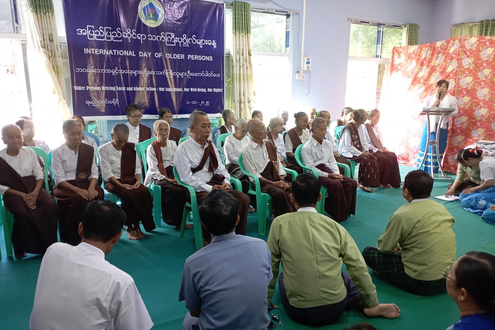 ရှေးဦးစွာ ရမည်းသင်းခရိုင် လူမှုဝန်ထမ်းဦးစီးဌာန၊ သက်ကြီးပုဂ္ဂိုလ်ကော်မတီအတွင်းရေးမှူး ဒေါ်ဆွေဆွေဝင်းက နိုင်ငံတော်အနေဖြင့် သက်ကြီးပုဂ္ဂိုလ်များအား လစဉ်ထောက်ပေးနေမှု အခြေအနေများနှင့် အပြည်ပြည်ဆိုင်ရာသက်ကြီးပုဂ္ဂိုလ်များနေ့အထိမ်းအမှတ် ပြုလုပ်ရခြင်း၏ ရည်ရွယ်ချက်များကို ရှင်းလင်းဆွေးနွေးသည်။
