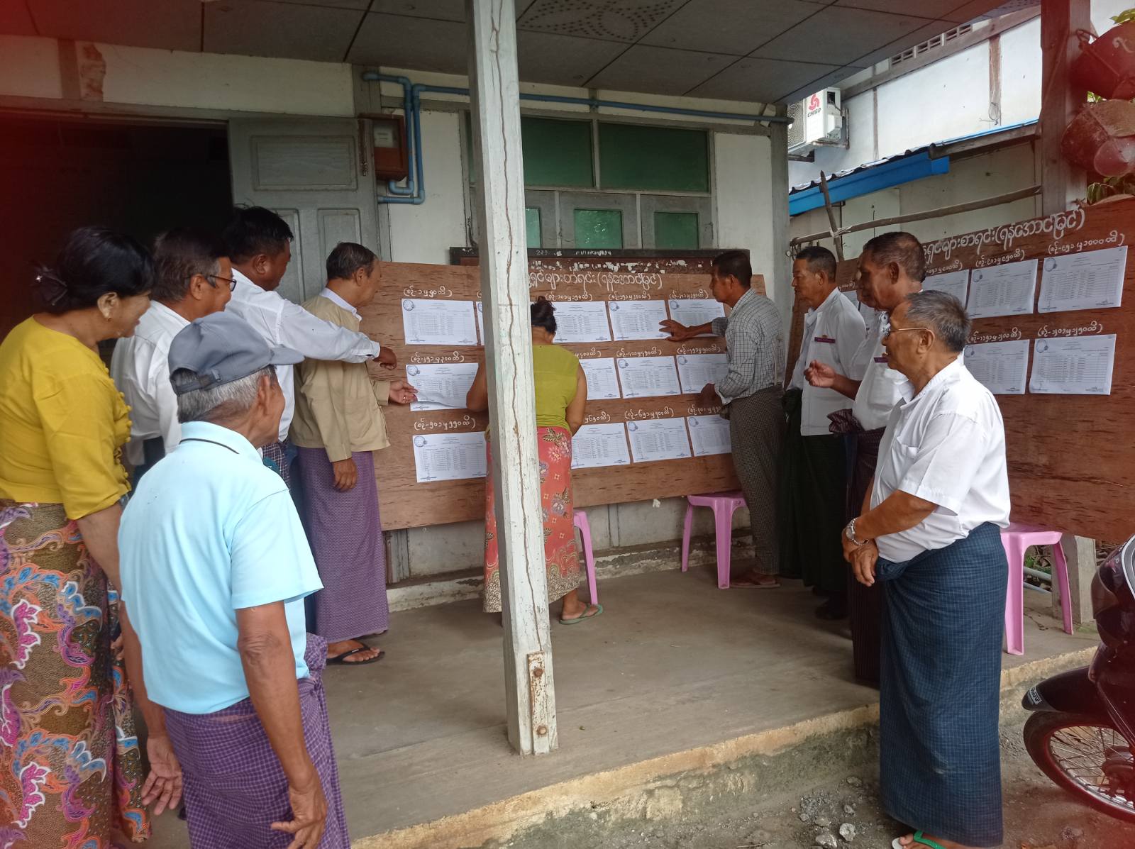 အဆိုပါ မဲဆန္ဒရှင်စာရင်းများအား စက်တင်ဘာ ၃၀ မှ အောက်တိုဘာ၁၃ရက်အထိ ရက်သတ္တ(၂)ပတ်ကြာကပ်ထားကြေညာမည်ဖြစ်ကြောင်းနှင့်မဲဆန္ဒရှင်များ လာရောက်ကြည့်ရှု ပြီး မိမိအမည်မဲစာရင်းတွင်မပါဝင်ပါက ပုံစံ(၃)ဖြင့် မဲစာရင်းတွင် အမည်ထည့်သွင်း ပေးရန် တောင်းဆိုခြင်း၊ မပါဝင်သင့်သူများပါဝင်နေပါက ပုံစံ(၄)ဖြင့် ကန့်ကွက်နိုင်ခြင်း၊ မဲစာရင်းပါ အချက်အလက်များမှားယွင်းနေပါက ပုံစံ(၄-ဂ)ဖြင့်ပြင်ဆင်လွှာတင်သွင်းခြင်းတိုကို ဆောင်ရွက်ရ မည်ဖြစ်ပြီး အဆိုပါပုံစံများကိုရပ်ကွက်/ကျေးရွာအုပ်စုကော်မရှင်အဖွဲ့ခွဲရုံးများတွင် အခမဲ့ရယူနိုင်ပြီး ဖြည့်စွက်ခြင်း၊ ပယ်ဖျက်ခြင်း၊ ပြင်ဆင်ခြင်းတို့ဆောင်ရွက်နိုင်ပြီး မဲဆန္ဒရှင်စာရင်းများ ကြေညာ ထားမှုကို မြို့နယ်ရွေးကောက်ပွဲကော်မရှင်အဖွဲ့ခွဲဥက္ကဋ္ဌနှင့်အဖွဲ့ဝင်များက ရပ်ကွက်နှင့်ကျေးရွာ အုပ်စုအလိုက် လှည့်လည်ကြည့်ရှု၍ လိုအပ်သည်များကို ကြီးကြပ်ဆောင်ရွက်ခဲ့ကြကြောင်းသိရသည်။