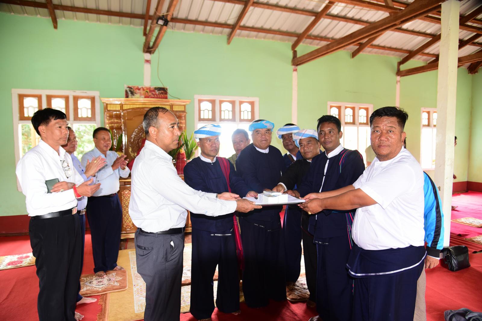 ဦးစွာ ပြည်နယ်ဝန်ကြီးချုပ်နှင့်တာဝန်ရှိသူများသည် တောင်ကြီးမြို့နယ် လွယ်တော်ကျေးရွာအုပ်စု နားဟစ်ကျေးရွာရှိ ထီလိတ်ဘုန်းတော်ကြီးကျောင်းသို့သွားရောက်၍ ကျောင်းထိုင်ဆရာတော်ကြီးအား ဖူးမြှော်ကြည်ညို၍ လှူဖွယ်ဝတ္ထုပစ္စည်း၊ နဝကမ္မအလှူငွေများဆက်ကပ်လှူဒါန်းကြသည်။