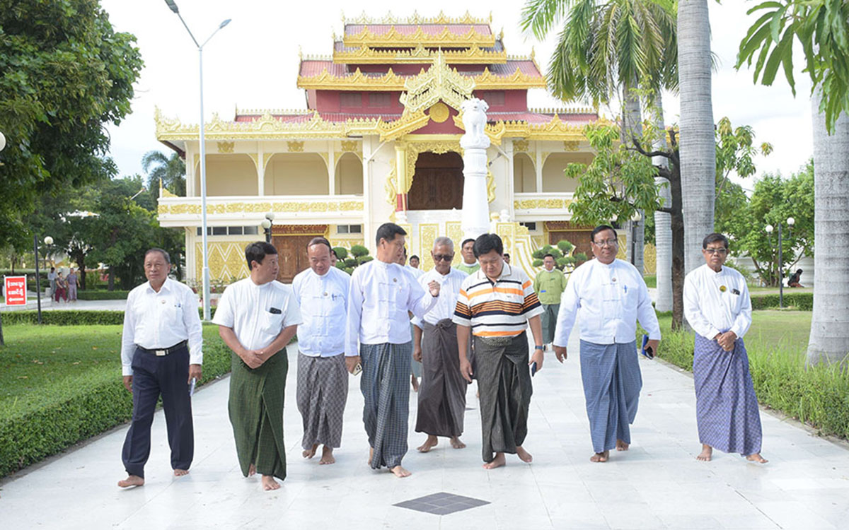 မန္တလေးငလျင်ကြီးကြောင့် ထိခိုက်ပြိုကျပျက်စီးခဲ့သည့် စေတီ၊ ပုထိုးများ၊ သာသနိကအဆောက်အအုံများ ပြန်လည်တည်ဆောက် ပြုပြင်မွမ်းမံခြင်းလုပ်ငန်းများ ဆောင်ရွက်နေမှုအခြေအနေများကို မန္တလေးတိုင်းဒေသကြီးဝန်ကြီးချုပ် ဦးမျိုးအောင်သည် တိုင်းဒေသကြီးဝန်ကြီးများ၊ အဖွဲ့ဝင်များ စက်တင်ဘာ၃၀ရက် ညနေပိုင်းက လိုက်လံကြည့်ရှုစစ်ဆေးသည်။
