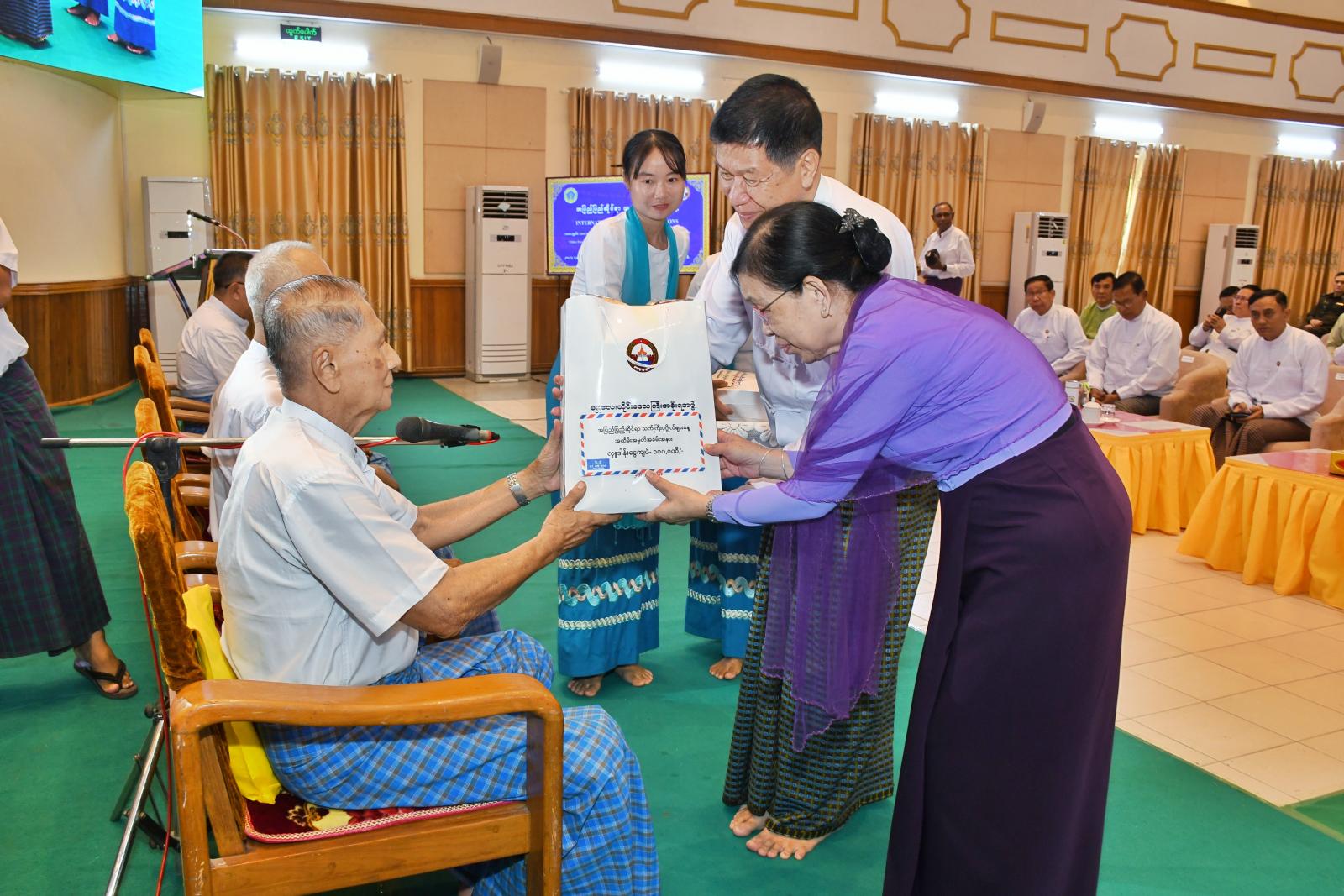 ထို့နောက် တိုင်းဒေသကြီးဝန်ကြီးချုပ်နှင့် အဖွဲ့ဝင်များက မန်းတောင်ခြေဘိုးဘွားရိပ်သာမှ ဂုဏ်ပြုခံသက်ကြီးဘိုးဘွား(၃၅)ဦးအား တစ်ဦးလျှင်ငွေကျပ် ၁၀၀၀၀၀ နှင့်လှူဒါန်းပစ္စည်းများ ပေးအပ်လှူဒါန်းပြီး တိုင်းဒေသကြီးမိခင်နှင့်ကလေးစောင့်ရှောက်ရေးအသင်းက အဘိုးအဘွားများအား ဂါရဝပြုပစ္စည်းများဖြင့် ကန်တော့ကြသည်။