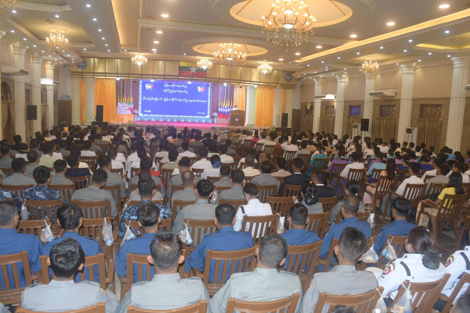 ဦးစွာ ရခိုင်ပြည်နယ်ဝန်ကြီးချုပ် ဦးထိန်လင်းက ၁၉၅၅ ခုနှစ်၊ အောက်တိုဘာလ (၁)ရက်နေ့တွင် မြန်မာနိုင်ငံရဲတပ်ဖွဲ့ဟု အမည်ပြောင်းလဲ ခဲ့သည်မှာ ယနေ့ဆိုလျှင် နှစ်(၆၁)ပြည့်ခဲ့ပြီဖြစ်ကြောင်း၊ မျက်မှောက်ခေတ်တွင် နည်းပညာအသုံးပြုမှု တွင်ကျယ်လျက်ရှိရာ ရာဇဝတ်မှုကျူးလွန်သူများအနေဖြင့်လည်း နည်းပညာကိုအသုံးချ၍ ဥပဒေများကို ချိုဖောက်ပြီး ရာဇဝတ်မှုများကို ကျူးလွန်လာကြသည့်ကို တွေ့ရကြောင်း၊ အချို့သောမှုခင်းကိစ္စများတွင် သမားရိုးကျနည်းဖြင့် ရှာဖွေစုံစမ်းဖော်ထုတ်ရန် ခက်ခဲလာသောကြောင့် ခေတ်နှင့်အညီ နည်းပညာမြင့် အထောက်အကူပြုပစ္စည်းများကိုလည်း ကျွမ်းကျင်စွာကိုင်တွယ် အသုံးပြုတတ်ရန် လိုအပ်မည် ဖြစ်ခြင်းကြောင့် ရဲတပ်ဖွဲ့ဝင်များ၏ လူစွမ်းအားအရင်းအမြစ်ဖွံ့ဖြိုး တိုးတက်ရေးအတွက် စဉ်ဆက်မပြတ်လေ့ကျင့် ဆောင်ရွက်ပေးရန်လိုအပ်ကြောင်း၊ ရခိုင်ပြည်နယ်အစိုးရအဖွဲ့ အနေဖြင့်လည်း လုံခြုံရေးနှင့်သက်ဆိုင်သည့် နည်းပညာအထောက်အကူပြု ပစ္စည်းများကိုပံ့ပိုးဆောင်ရွက်ပေးလျက်ရှိကြောင်း၊ သဘာဝဘေးကျရောက်သည့် အရေးပေါ်အချိန်တွင်လည်း ရဲတပ်ဖွဲ့ဝင်များသည် ကယ်ဆယ်ရေးလုပ်ငန်းများအပြင် လုံခြုံရေးနှင့် သဘာဝဘေးကျရောက်ချိန်တွင် ဖြစ်တတ်သည့် မှုခင်းများမဖြစ်ပွားစေရေး မှုခင်းကြိုတင်ကာကွယ်ရေး စီမံဆောင်ရွက်ရကြောင်း၊ ရဲတပ်ဖွဲ့က ဆောင်ရွက်ရမည့် တရားဥပဒေစိုးမိုးရေးဆိုင်ရာ ဖြစ်စဉ်များနှင့်အခြေအနေများကို မျက်ခြေမပြတ် စေရန်နှင့်ရဲတပ်ဖွဲ့သည် မျိုးချစ်စိတ်ရှိရမည်၊ စွမ်းရည် ပြည့်ဝရမည်၊ ခေတ်မီရမည်ဆိုသည့် မူဝါဒများနှင့်အညီ လိုက်နာကျင့်ကြံ နေထိုင်ပြီး ရဲတပ်ဖွဲ့အတွက် ရလဒ်ကောင်းများရရှိအောင် မြန်မာနိုင်ငံရဲတပ်ဖွဲ့ ပုံရိပ်ကောင်းများ ဖြစ်လာအောင်အလေးထား ဆောင်ရွက်သွားကြရန် ပြောကြားသည်။