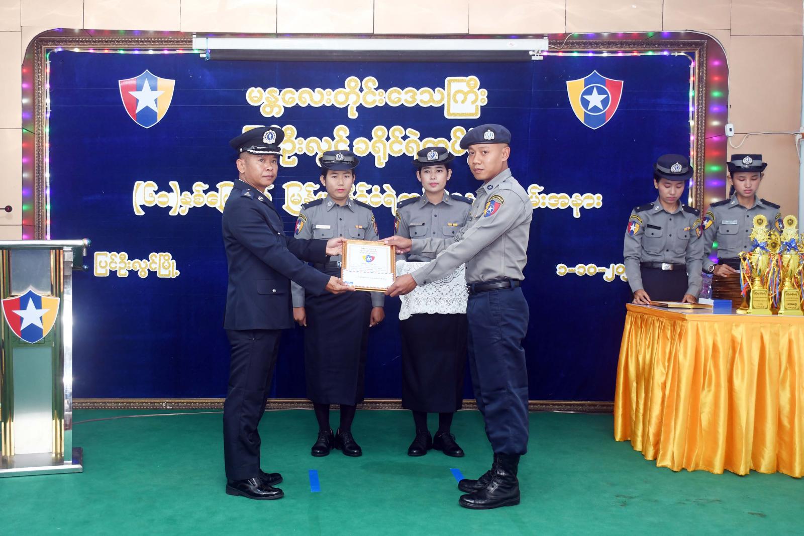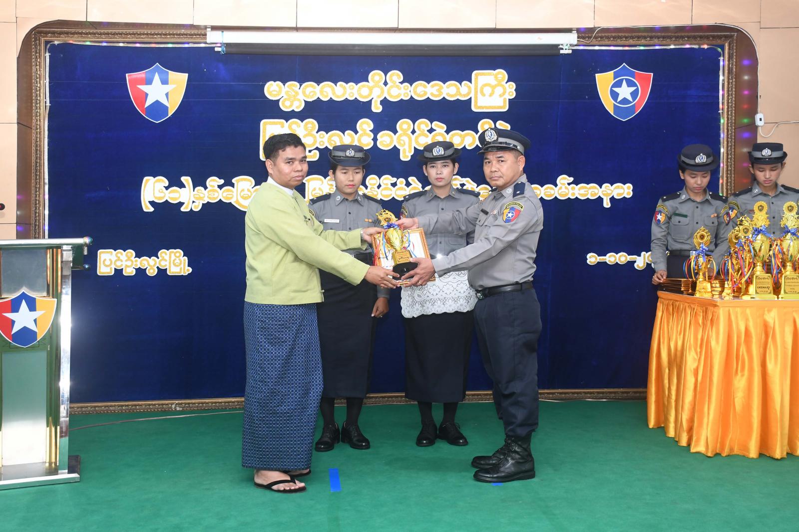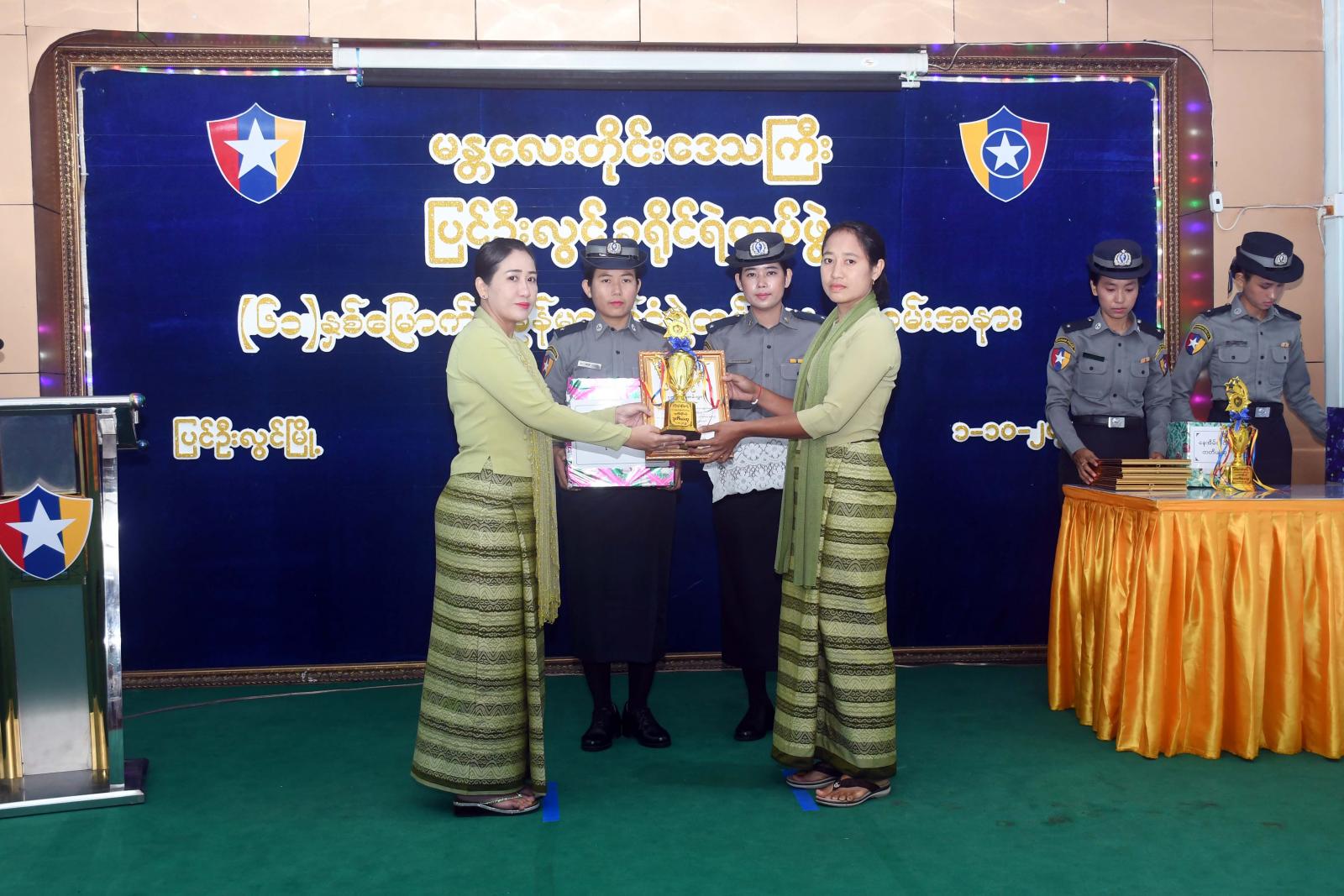 ဆက်လက်၍ ခရိုင်မိသားစုစည်းရုံးရေးနှင့် စည်းကမ်းထိန်းသိမ်းရေးဆိုင်ရာကော်မတီ ဥက္ကဋ္ဌနှင့် တာဝန်ရှိသူများက ခရိုင်မိသားစုစည်းရုံးရေးနှင့် စည်းကမ်းထိန်းသိမ်းရေး ဆိုင်ရာနှင့်ပတ်သက်သည့် ဆုများကို ရဲတပ်ဖွဲ့ဝင်ဇနီးများအား ပေးအပ်ချီးမြှင့်ကြောင်းသိရသည်။