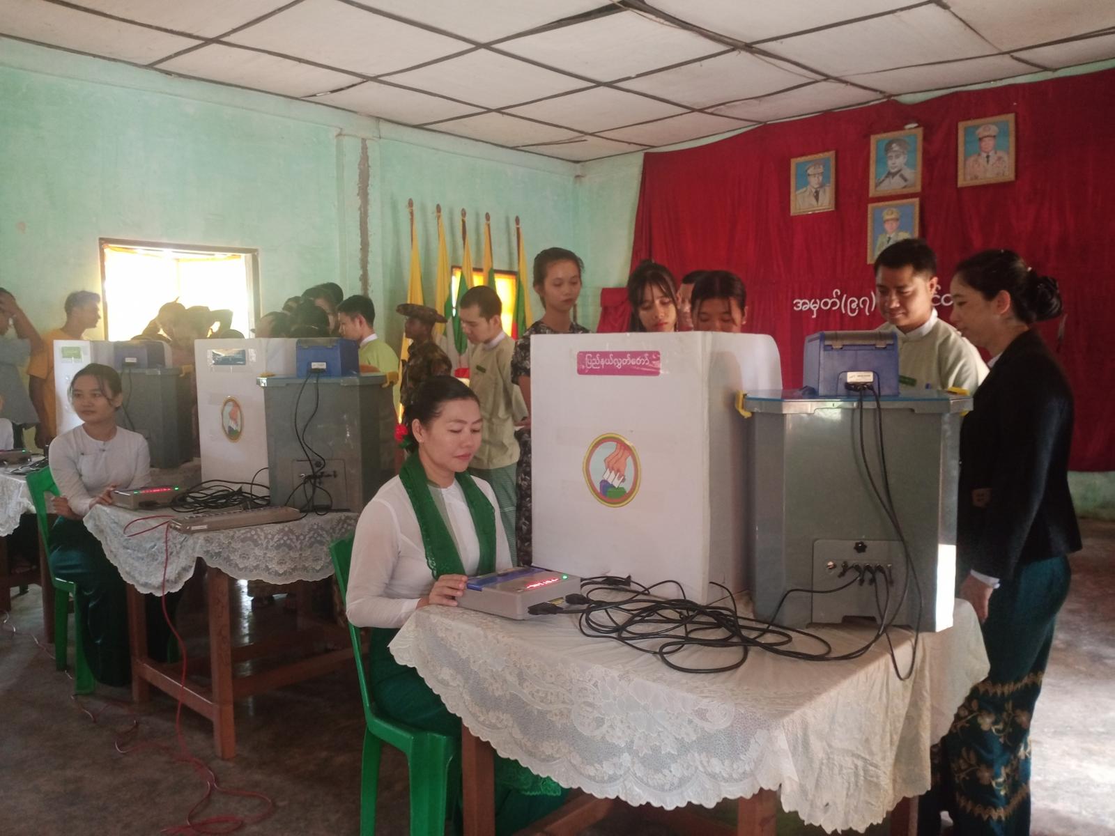 မြန်မာအီလက်ထရောနစ်မဲပေးစက်ဆိုင်ရာ အသိပညာပေးခြင်းနှင့် လက်တွေ့စမ်းသပ်မဲပေးခြင်း အခမ်းအနားကို ယမန်နေ့နံနက်ပိုင်းက ကော့ကရိတ်မြို့၊ အမှတ် (၉၇) ခြေလျင်တပ်ရင်း၌ ပြုလုပ်ကျင်းပခဲ့ရာ တပ်ရင်းမှူး၊ ခရိုင်/မြို့နယ်စီမံခန့်ခွဲရေးနှင့်အုပ်ချုပ်ရေးကော်မတီဥက္ကဋ္ဌနှင့်အဖွဲ့ဝင်များ၊ ခရိုင်/မြို့နယ် ရွေးကောက်ပွဲကော်မရှင်အဖွဲ့ခွဲမှ တာဝန်ရှိသူများ၊ သက်ဆိုင်ရာဌာနဆိုင်ရာများမှ ဝန်ထမ်းများ၊ တပ်နယ်အတွင်းရှိ တပ်ရင်းတပ်ဖွဲ့များမှ အရာရှိ/စစ်သည် မိသားစုဝင်များ တက်ရောက်ကြသည်။