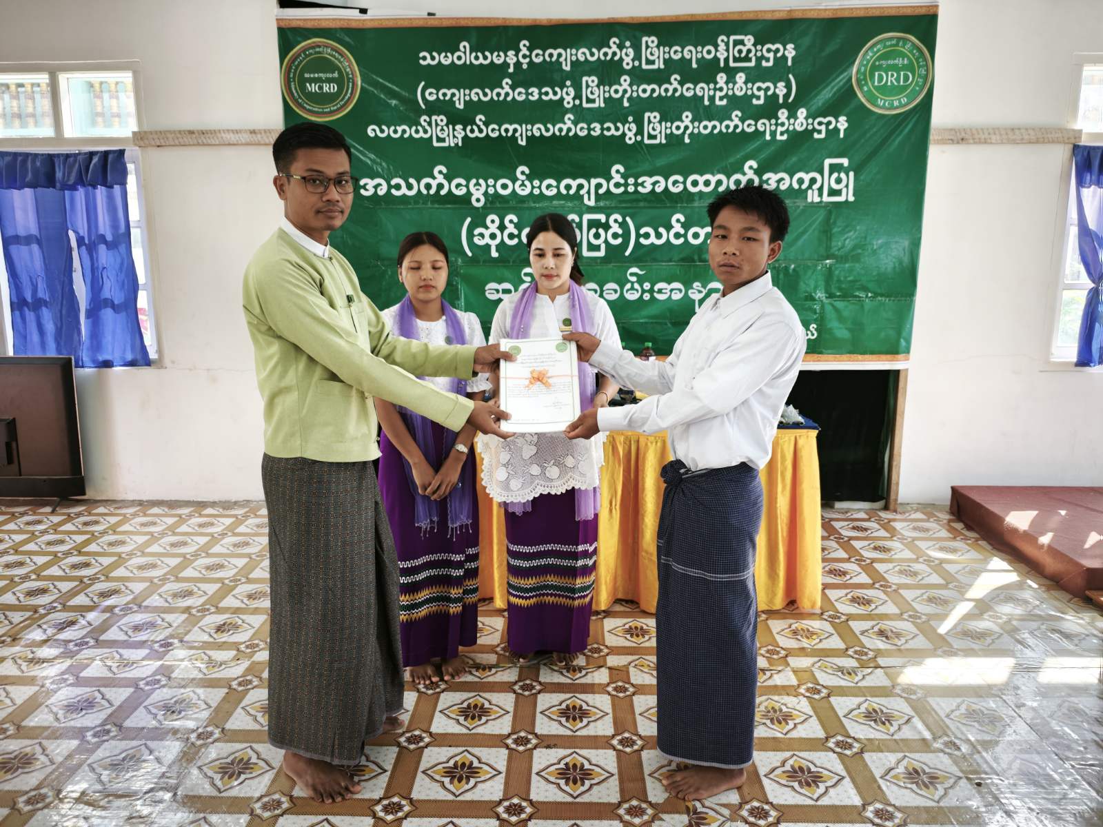 သင်တန်းထူးချွန်ဆုနှင့် လုပ်ငန်းသုံးပစ္စည်းများကို သင်တန်းသားများထံ ထောက်ပံ့ပေးအပ်ပါသည်။