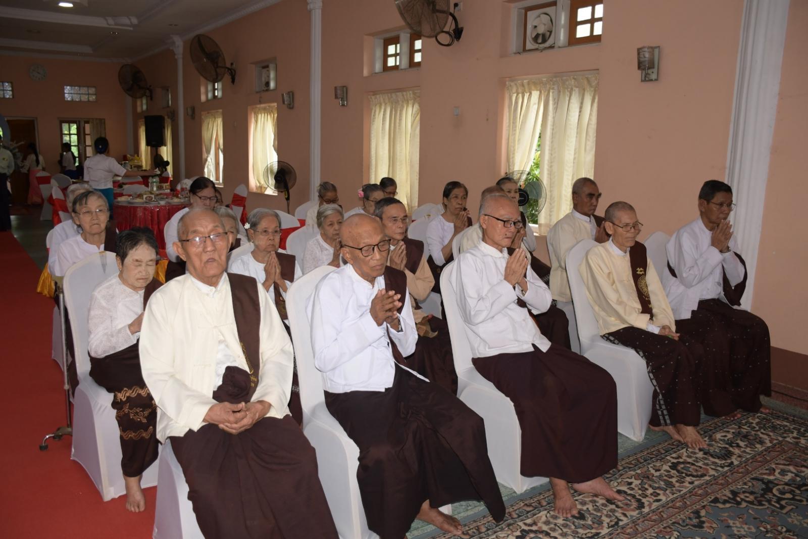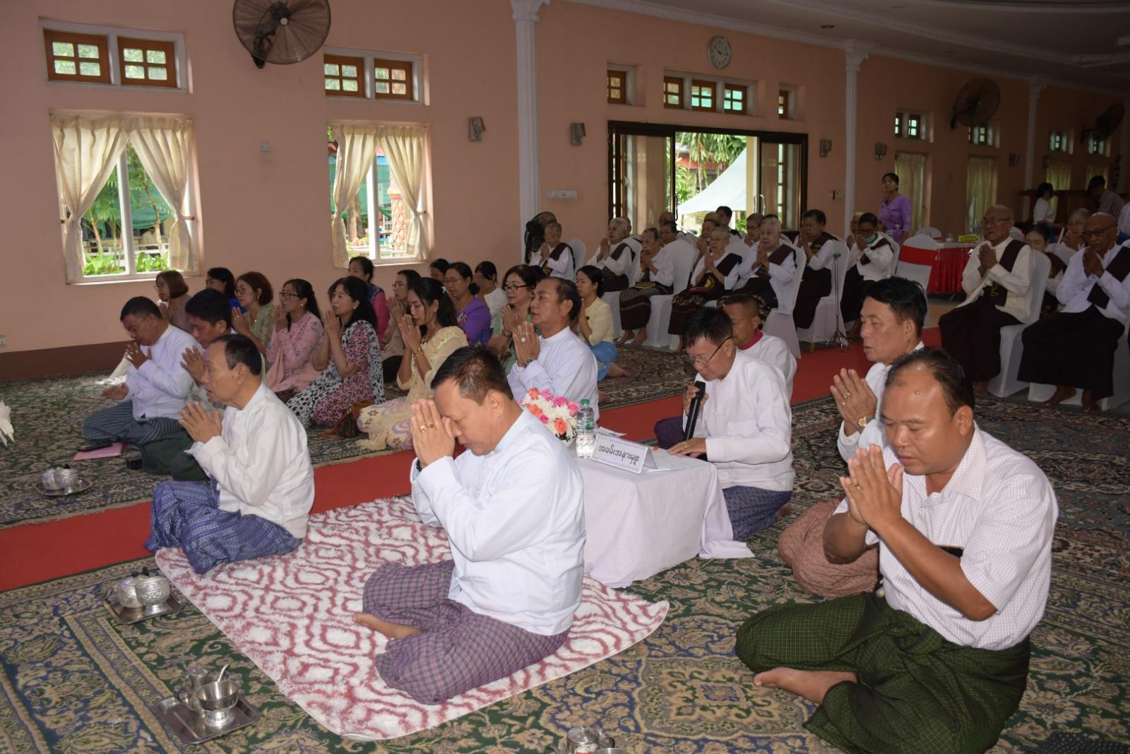 ဦးစွာ အခမ်းအနားအား နမောတဿ သုံးကြိမ်ဘုရားကန်တော့၍ ဖွင့်လှစ်ပြီး ကြာနီကန်စာသင်တိုက်နိုင်ငံတော်သြဝါဒါစရိယဆရာတော် ဘဒ္ဒန္တသူရိယမဟာထေရ်ထံမှ ငါးပါးသီလခံယူဆောက်တည်ကြ သည်။ ယင်းနောက် တောင်ငူခရိုင်အထွေထွေအုပ်ချုပ်ရေးဦးစီးဌာန၊ ဒုတိယခရိုင်အုပ်ချုပ်ရေးမှူး ဦးညီညီလွင်စိုး၊ ကေတုမတီဘိုးဘွားရိပ်သာ နာယက ဦးမြင့်ညို၊ ကေတုမတီဘိုးဘွားရိပ်သာကော်မတီ ဒုတိယဥက္ကဋ္ဌ ဦးဌေးလင်း၊ အတွင်းရေးမှူး ဦးယဥ်ဌေးနှင့် ကော်မတီဝင်များ၊ မြို့မိမြို့ဖများ၊ ဧည့်ပရိသတ်များက တောင်ငူမြို့ကျက်သရေဆောင် အောင်မြင်ဇေယျုံစာသင်တိုက်ဆရာတော်၊ ကြာနီကန်ဆရာတော်၊ မရမ်းကျောင်းစာသင်တိုက်ဆရာတော်၊ မြစည်းခုံစာသင်တိုက်ဆရာတော်တို့အား ဝတ္တုငွေများ ဆက်ကပ်လှူဒါန်းသည်။ ယင်းနောက် သံဃာတော်အရှင်မြတ်များထံမှ အန္တရာယ်ကင်း ပရိတ်တရားတော်နှင့် အနုမောဒနာ တရားတော် နာယူကြည်ညိုကာ ရေစက်သွန်းချအမျှပေးဝေ၍ အဘိုးအဘွားများအား ပူဇော်ကန်တော့ခဲ့ကြောင်း သိရသည်။