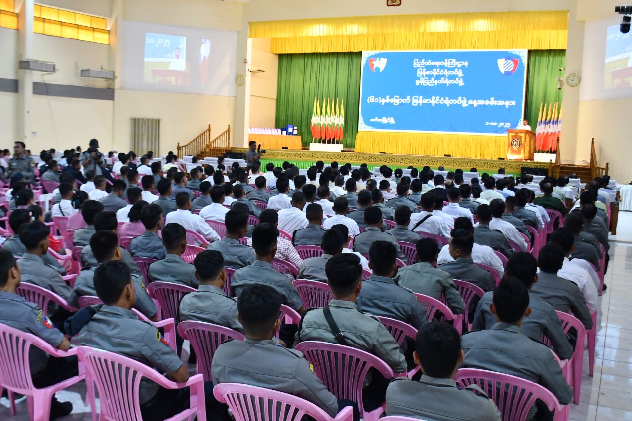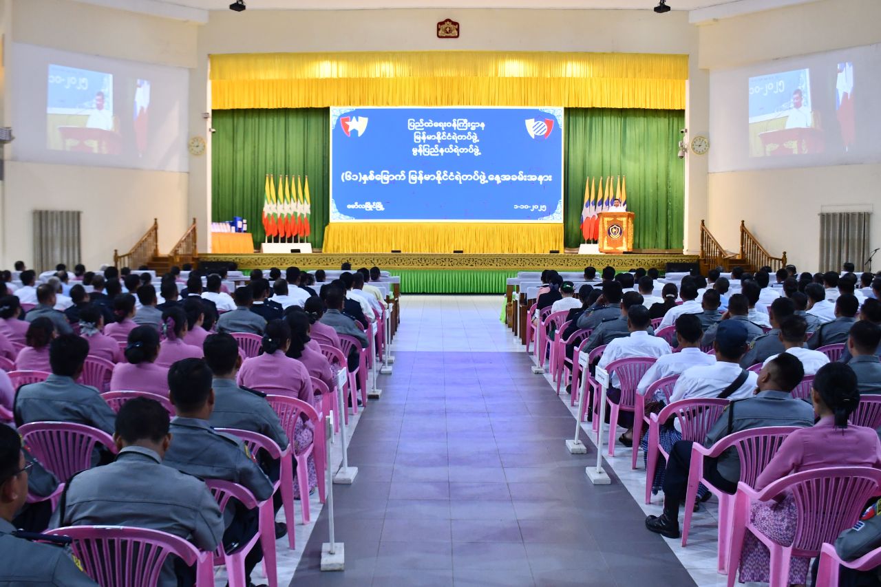 ဦးစွာ အခမ်းအနားတွင် ပြည်နယ်ဝန်ကြီးချုပ်က ပြည်တွင်း တည်ငြိမ်အေးချမ်းရေးနဲ့ တရားဥပဒေစိုးမိုးရေးကို တပ်မတော်နဲ့အတူ လက်တွဲပူးပေါင်းဆောင်ရွက်ရမှာဖြစ်သလို ပြစ်မှုတွေ မဖြစ်ပွားအောင်ကြိုတင်ကာကွယ်ရေးလုပ်ငန်းတွေကိုလည်း ဒေသခံပြည်သူတွေနဲ့ ပေါင်းစပ်ပြီး ပြည်သူလူထုပူးပေါင်းပါဝင်တဲ့ ရဲလုပ်ငန်းစနစ်ကို အလေးထားဆောင်ရွက်သွားဖို့ မှာကြားလိုကြောင်း၊ မြန်မာနိုင်ငံရဲတပ်ဖွဲ့ဝင်များအနေဖြင့် တပ်ဖွဲ့ဝင်ကောင်းတွေဖြစ်အောင် နေထိုင်ကျင့်ကြံ လုပ်ဆောင်သွားရန်နှင့် အမိနိုင်ငံတော်နဲ့ ရဲတပ်ဖွဲ့အတွက် ပေးအပ်တဲ့တာဝန်တွေကို ဦးလည်မသုန် အစဉ်ကြိုးပမ်းဆောင်ရွက်သွားကြရန်ဖြင့် အမှာစကားပြောကြားခဲ့သည်။