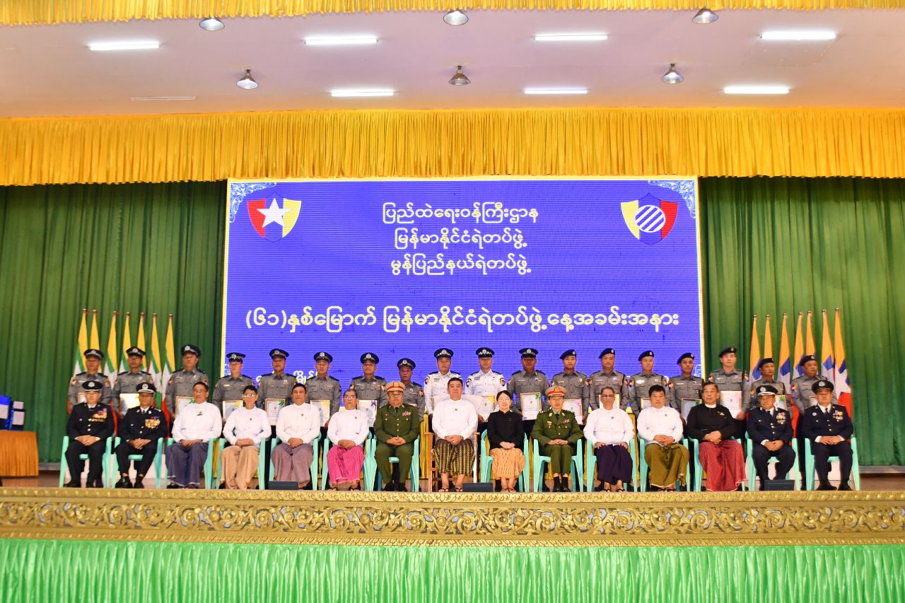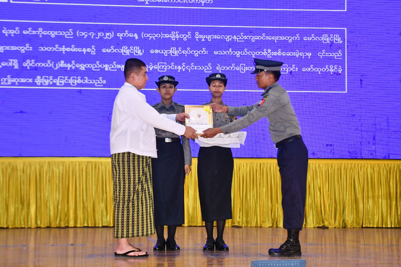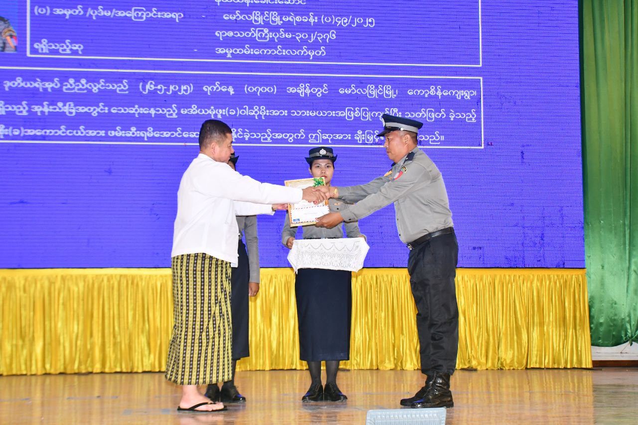 ထို့နောက် (၆၁)နှစ်မြောက် မြန်မာနိုင်ငံရဲတပ်ဖွဲ့နေ့အတွက် မြန်မာနိုင်ငံရဲတပ်ဖွဲ့ ရဲချုပ်မှပေးပို့သော သဝဏ်လွှာအား မွန်ပြည်နယ်ရဲတပ်ဖွဲ့မှူး ရဲမှူးကြီး ထွန်းအောင်ကျော်မှ ဖတ်ကြားခဲ့ပြီး ပြည်နယ်ဝန်ကြီးချုပ်၊ ပြည်နယ်တရားလွှတ်တော် တရားသူကြီးချုပ်နှင့် ပြည်နယ်ဝန်ကြီးတို့က (၆၁)နှစ်မြောက် မြန်မာနိုင်ငံရဲတပ်ဖွဲ့နေ့အထိမ်းအမှတ် မွန်ပြည်နယ် ရဲတပ်ဖွဲ့ဝင်များအား အမှုထမ်းကောင်းလက်မှတ်များ အသီးသီး ပေးအပ်ချီးမြှင့်ခဲ့ကြသည်။