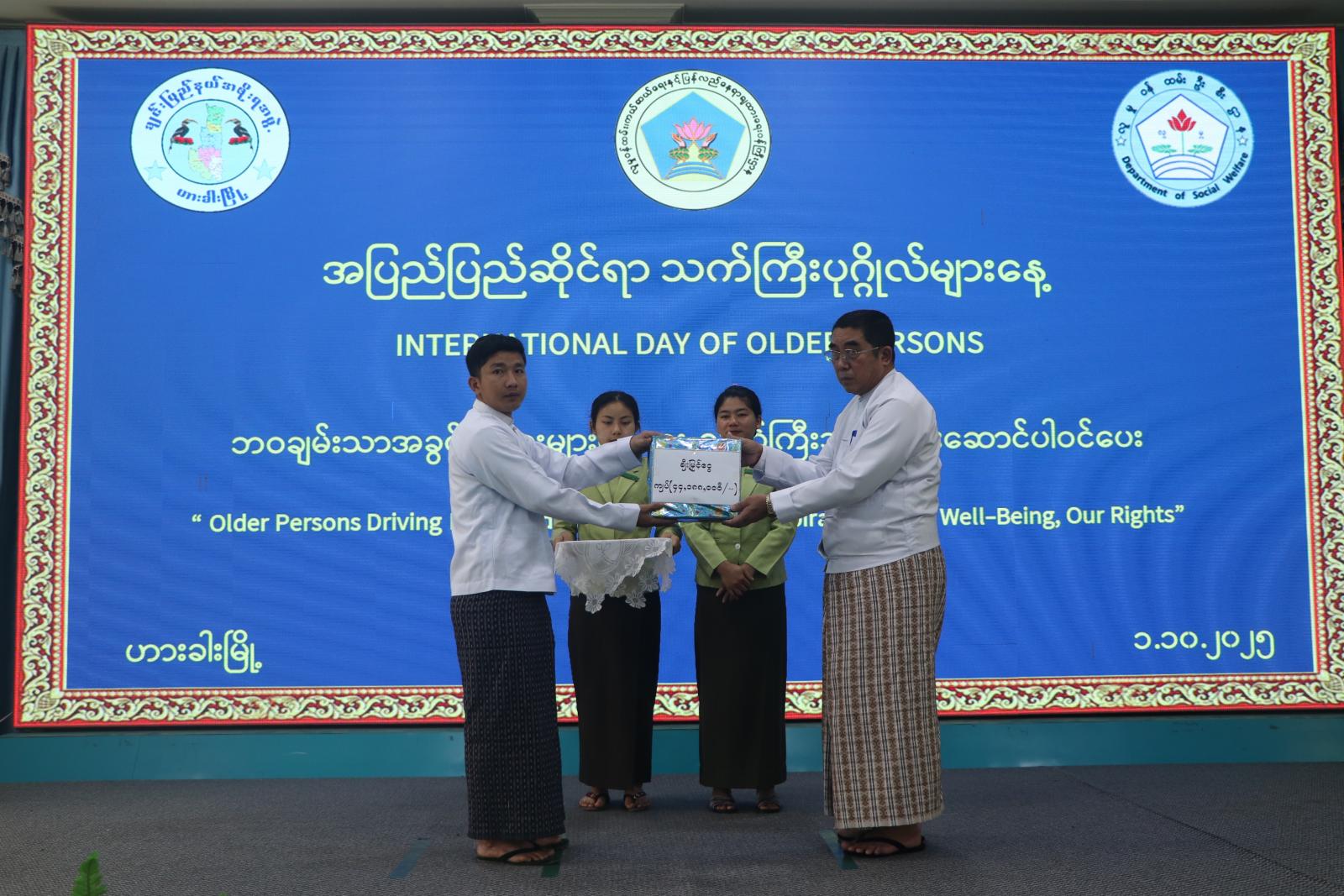 အပြည်ပြည်ဆိုင်ရာ သက်ကြီးပုဂ္ဂိုလ်များနေ့အထိမ်းအမှတ်အခမ်းအနားကို ဟားခါးမြို့၊ ချင်းပြည်နယ်အစိုးရအဖွဲ့ရုံးရှိ ပြည်နယ်အထွေထွေအုပ်ချုပ်ရေးဦးစီးဌာန အစည်းအဝေးခန်းမ၌ အောက်တိုဘာလ ၁ ရက်နေ့ မွန်းလွဲ ၁ နာရီက ကျင်းပရာ ချင်းပြည်နယ်ဝန်ကြီးချုပ် ဒေါက်တာဝုန်ဆွန်းထန်နှင့် ပြည်နယ်အမျိုးသမီးရေးရာအဖွဲ့နာယက ပြည်နယ်ဝန်ကြီးချုပ်၏ ဇနီး၊ ပြည်နယ်တရားလွှတ်တော်တရားသူကြီးချုပ်၊ ပြည်နယ်ဝန်ကြီးများ၊ ပြည်နယ်ဥပဒေချုပ်နှင့် ၎င်းတို့၏ ဇနီးများ၊ ပြည်နယ်အဆင့်ဌာနဆိုင်ရာတာဝန်ရှိသူများ၊ ပြည်နယ်၊ ခရိုင်၊ မြို့နယ်အမျိုးသမီးရေးရာ အဖွဲ့ဝင်များနှင့် အသက် (၈၅)နှစ်နှင့်အထက်ရှိ သက်ကြီးပုဂ္ဂိုလ်များ တက်ရောက်ကြသည်။