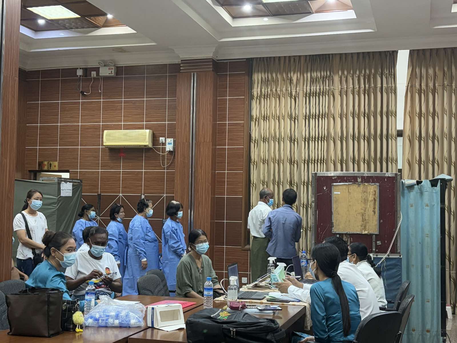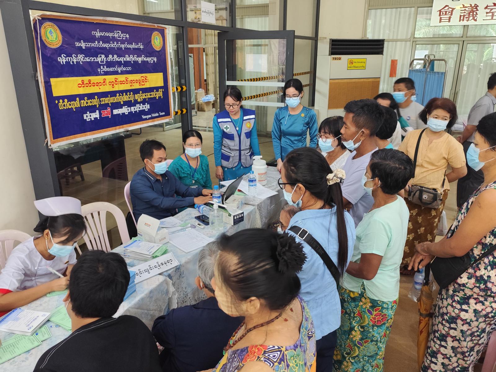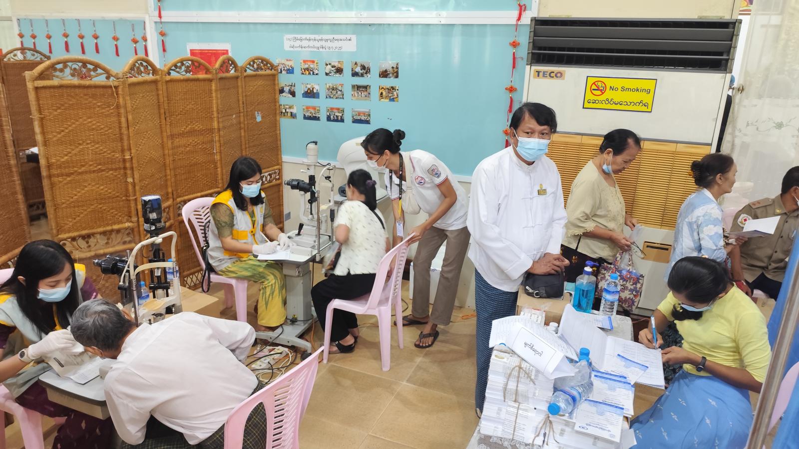 ရန်ကုန်တိုင်းဒေသကြီး၊ မရမ်းကုန်းခရိုင်၊ လှိုင်မြို့နယ်တွင် ကျန်းမာရေးဝန်ကြီးဌာန၏ ဦးဆောင်လမ်းညွှန်မှုဖြင့် ရန်ကုန်ပြည်သူ့ဆေးရုံကြီးမှ အထူးကုဆရာဝန်ကြီးများအဖွဲ့သည် ယမန်နေ့ နံနက်(၈)နာရီခွဲအချိန်က (၁၂) ရပ်ကွက်၊ အောင်ဓမ္မရိပ်သာလမ်း၊ လှိုင်မင်္ဂလာခန်းမ၌ ရပ်ကွက်နေပြည်သူများအား(အခမဲ့)ကွင်းဆင်းကုသပေးခဲ့ကြောင်း သိရသည်။