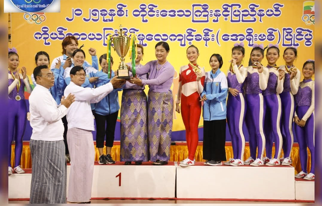 ၂၀၂၅ ခုနှစ်၊ တိုင်းဒေသကြီးနှင့်ပြည်နယ် အမျိုးသမီး ကိုယ်ကာယကြံ့ခိုင်မှုလေ့ကျင့်ခန်း (အေရိုးဗစ်) ပြိုင်ပွဲဆုချီးမြှင့်ခြင်းအခမ်းအနားကို ယမန်နေ့နံနက် ၈ နာရီခွဲအချိန်တွင် ရန်ကုန်တိုင်းဒေသကြီး၊ ဝေဇယန္တာလမ်းရှိ အမျိုးသားအားကစားပြိုင်ပွဲရုံ(၁) သုဝဏ္ဏ၌ ကျင်းပပြုလုပ်ရာ ရန်ကုန်တိုင်းဒေသကြီး အားကစားနှင့် ကာယပညာကော်မတီ နာယက ရန်ကုန်တိုင်းဒေသကြီး အစိုးရအဖွဲ့ ဝန်ကြီးချုပ်ဦးစိုးသိန်း၊ မြန်မာနိုင်ငံအိုလံပစ်ကော်မတီဒုတိယဥက္ကဋ္ဌ အားကစားနှင့် လူငယ်ရေးရာဝန်ကြီးဌာန ဒုတိယဝန်ကြီးဦးထိန်လင်း၊ ရန်ကုန်တိုင်းဒေသကြီးအစိုးရအဖွဲ့ဝင် ဝန်ကြီးများ၊ ရန်ကုန်တိုင်းဒေသကြီး အစိုးရအဖွဲ့ ဝန်ကြီးချုပ်၏ဇနီးနှင့် အစိုးရအဖွဲ့ဝင် ဝန်ကြီးများ၏ ဇနီးများ၊ အားကစားနှင့် လူငယ်ရေးရာဝန်ကြီးဌာနမှ ဒုတိယအမြဲတမ်း အတွင်းဝန်နှင့် တာဝန်ရှိသူများ၊ မြန်မာနိုင်ငံအမျိုးသမီး အားကစားအဖွဲ့ချုပ်ဥက္ကဋ္ဌ၊ ဒုတိယဥက္ကဋ္ဌများနှင့် တာဝန်ရှိသူများ၊ ဌာနဆိုင်ရာများမှတာဝန်ရှိပုဂ္ဂိုလ်များ၊ ဖိတ်ကြားထားသောဧည့်သည်တော်များ၊ ဆုရအားကစားသမားများ တက်ရောက်ခဲ့ကြသည်။