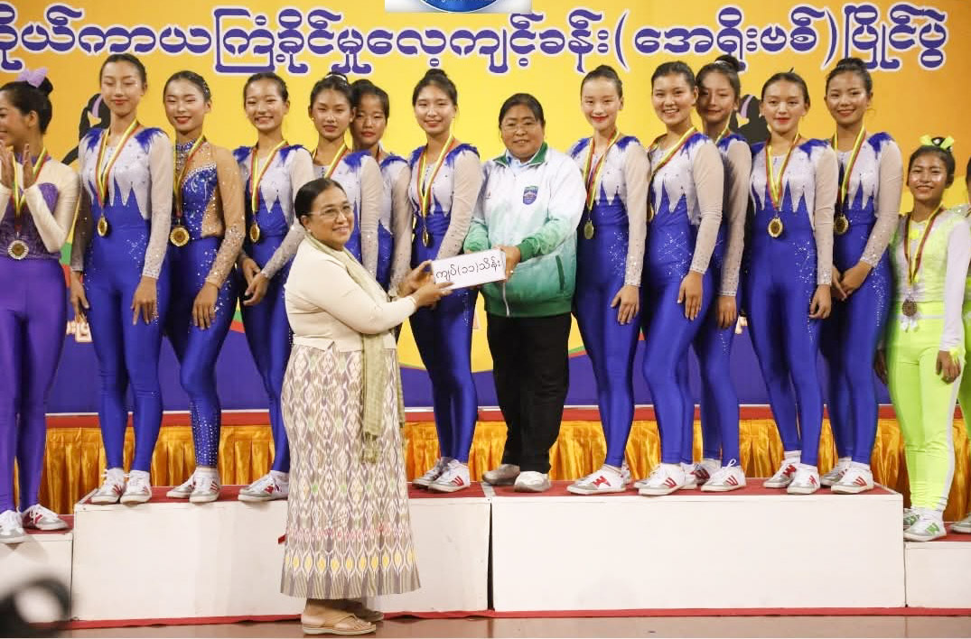 ဦးစွာဗိုလ်လုပွဲအဖြစ် တစ်ဦးချင်းပြိုင်ပွဲများအပြီးတွင် ၂၀၂၅ ခုနှစ်တိုင်းဒေသကြီးနှင့်ပြည်နယ် အမျိုးသမီးကိုယ်ကာယ ကြံ့ခိုင်းမှုလေ့ကျင့်ခန်း(အေရိုးဗစ်)ပြိုင်ပွဲတွင် အဖက်ဖက်မှ ဝိုင်းဝန်းကူညီပံ့ပိုး လှူဒါန်းပေးခဲ့သော အလှူရှင်များအား အမှတ်တရဂုဏ်ပြုဆုနှင့် (Trophy) များကို အဖွဲ့ချုပ်ဥက္ကဋ္ဌနှင့်ဒုတိယဥက္ကဋ္ဌတို့က ပေးအပ်ခဲ့သည်။