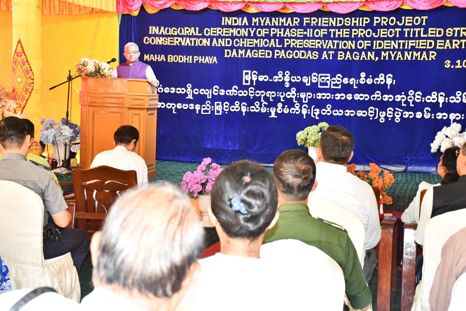 ၂၀၁၆ ခုနှစ် ငလျင်ဒဏ်ကြောင့် ထိခိုက်ခဲ့ရသော ပုဂံဒေသရှိ ရှေးဟောင်းအဆောက်အအုံ (၇၂)ဆူအား အဆောက်အအုံပိုင်းဆိုင်ရာ ကြံ့ခိုင်ထိန်းသိမ်းခြင်းနှင့် နံရံပန်းချီနှင့်အင်္ဂတေပန်းတော့ဆိုင်ရာ ကြံ့ခိုင်ထိန်းသိမ်းခြင်းလုပ်ငန်းများကို အိန္ဒိယနိုင်ငံ အစိုးရထောက်ပံ့မှုများဖြင့် Archaeology Survey of India (ASI)အဖွဲ့က ရှေးဟောင်းသုတေသနနှင့် အမျိုးသားပြတိုက်ဦးစီးဌာန၊ ပုဂံဌာနခွဲနှင့် ပူးပေါင်း၍ ၂၀၂၀ခုနှစ်မှ စတင်ဆောင်ရွက်ခဲ့ရာ ပထမအဆင့် (၁၁)ဆူ လုပ်ငန်းအားဖြင့် ၂၂ခု ကို ရာနှုန်းပြည့်ဆောင်ရွက်ပြီးဖြစ်ရာ အောက်တိုဘာ ၃ ရက်နေ့ မွန်းလွဲ ၂ နာရီခွဲအချိန်တွင် မြန်မာ-အိန္ဒိယချစ်ကြည်ရေးစီမံကိန်း ပုဂံဒေသရှိ ငလျင်ဒဏ်သင့်ဘုရားပုထိုးများ အဆောက်အဦ ထိန်းသိမ်းခြင်းနှင့် ဓာတုဗေဒနည်းဖြင့်ထိန်းသိမ်းမှု(ဒုတိယအဆင့်)ဖွင့်ပွဲအခမ်းအနားကျင်းပခဲ့သည်။