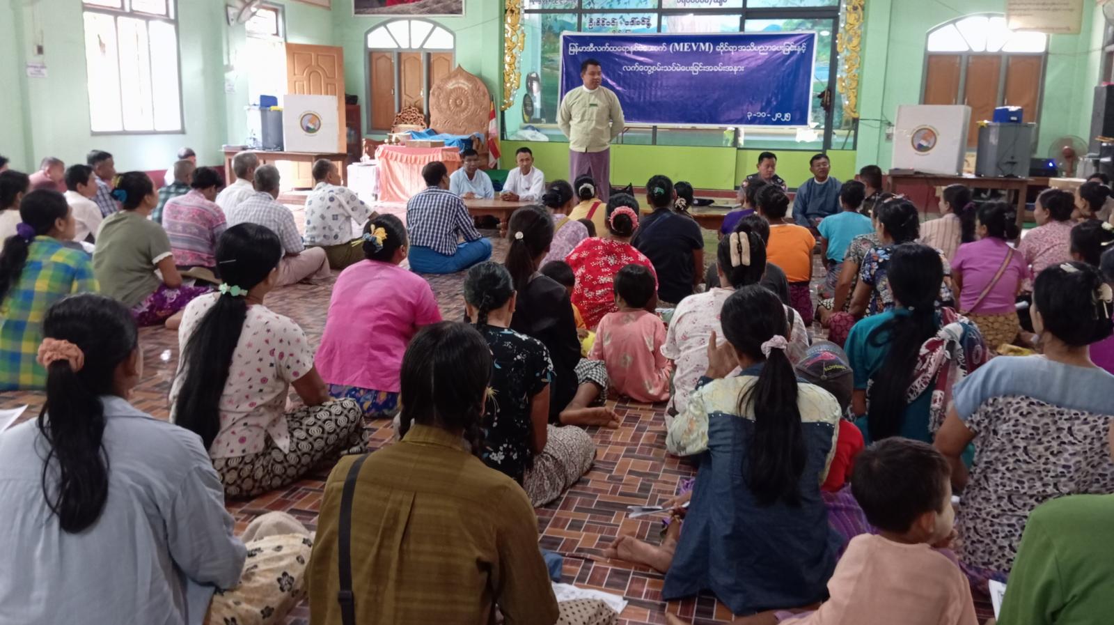 ထို့နောက် တက်ရောက်လာကြသည့် ပြည်သူများက လက်တွေ့စမ်းသပ်မဲပေးခြင်းများ ဆောင်ရွက်ခဲ့ကြပြီး သိရှိလိုသည်များကိုမေးမြန်းကြရာ တာဝန်ရှိသူများက ပြန်လည်ရှင်းလင်းခဲ့ပြီးနောက် နိုင်ငံသားအခွင့်အရေးမဆုံးရှုံးဖို့ မဲပေးကြစို့ အသိပညာပေးလက်ကမ်းစာစောင်များ ဖြန့်ဝေပေးခဲ့ကြသည်။