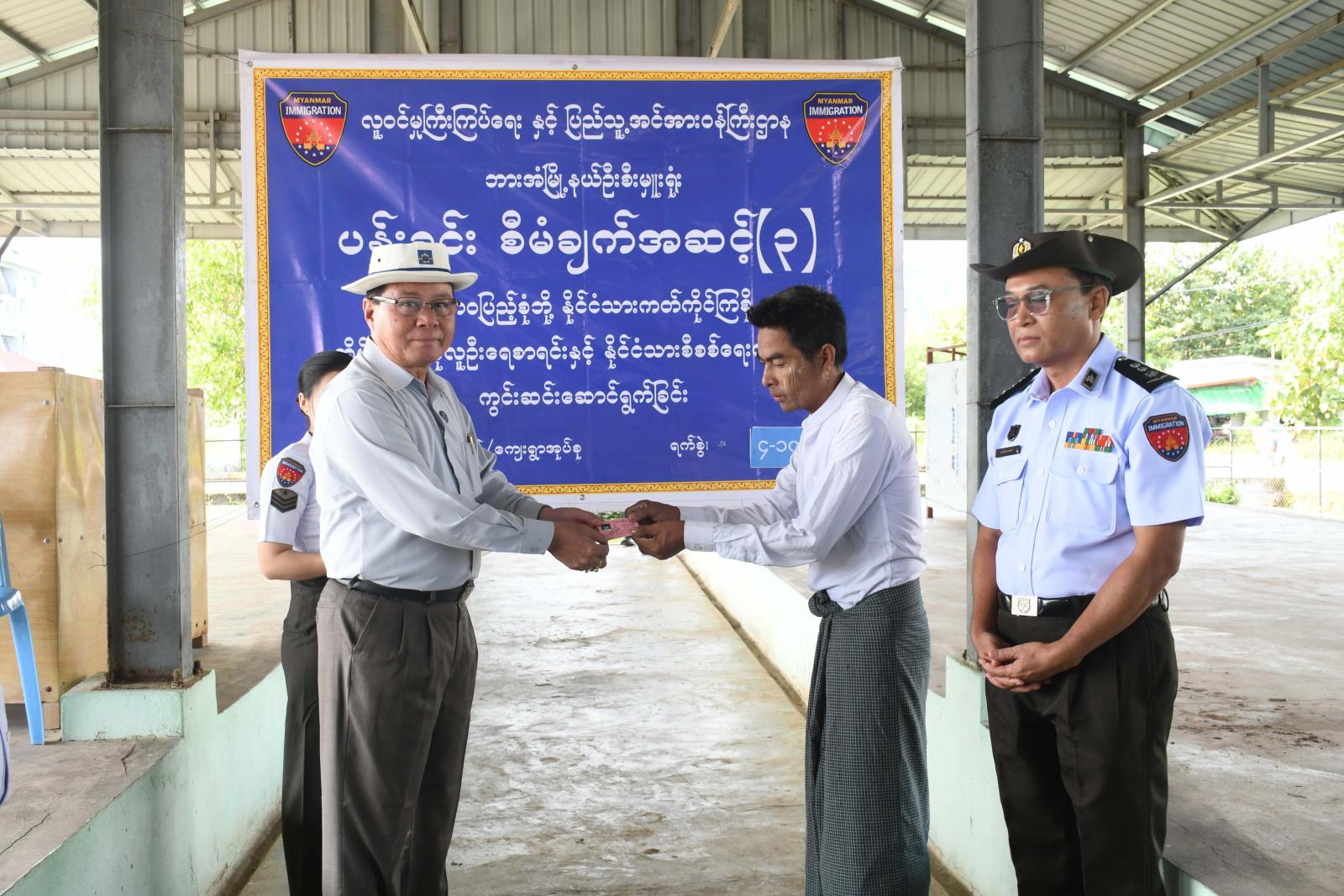 ပြည်နယ်ဝန်ကြီးချုပ်နှင့်အဖွဲ့သည် ယာယီနေရပ်စွန့်ခွာပြည်သူများက မိမိတို့ရောက်ရှိရာအရပ်တွင် ဆန္ဒမဲပေးနိုင်ရေး မဲစာရင်းတွင်ထည့်သွင်းပေးပါရန် ပုံစံ(၃-က)ဖြင့် လျှောက်လွှာရေးသွင်း တောင်းဆိုမှု၊ နိုင်ငံသားစိစစ်ရေးကတ်ပြားနှင့် UID စမတ်ကတ်များဆောင်ရွက်ပေးနေမှုများကို ကြည့်ရှုအားပေးပြီး ပြည်နယ်ဝန်ကြီးချုပ်နှင့်တာဝန်ရှိသူများက နိုင်ငံသားစိစစ်ရေးကတ်များကို လက်ဝယ်အရောက်ပေးအပ်ချီးမြှင့်ခဲ့ကြသည်။