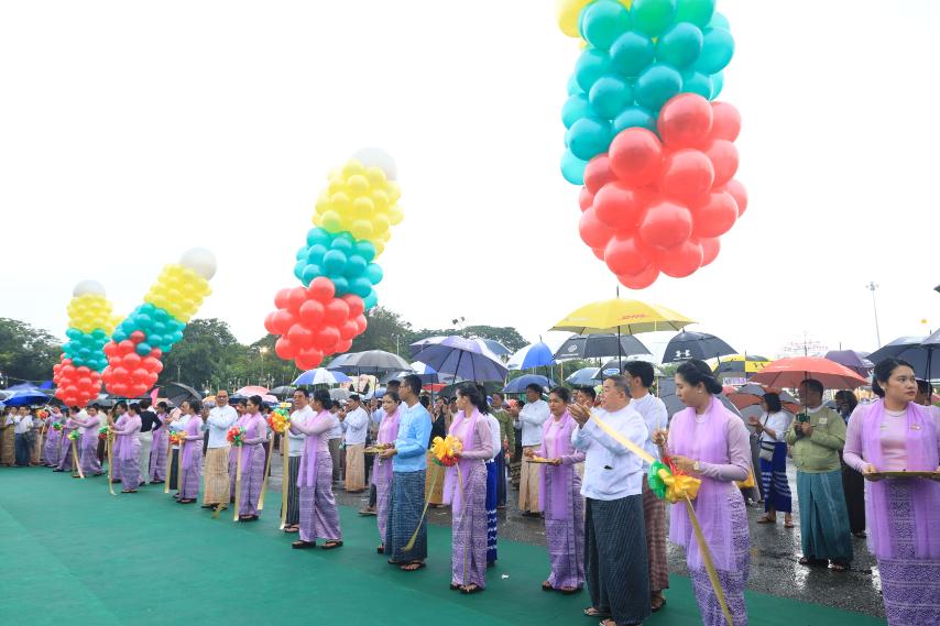 ရန်ကုန်တိုင်းဒေသကြီး ၂၀၂၅ခုနှစ် သီတင်းကျွတ်ဈေးရောင်းပွဲတော်နှင့် ဂီတဖျော်ဖြေပွဲ ဖွင့်ပွဲ အခမ်းအနားကို ယနေ့နံနက်ပိုင်းက ရန်ကုန်မြို့၊ ပြည်သူ့ရင်ပြင်တွင် ကျင်းပရာ ရန်ကုန်တိုင်းဒေသကြီး ဝန်ကြီးချုပ် ဦးစိုးသိန်း၊ ရန်ကုန်တိုင်းဒေသကြီး တရားလွှတ်တော် တရားသူကြီးချုပ် ဒေါ်စန္ဒာသွယ်၊ ရန်ကုန်တိုင်းစစ်ဌာနချုပ် ဒုတိယတိုင်းမှူး ဗိုလ်မှူးချုပ် ထွန်းထွန်းဦး၊ တိုင်းဒေသကြီး အစိုးရအဖွဲ့ဝင်များ၊ ဌာနဆိုင်ရာ တာဝန်ရှိသူများ၊ UMFCCIနှင့် ညီနောင်အသင်းများမှ တာဝန်ရှိသူများ၊ စက်မှုဇုန်အသီးသီးမှ တာဝန်ရှိသူများ၊ စက်မှုလုပ်ငန်းရှင်များ၊ MSME လုပ်ငန်းရှင်များ၊ အသေးစား စက်မှု လက်မှုလုပ်ငန်းရှင်များ၊ MSME by G3G Appမှ တာဝန်ရှိသူများ၊ Weday Online Appမှ တာဝန်ရှိသူများနှင့် တိုင်းရင်းသား၊ တိုင်းရင်းသူများနှင့် တာဝန်ရှိသူများ တက်ရောက်ကြသည်။