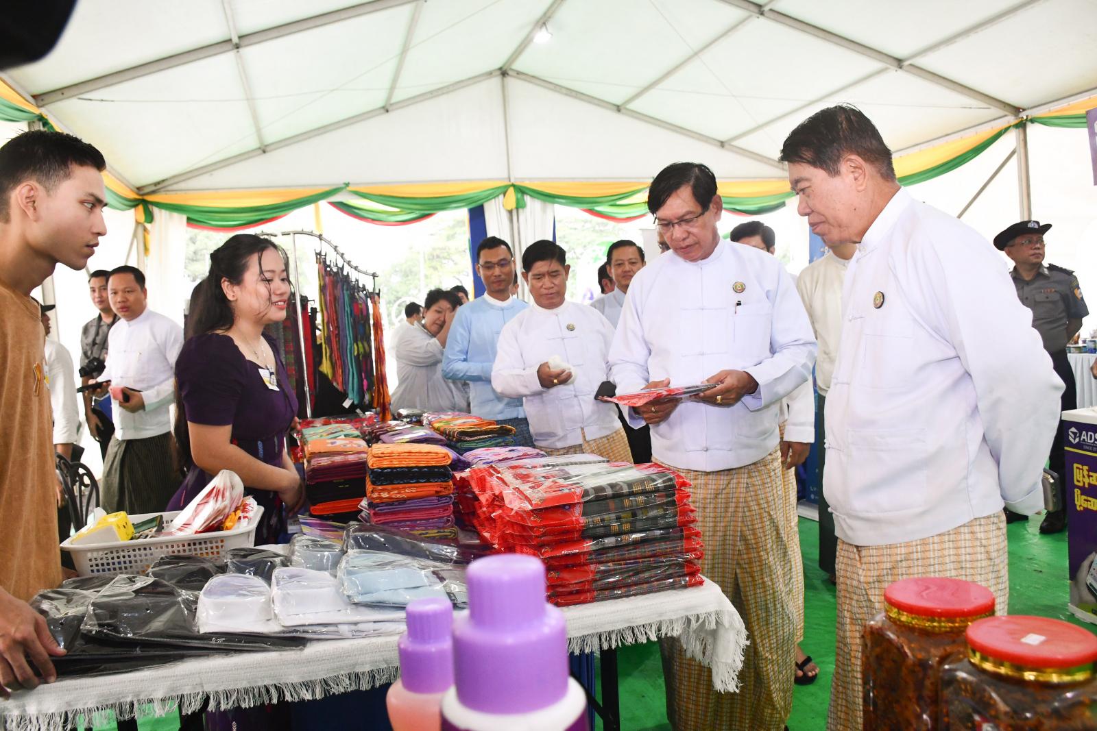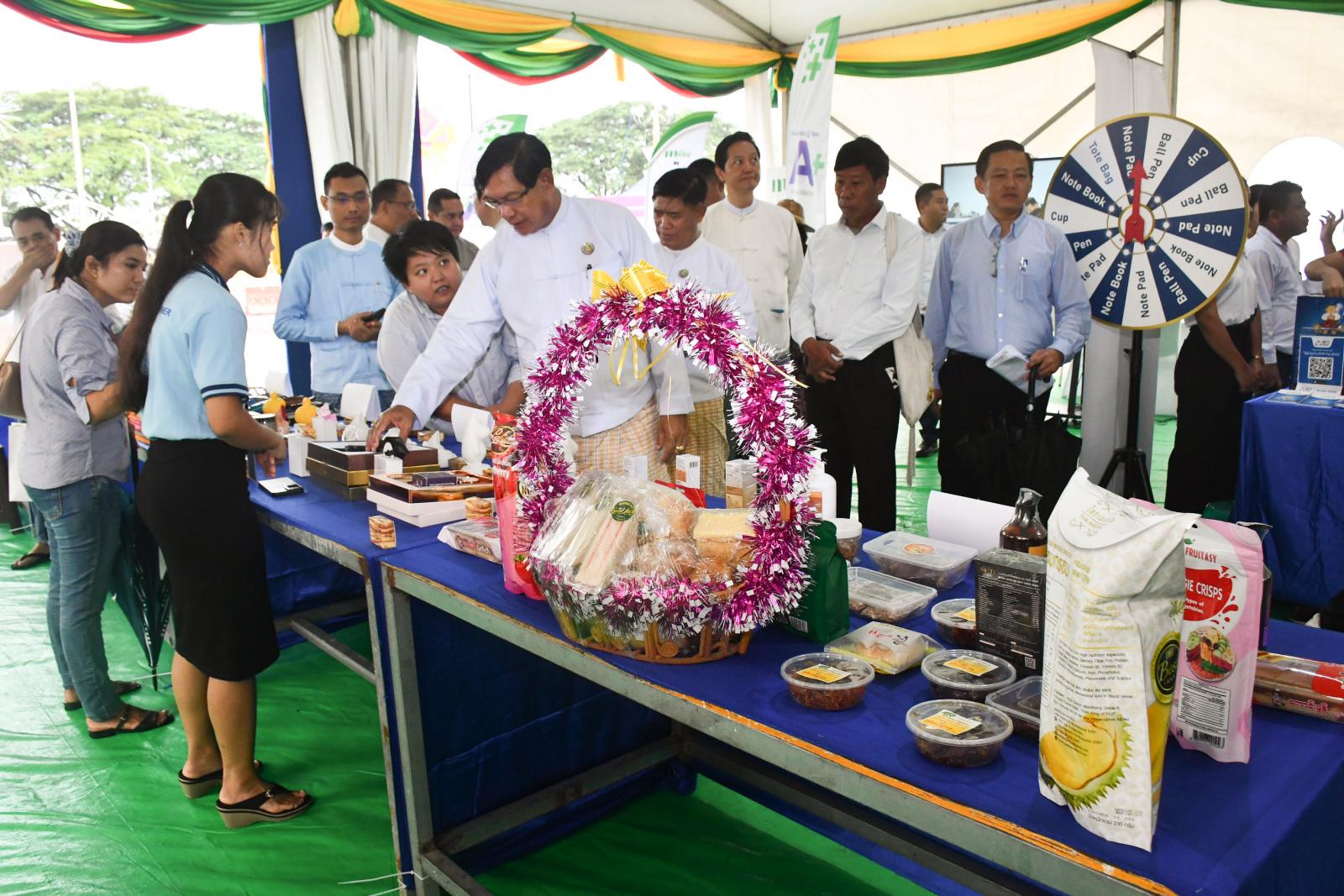 ယင်းနောက် ရန်ကုန်တိုင်းဒေသကြီး ဝန်ကြီးချုပ် ဦးစိုးသိန်းနှင့် တာဝန်ရှိသူများက ဈေးဆိုင်ခန်းများ မြန်မာ့ရိုးရာယဥ်ကျေးမှု သနပ်ခါးလိမ်းခြယ်မှုပြခန်းနှင့် ရန်ကုန်တိုင်းဒေသကြီးအစိုးရအဖွဲ့တိုက်ရိုက် စေ့ချကိရိယာ(Drum Seeder) စက် ကိရိယာများအား လှည့်လည်ကြည့်ရှုအားပေးကြသည်။