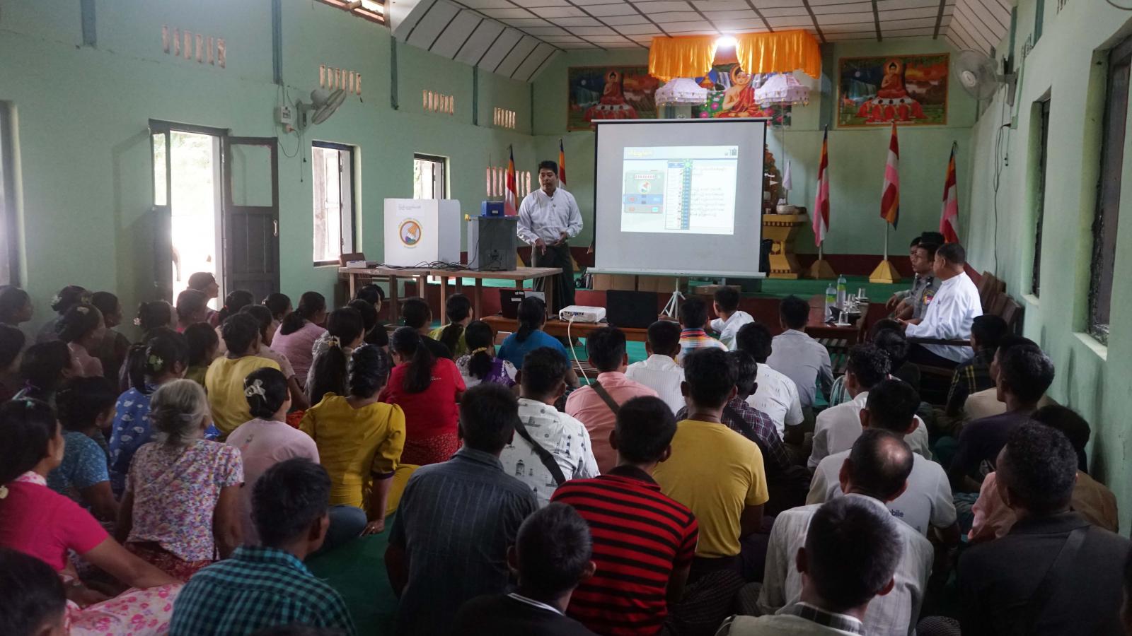 ထိုသို့ အသိပညာပေးဆောင်ရွက်ရာတွင် ပုလောမြို့နယ် ရွေးကောက်ပွဲကော်မရှင်အဖွဲ့ခွဲရုံး၊ ရွေးကောက်ပွဲအရာရှိ ဦးကျော်လွင်က မြန်မာအီလက်ထရောနစ်(MEVM)စနစ်ဖြင့် အသုံးပြု၍ မဲပေးရခြင်း၏ ရည်ရွယ်ချက်၊ မဲပေးစက်ဖွဲ့စည်းတည်ဆောက်ပုံနှင့် ပါဝင်သည့် ဆက်စပ်ပစ္စည်းများ၊ မဲပေးစက်များကို ကိုင်တွယ်အသုံးပြုခြင်း၊ မဲရလဒ်များ၊ မဲပေးစက်အသုံးပြုခြင်း၏ အကျိုးကျေးဇူးများကို ရှင်းလင်းပြောကြားခဲ့သည်။