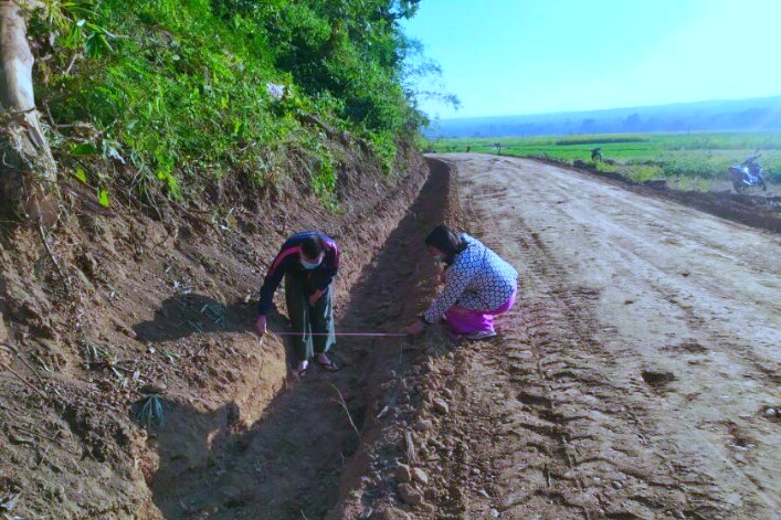 အဆိုပါ ကျေးလက်ကုန်ထုတ်လမ်းနှင့်ကွန်ကရစ်တံတားကို ထီးလင်းမြို့နယ် ကျေးလက်ဒေသ ဖွံ့ဖြိုးတိုးတက် ရေးဦးစီးဌာန၏ ၂၀၂၀-၂၀၂၁ ဘဏ္ဍာရေးနှစ်၊ ခွင့်ပြုရန်ပုံငွေကျပ်(၃၆ ဒဿမ ၆) သန်းဖြင့် တင်ဒါအောင်မြင် သည့် ငွေယွန်းစံကုမ္ပဏီက တာဝန်ယူ အကောင် အထည်ဖော် ဆောင်ရွက်လျက်ရှိရာ လမ်းမှာ အရှည် (၁)မိုင် (၃)ဖာလုံရှိပြီး အကျယ်(၁၂)ပေ၊ထု (၉)လက်မရှိ မြေနီကျောက်စရစ် ခင်းခြင်းနှင့် (၁၅×၁၄×၆)ပေ ရှိ ကွန်ကရစ်တံတား တည်ဆောက်ခြင်း လုပ်ငန်းများကို မြို့နယ် ကျေးလက်ဒေသဖွံ့ဖြိုးတိုးတက်ရေးဦးစီးဌာန မှ အငယ်တန်းအင်ဂျင်နီယာ(၂) ဦးကံချွန်၊ အငယ်တန်းအင်ဂျင်နီယာ(၃)ဒေါ်ဝေနွယ် တို့က ကွင်းဆင်း စစ်ဆေးကြကာ လုပ်ငန်းများ သတ်မှတ်စံချိန်စံညွှန်းများနှင့်အညီ သတ်မှတ်ကာလ အချိန်မီတည်ဆောက် ပြီးစီး နိုင်ရေးတို့ကို တာဝန် ရှိသူများနှင့်ဆွေးနွေးခဲ့ကြသည်။