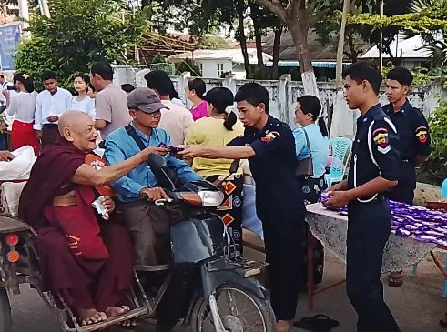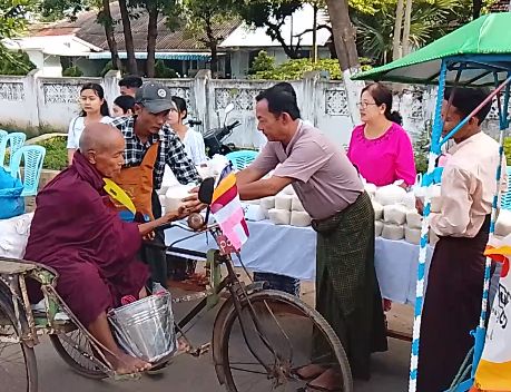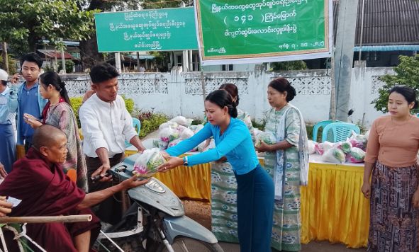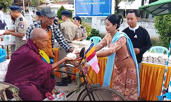 ထိုသို့ မြို့လုံးကျွတ် ဆွမ်းလောင်းလှူဒါန်းကြရာ၌ မြို့နယ်စီမံခန့်ခွဲရေးနှင့် အုပ်ချုပ်ရေးကော်မတီဥက္ကဋ္ဌနှင့် အဖွဲ့ကဦးဆောင်၍ မြို့နယ်အထွေထွေအုပ်ချုပ်ရေးဦးစီးဌာန၊ မြို့နယ်ဌာနပေါင်းစုံ၊ အမျိုးသမီးရေးရာအဖွဲ့နှင့် တပ်ရင်းတပ်ဖွဲ့မိသားစုတို့၏ စုပေါင်းဆွမ်းလောင်းစုရပ်မှလည်းကောင်း၊ မြို့ပေါ် ၁၂ ရပ်ကွက်အတွင်းရှိ လမ်းအသီးသီး ဆွမ်းလောင်းရုံများရှိ ရပ်ရွာပြည်သူနှင့် လူမှုအသင်းအဖွဲ့များကလည်းကောင်း၊ မြို့နယ်အတွင်း ကျောင်းတိုက်များမှ စီတန်းကြွချီလာကြသည့် ဗုဒ္ဓအမှူးပြုသော သံဃာတော် ၁၄၄ ပါးတို့အား ဗုဒ္ဓသာသနာတော် အဓွန့်ရှည်တည်တံ့နိုင်စေရေးနှင့် စိတ်အေးချမ်းသာစွာ သာသနာအကျိုးသယ်ပိုးအားထုတ်နိုင်စေရေးအတွက် လှူဖွယ်ပစ္စည်းများနှင့် ဝတ္ထုအစုစုတို့ကို အသီးသီးလောင်းလှူကာ ဆက်ကပ်လှူဒါန်းပူဇော်ခဲ့ကြကြောင်း သိရသည်။