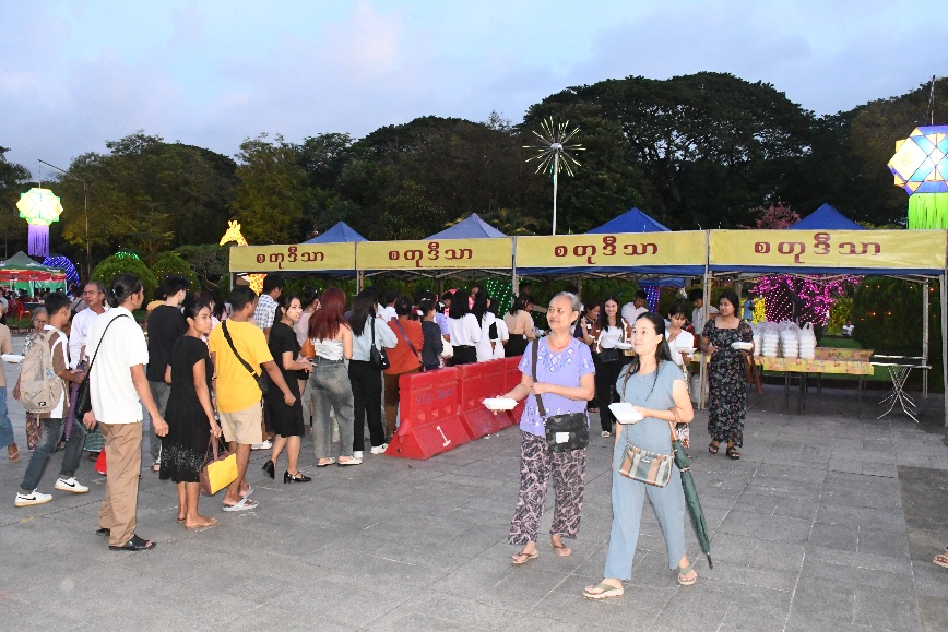 အဆိုပါပွဲတော်တွင် အွန်လိုင်းမားကတ်တွင် ရောင်းချနေသည့် အစားအစာများနှင့် လူသုံးကုန်ပစ္စည်းများ၊ ရန်ကုန်တိုင်းဒေသကြီးအတွင်းရှိ စက်မှုဇုန်များမှ ထုတ်လုပ်သည့် အစားအသောက်များ၊ လူသုံးကုန်ပစ္စည်းများ၊ မြန်မာနိုင်ငံ အလှမွေးငါး လုပ်ငန်းရှင်များအသင်း၏ အလှမွေးငါး၊ အိမ်မွေးတိရစ္ဆာန်နှင့် တွားသွားသတ္တဝါ အရောင်းပြခန်းများ၊ မြန်မာနိုင်ငံကုန်သည်များနှင့် စက်မှုလက်မှုလုပ်ငန်းရှင်များအသင်း၏ အရောင်းပြခန်းများ၊ တိုင်းဒေသကြီးနှင့် ပြည်နယ်အသီးသီးမှ ဒေသထွက်ကုန် ရိုးရာအစားအစာများနှင့် လက်မှုပစ္စည်း အရောင်းဆိုင်များအပြင် စားသောက်ဆိုင်ခန်းများ ဖွင့်လှစ်ရောင်းချခဲ့ပြီး လာရောက်အပန်းဖြေသူ အများပြည်သူများအား ရန်ကုန်တိုင်းဒေသကြီးအစိုးရအဖွဲ့မှ တာဝန်ရှိသူများက စတုဒီသာအလှူအဖြစ် သီးစုံဒံပေါက်၊ ထမင်းနှင့်ဟင်းများ၊ အအေးမျိုစုံတို့ဖြင့် ကျွေးမွေးဧည့်ခံခဲ့ကြကြောင်းနှင့် ပွဲတော်နောက်ဆုံးနေ့တွင် ပြည်သူသောင်းနှင့်ချီ လွတ်လပ်ပျော်ရွှင်စွာပါဝင်ဆင်နွှဲခဲ့ကြကြောင်း သတင်းရရှိပါသည်။