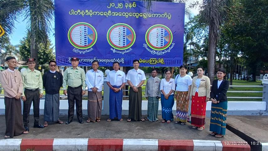 ပါတီစုံဒီမိုကရေစီ အထွေထွေရွေးကောက်ပွဲ ကျင်းပမည့် မြို့နယ်များတွင် ရွေးကောက်ပွဲဆိုင်ရာအသိပညာပေးဆိုင်းဘုတ်များ စိုက်ထူသည့် အခမ်းအနားများကို ကျင်းပရာ ပြည်ထောင်စုနယ်မြေ နေပြည်တော် ဒက္ခိဏသီရိနှင့် လယ်ဝေးမြို့နယ်တို့၌ လည်းကောင်း၊ ရန်ကုန်တိုင်းဒေသကြီး ကမာရွတ်၊ လသာ၊ ရန်ကင်း၊ ပန်းဘဲတန်း၊ ရွှေပြည်သာ၊ ထန်းတပင်(ရန်ကုန်)၊ တိုက်ကြီး၊ ကွမ်းခြံကုန်း၊ ဒဂုံမြို့သစ်(ဆိပ်ကမ်း)၊ ကော့မှူး၊ ဒေါပုံနှင့် တာမွေမြို့နယ်တို့၌လည်းကောင်း၊ မန္တလေးတိုင်းဒေသကြီး ကျောက်ပန်းတောင်း၊ ချမ်းအေးသာစံ၊ ပြည်ကြီးတံခွန်၊ ပြင်ဦးလွင်နှင့် မိတ္ထီလာ၊ ပျော်ဘွယ်၊ ရမည်းသင်း၊ မြစ်သားမြို့နယ်တို့၌လည်းကောင်း၊ စစ်ကိုင်းတိုင်းဒေသကြီး စစ်ကိုင်း၊ ခန္တီး၊ ကသာမြို့နယ်တို့၌လည်းကောင်း၊ ဧရာဝတီတိုင်းဒေသကြီး ကန်ကြီးထောင့်၊ ရေကြည်၊ ချောင်းသာ၊ ရွှေသောင်ယံ၊ ဟိုင်းကြီးကျွန်းမြို့နယ်တို့၌ လည်းကောင်း၊ မွန်ပြည်နယ် ကျိုက်မရော၊ မုဒုံ၊ သံဖြူဇရပ်၊ ရေးမြို့နယ်တို့၌လည်းကောင်း၊ တနင်္သာရီတိုင်းဒေသကြီး တနင်္သာရီ၊ ကော့သောင်း၊ ဘုတ်ပြင်း၊ သရက်ချောင်း၊ လောင်းလုံ၊ ပုလော၊ ကျွန်းစုမြို့နယ်တို့၌ လည်းကောင်း၊ မကွေးတိုင်းဒေသကြီး ရေနံချောင်းနှင့် ဂန့်ဂေါမြို့နယ်တို့၌ လည်းကောင်း၊ ကရင်ပြည်နယ် လှိုင်းဘွဲ၊ ကော့ကရိတ်မြို့နယ်တို့၌ လည်းကောင်း၊ ရှမ်းပြည်နယ် မိုင်းယန်း၊ တာလေ၊ မိုင်းရှူး၊ ပင်လုံ၊ ကွန်ဟိန်း၊ မိုင်းခတ်နှင့် လဲချားမြို့နယ်တို့၌ လည်းကောင်း၊ ချင်းပြည်နယ် ဟားခါးမြို့၌လည်းကောင်း ကျင်းပရာ အခမ်းအနားများသို့ တိုင်းဒေသကြီး/ပြည်နယ် အစိုးရ အဖွဲ့ဝင်များ၊ ခရိုင်/ မြို့နယ်စီမံခန့်ခွဲရေးနှင့်အုပ်ချုပ်ရေး ကော်မတီဥက္ကဋ္ဌများ၊ ခရိုင်/မြို့နယ် ရွေးကောက်ပွဲကော်မရှင်အဖွဲ့ခွဲဥက္ကဋ္ဌနှင့်အဖွဲ့ဝင်များ၊ သက်ဆိုင်ရာ ခရိုင်/မြို့နယ်ဌာနဆိုင်ရာ တာဝန်ရှိသူများ တက်ရောက်ခဲ့ကြပြီး ၂၀၂၅ ခုနှစ် ပါတီစုံဒီမိုကရေစီအထွေထွေရွေးကောက်ပွဲ လူထုအသိပညာပေးဆိုင်းဘုတ်ကို သတ်မှတ်နေရာများ၌ စိုက်ထူဖွင့်လှစ်ပေးကြကြောင်း သိရသည်။