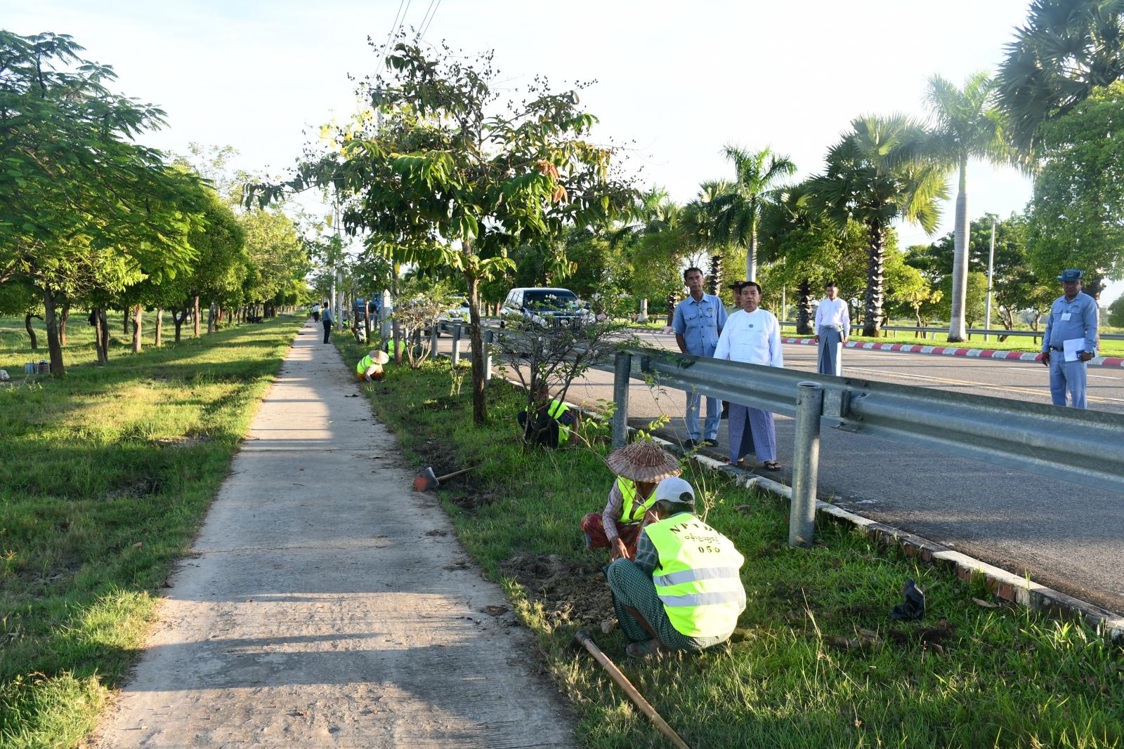 ထို့နောက် နေပြည်တော်ကောင်စီဥက္ကဋ္ဌ ဦးသန်းထွန်းဦးသည် လယ်ဝေးမြို့နယ်၊ ရာဇသင်္ဂဟလမ်းသို့ သွားရောက်ပြီး လမ်းဘေးဝဲယာနှင့် လမ်းလယ်ကျွန်းတစ်လျှောက် စိန်းလမ်းစိုပျိုရေး ရာသီလိုက် ပန်းအလှပင်များနှင့် အရိပ်ရအပင်များ ထပ်မံစိုက်ပျိုးထားရှိမှုနှင့် ကတ္တရာလမ်း AC ခင်းကျင်း နေမှုကို ကြည့်ရှုစစ်ဆေးပြီး တာဝန်ရှိသူများအား စိုက်ပျိုးသည့်အပင်များ ရှင်သန်ကြီး ထွားအောင် စိုက်ပျိုးကြရန်၊ လမ်းဘေးဝဲယာ စိမ်းလန်းစိုပြည်ရေးနှင့် သန့်ရှင်းသာယာလှပရေး အလေးထား ဆောင်ရွက်သွားရန် မှာကြားခဲ့သည်။