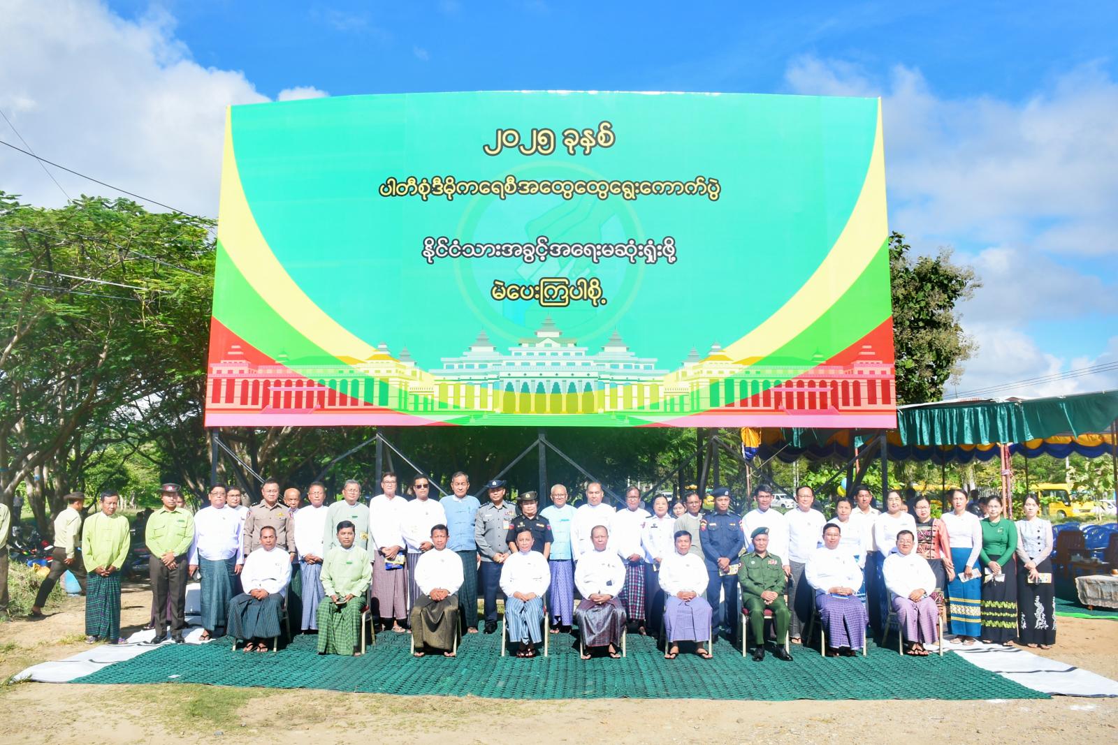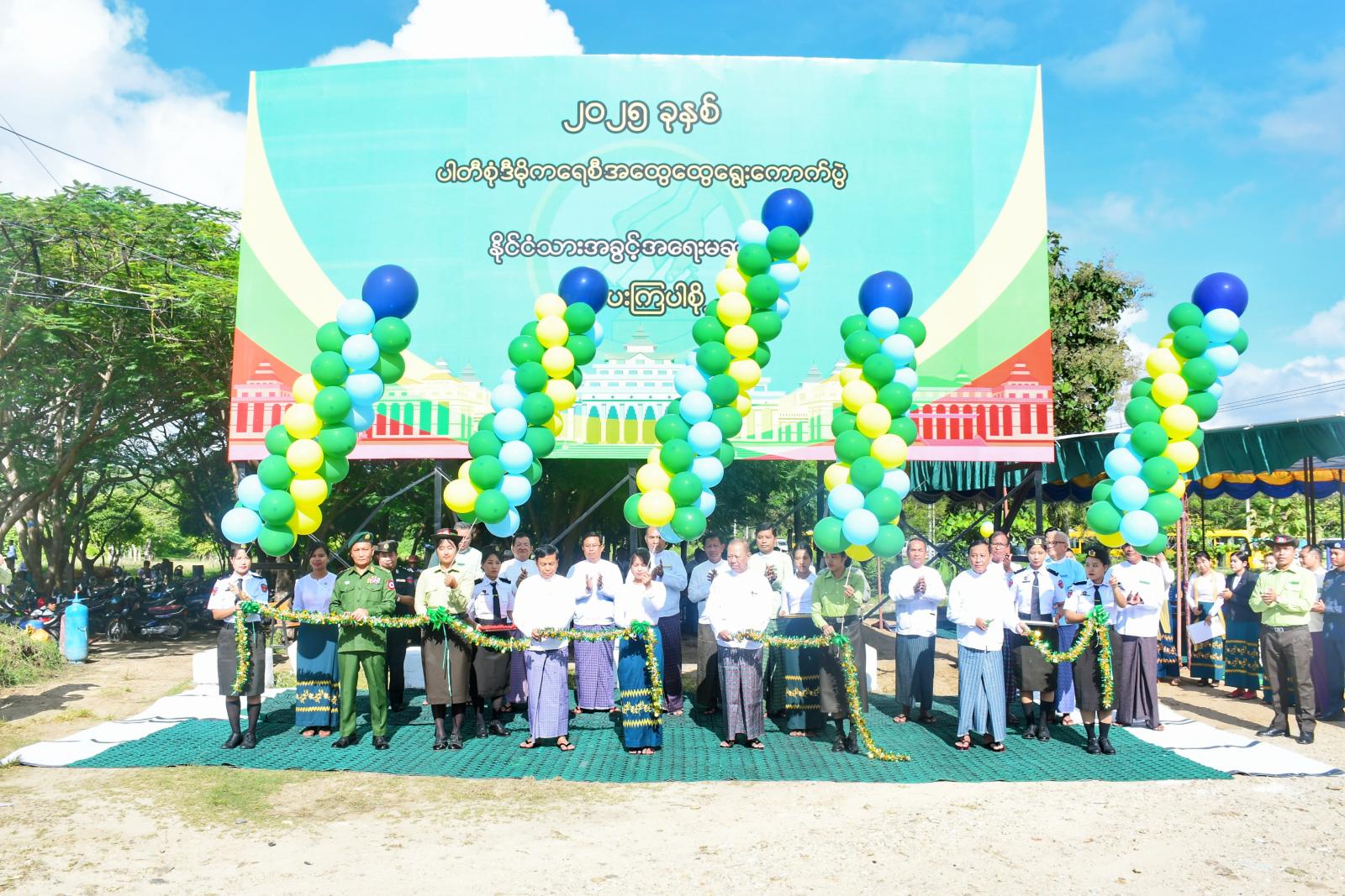 ဦးစွာ ရွေးကောက်ပွဲနှိုးဆော် အသိပညာပေးဆိုင်ရာ မြေစိုက်ပိုစကာ(Billboard) အား ပြည်ထောင်စုရွေးကောက်ပွဲကော်မရှင်ဥက္ကဋ္ဌ ဦးသန်းစိုး၊ နေပြည်တော်ကောင်စီဥက္ကဋ္ဌ ဦးသန်းထွန်းဦး၊ ပြည်ထောင်စုရွေးကောက်ပွဲကော်မရှင်အဖွဲ့ဝင် ဦးမျိုးလှိုင်၊ နေပြည်တော်ကောင်စီဝင် ဗိုလ်မှူးကြီးရဲမိုးတို့က ဖဲကြိုးဖြတ်ဖွင့်လှစ်ပေးခဲ့သည်။