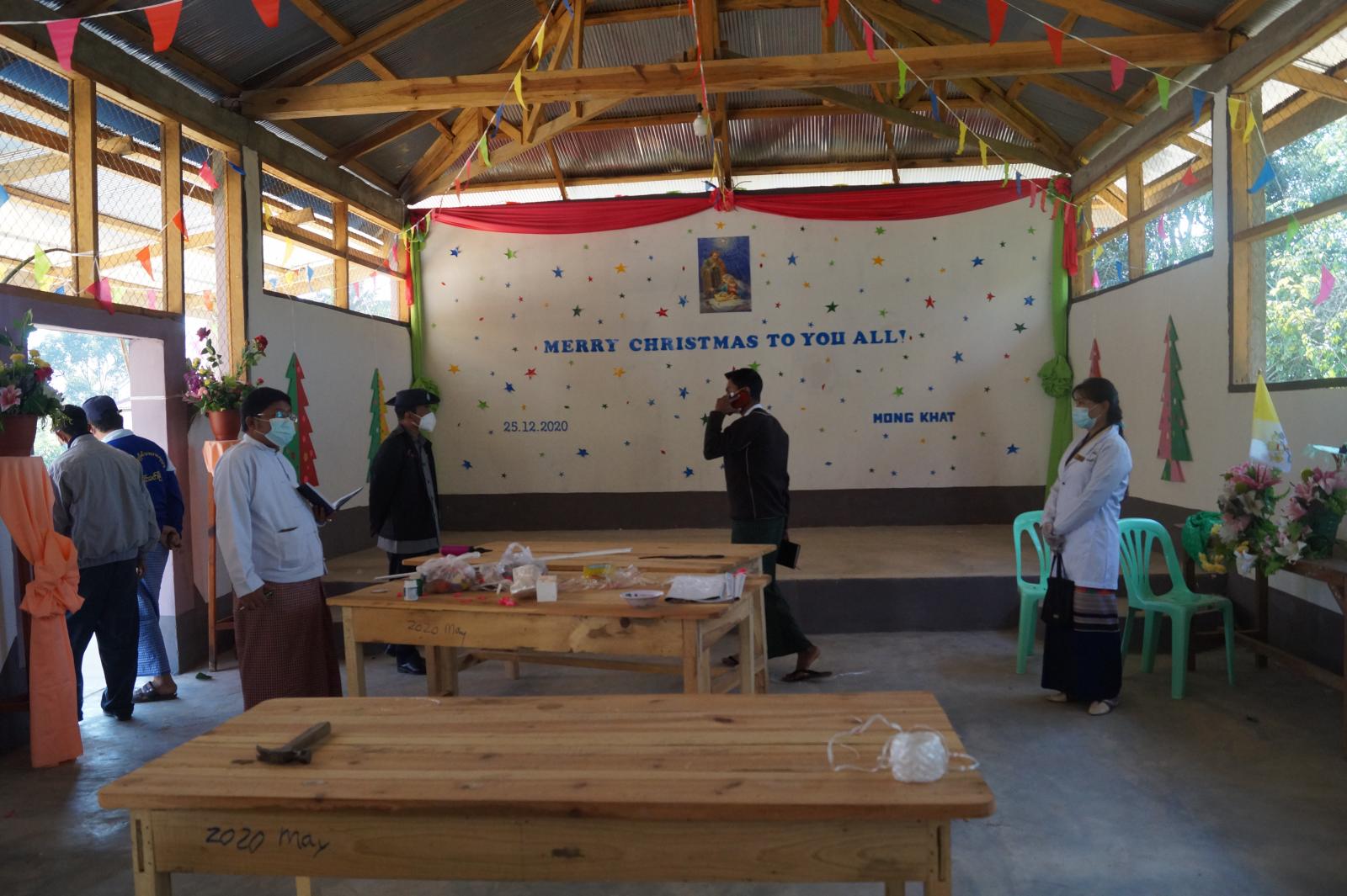 ရှမ်းပြည်နယ်(အရှေ့ပိုင်း) မိုင်းခတ်မြို့နယ်၌ ခရစ္စမတ်ပွဲတော်ကျင်းပမည့် မြို့ပေါ်ရပ်ကွက်နှင့်ကျေးရွာများရှိ ခရစ်ယာန် ဘုရားရှိခိုးကျောင်းများအား ကိုဗစ်-၁၉ ရောဂါ ကြိုတင်ကာကွယ်ရေး လမ်းညွှန်ချက်နှင့်အညီ ကျင်းပပြုလုပ်နိုင်ရန်အတွက် ဒီဇင်ဘာ ၂၄ ရက်က တာဝန်ရှိသူများ သွားရောက်ကြည့်ရှုစစ်ဆေးခဲ့သည်။