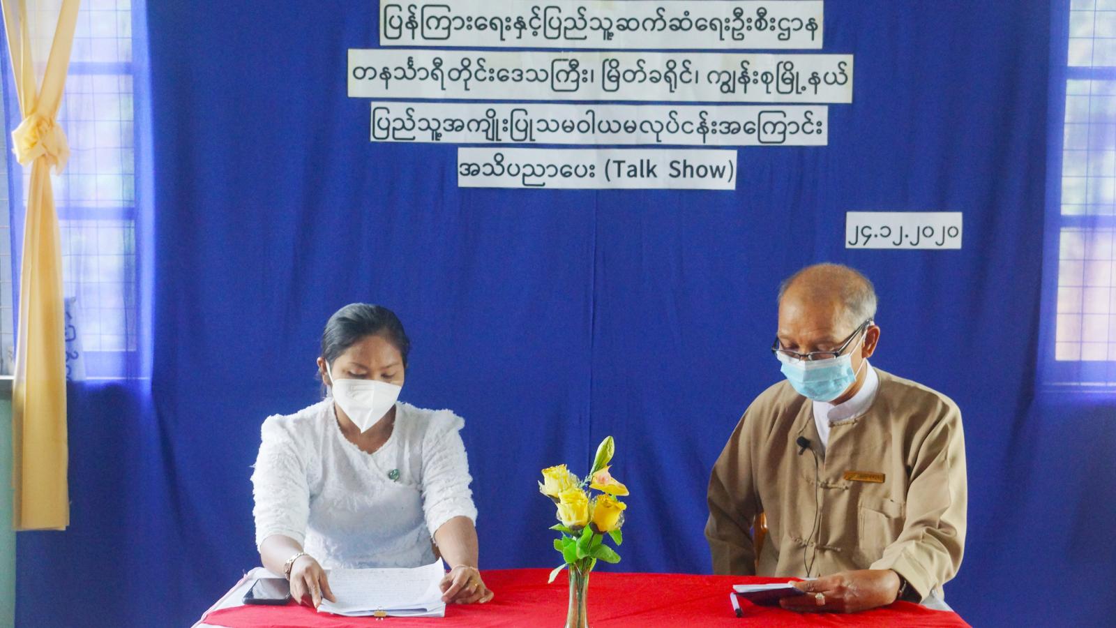တနင်္သာရီတိုင်းဒေသကြီး၊ မြိတ်ခရိုင်၊ ကျွန်းစုမြို့တွင် မြို့နယ်ပြန်ကြားရေးနှင့်ပြည်သူ့ ဆက်ဆံရေးဦးစီးဌာနနှင့် မြို့နယ်သမဝါယမ ဦးစီးဌာနတို့ပူးပေါင်းပြီး ပြည်သူ့အကျိုးပြု သမဝါယမလုပ်ငန်းအကြောင်း အသိပညာပေး (Talk Show)ကို ယမန်နေ့ နေ့လယ်ပိုင်းက မြို့နယ်ပြန်/ဆက်ရုံးရှိ လူထုအခြေပြုဗဟိုဌာန (Community Centre) ခန်းမ၌ ရိုက်ကူး ဆောင်ရွက်ခဲ့ကြောင်း သိရသည်။