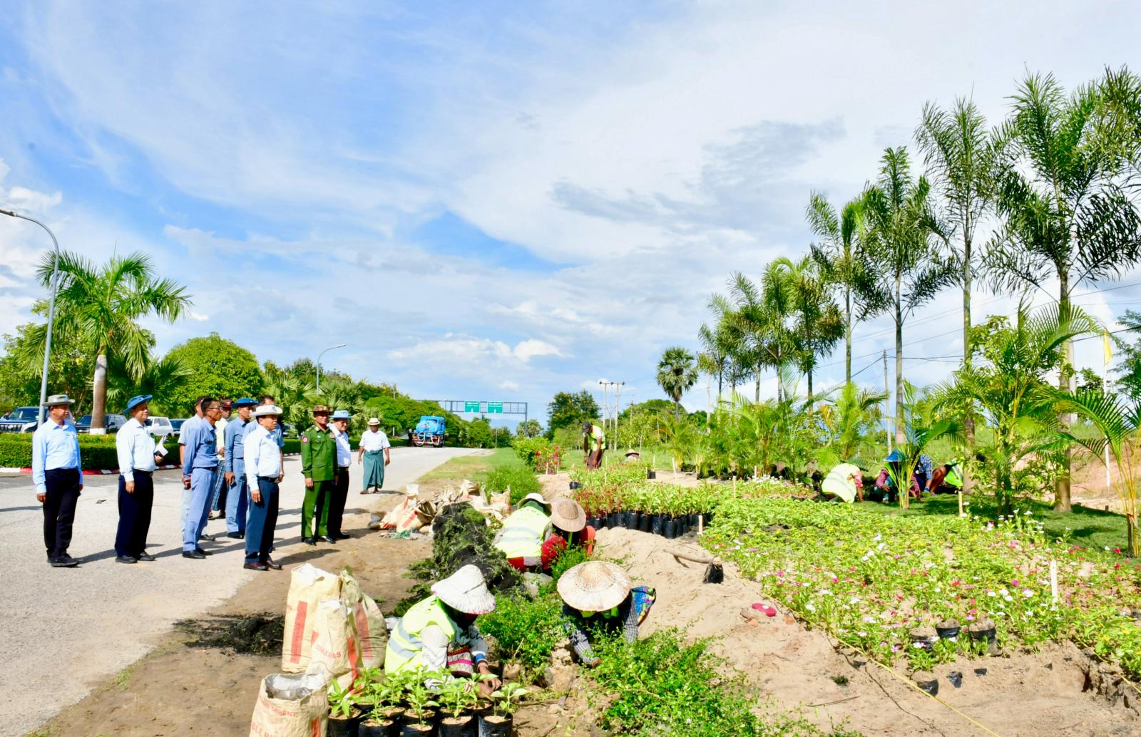 ဦးစွာနေပြည်တော်ကောင်စီဥက္ကဋ္ဌ ဦးသန်းထွန်းဦးသည် တာဝန်ရှိသူများလိုက်ပါလျက် လယ်ဝေးမြို့နယ်၊ ရာဇသင်္ဂဟလမ်းသို့သွားရောက်ပြီး ကြာကန်ဘောင်နှင့် ကန်အတွင်း သန့်ရှင်းသာယာလှပရေး ဆောင်ရွက်နေမှု၊ လမ်းဘေးဝဲယာ၊ လမ်းလယ်ကျွန်းတစ်လျှောက် စိမ်းလန်းစိုပြေရေး ရာသီအလိုက် ပန်းအလှပင်များနှင့် အရိပ်ရအပင်များ ထပ်မံစိုက်ပျိုးထားရှိမှု အခြေအနေများကို ကြည့်ရှုစစ်ဆေးပြီး တာဝန်ရှိသူများအား စိုက်ပျိုးသည့်အပင်များ ရှင်သန်ကြီး ထွားအောင် စိုက်ပျိုးကြရန်၊ လမ်းဘေးဝဲယာစိမ်းလန်းစိုပြေရေးနှင့် သန့်ရှင်းသာယာလှပရေး အလေးထားဆောင်ရွက်သွားရန် မှာကြားခဲ့သည်။